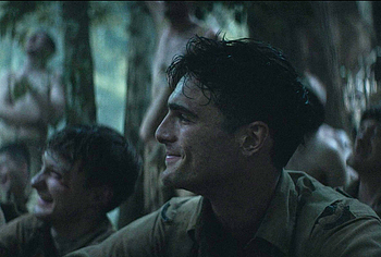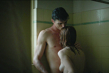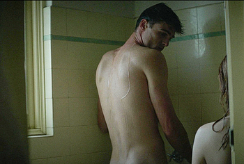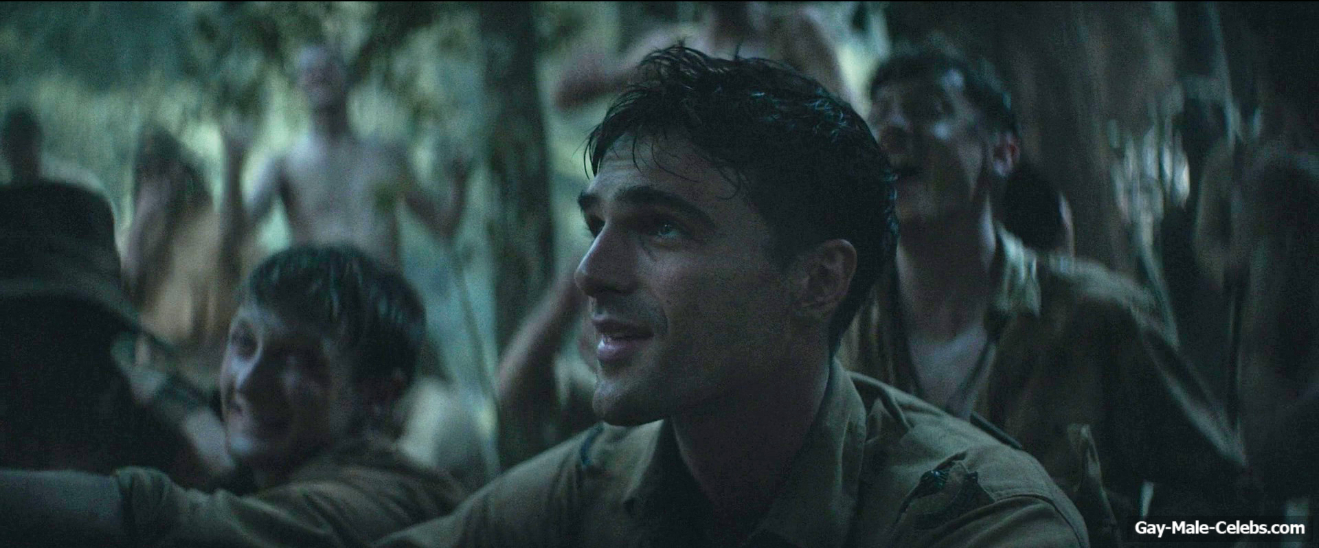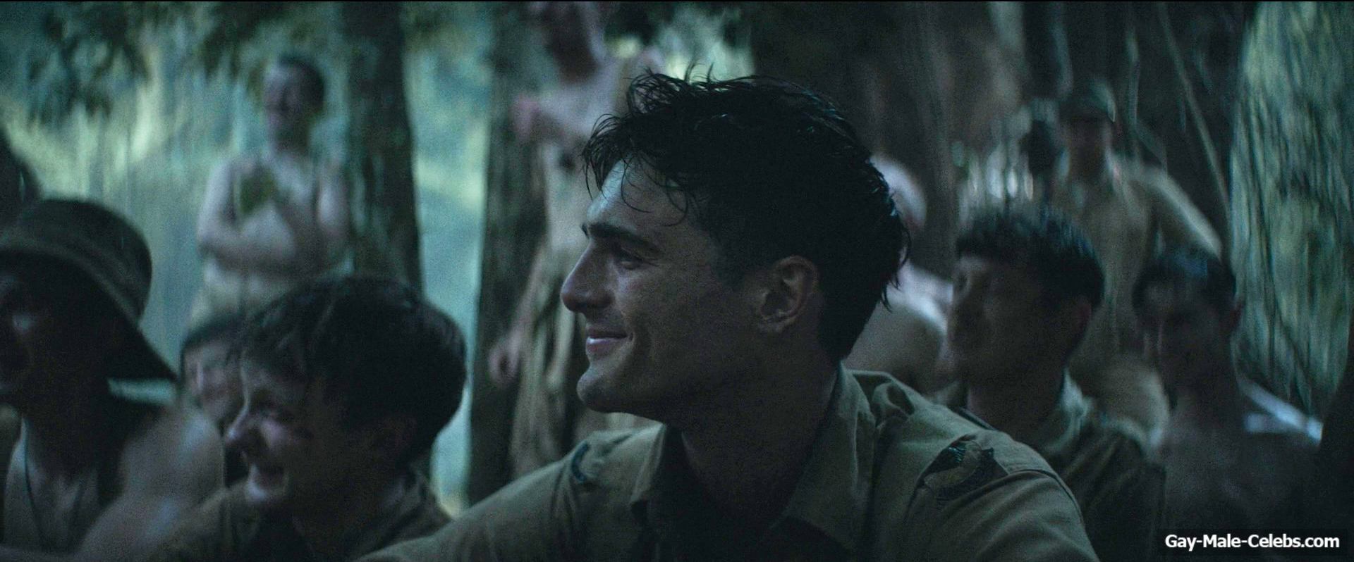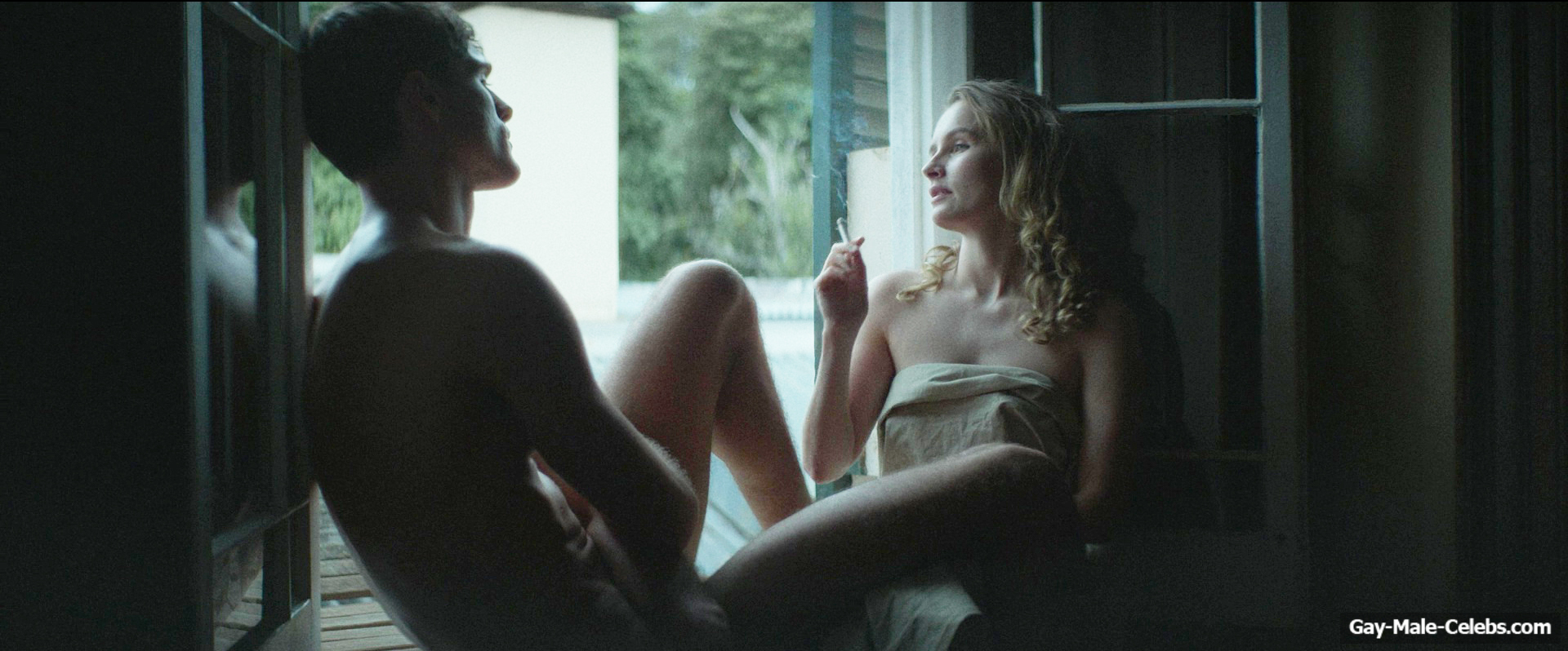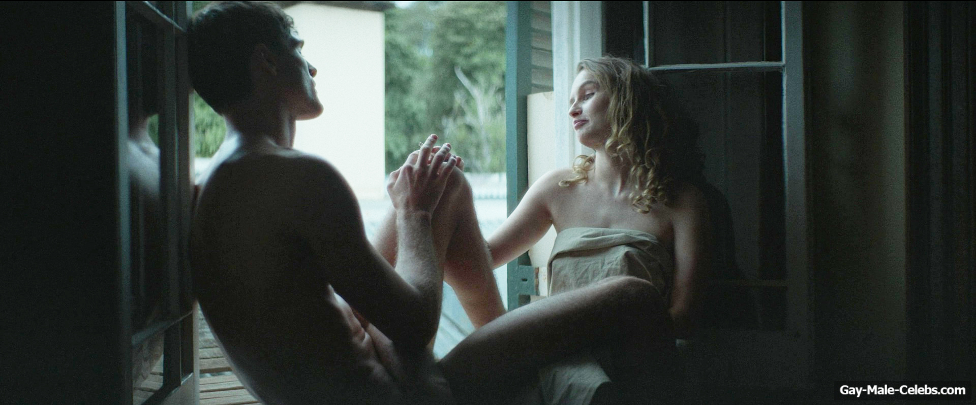 Now we can see why many people like “The Narrow Road To The Deep North”, especially the number of sex scenes involving Jacob Elordi. When Jacob went to the shower, we can admire his naked celeb ass. The girl enters the bath and without further thought joined him and they started passionately kissing. Then in the bedroom this hunk fucks the redhead. His muscular back at this point is on full display. After sex they decided to smoke on the windowsill without any clothes on.