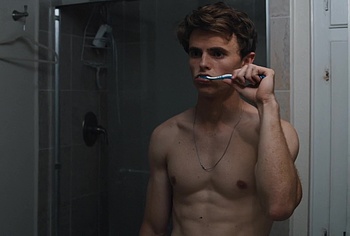 Jake Holley turns up the heat in “Riley” with his naked norso. The guy was standing and brushing his teeth, when suddenly he started to evaluate his body. Really, the guy’s body is a treat for our eyes. But the guy was embarrassed by his bush in underwear, so he decided to shave his pubis. Jake cut himself while doing it, as you can see from his hair that he doesn’t do it often.