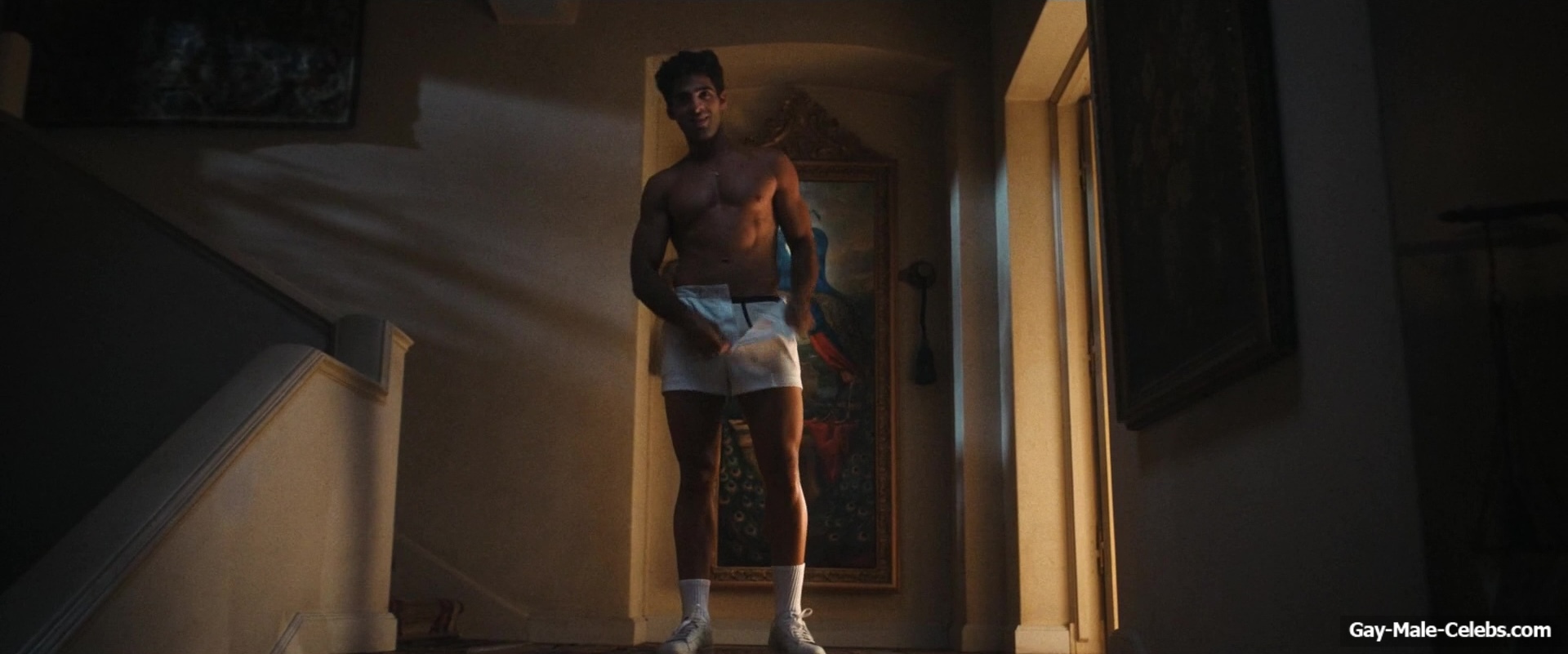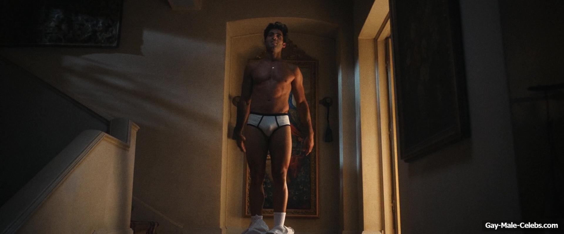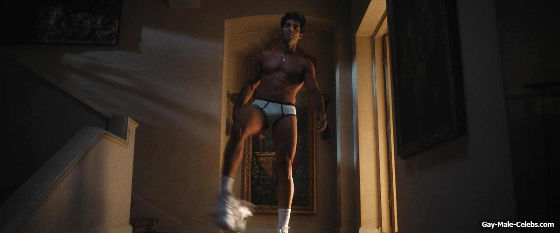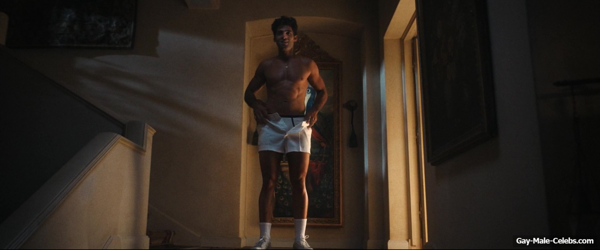 Jason Canela showed us his naked torso in “Palm Royale”. After waking up after hot sex, this handsome guy went to brush his teeth. How nice that he was only wearing boxers and the upper part of his body was right in front of us. It is worth noting that Jason Canela penis bulge is quite impressive. We can only imagine how good his penis would be without boxers.