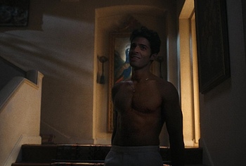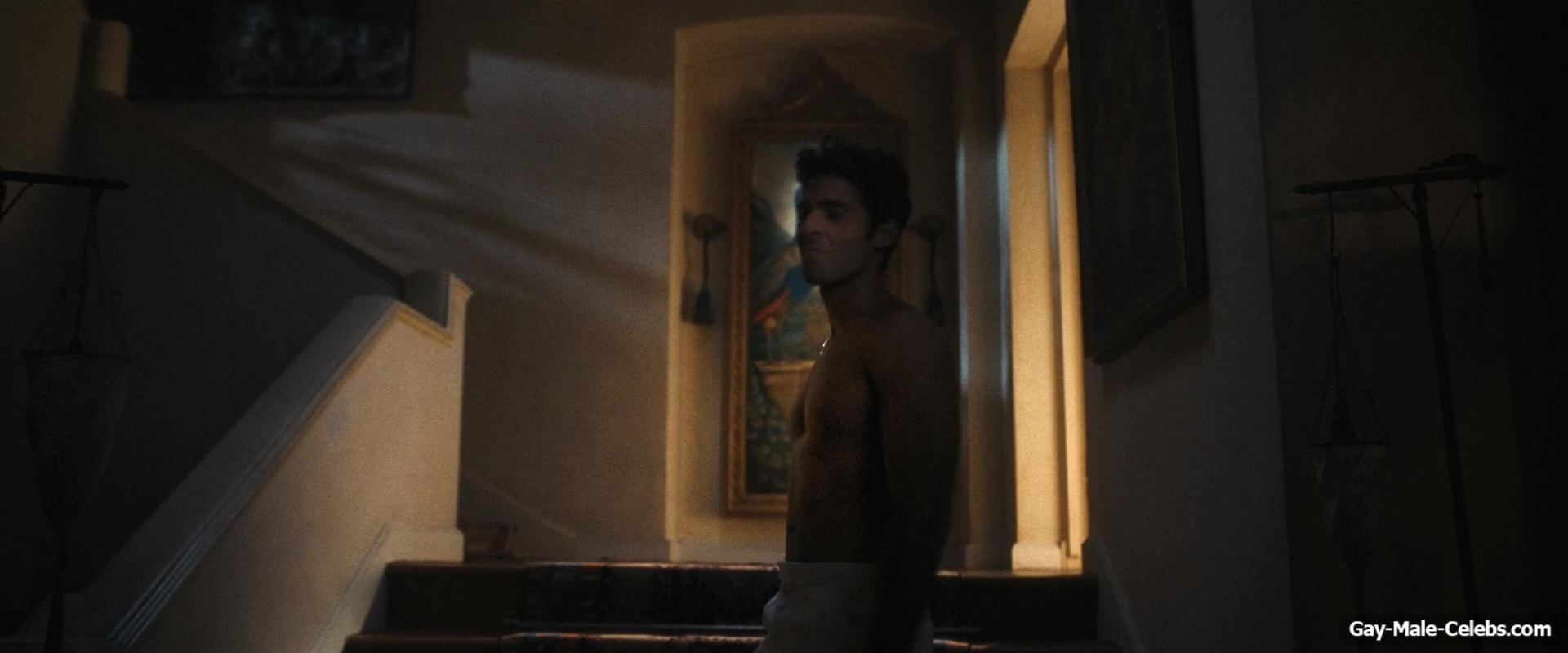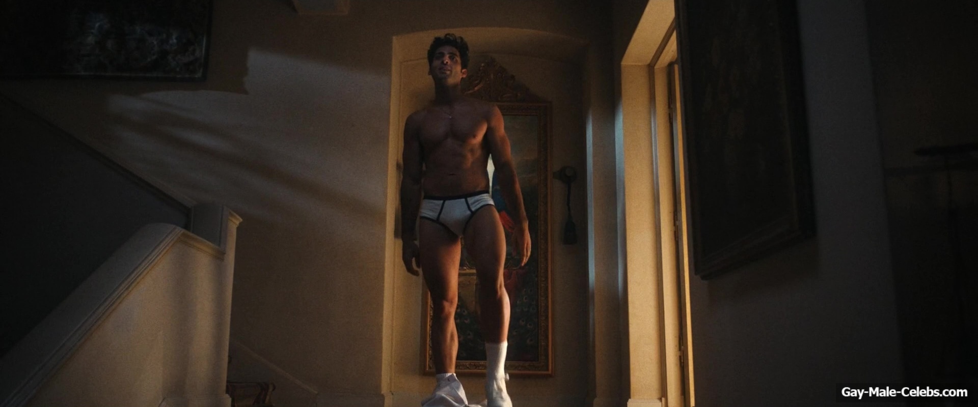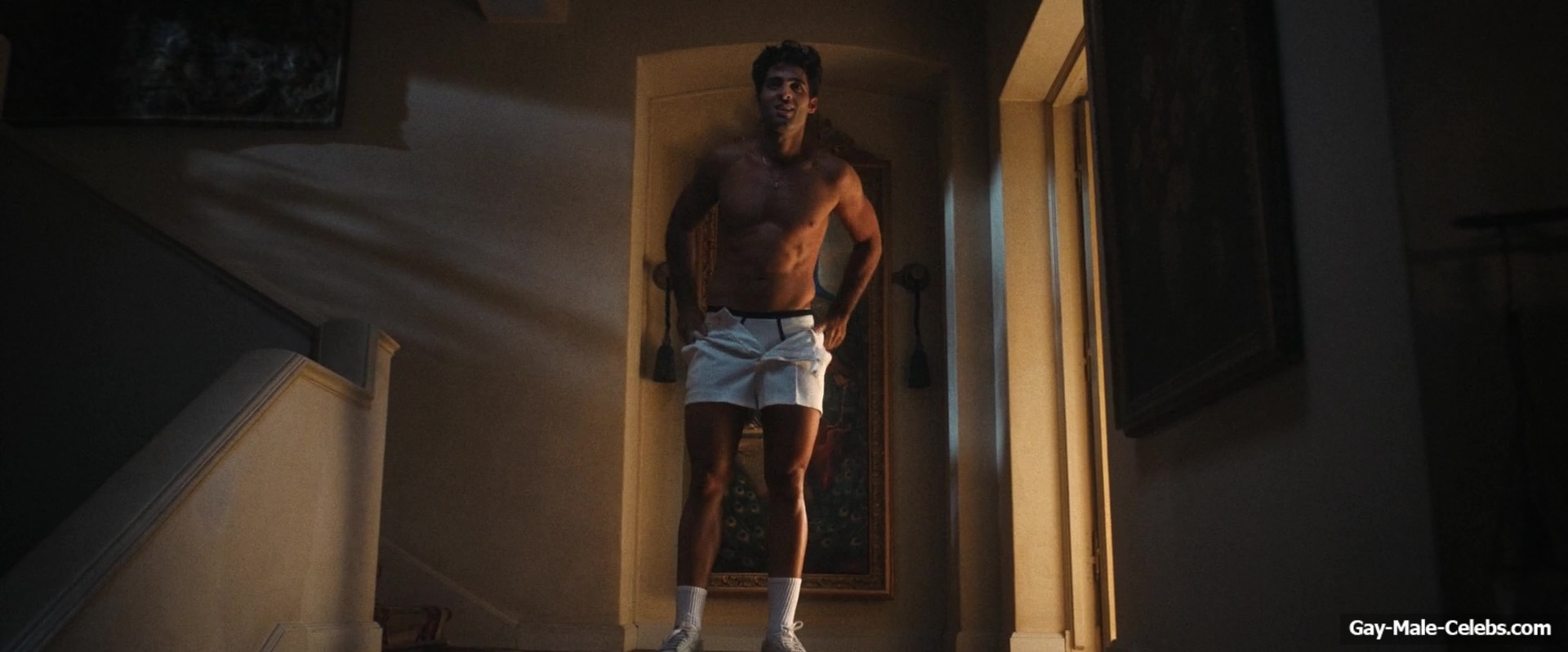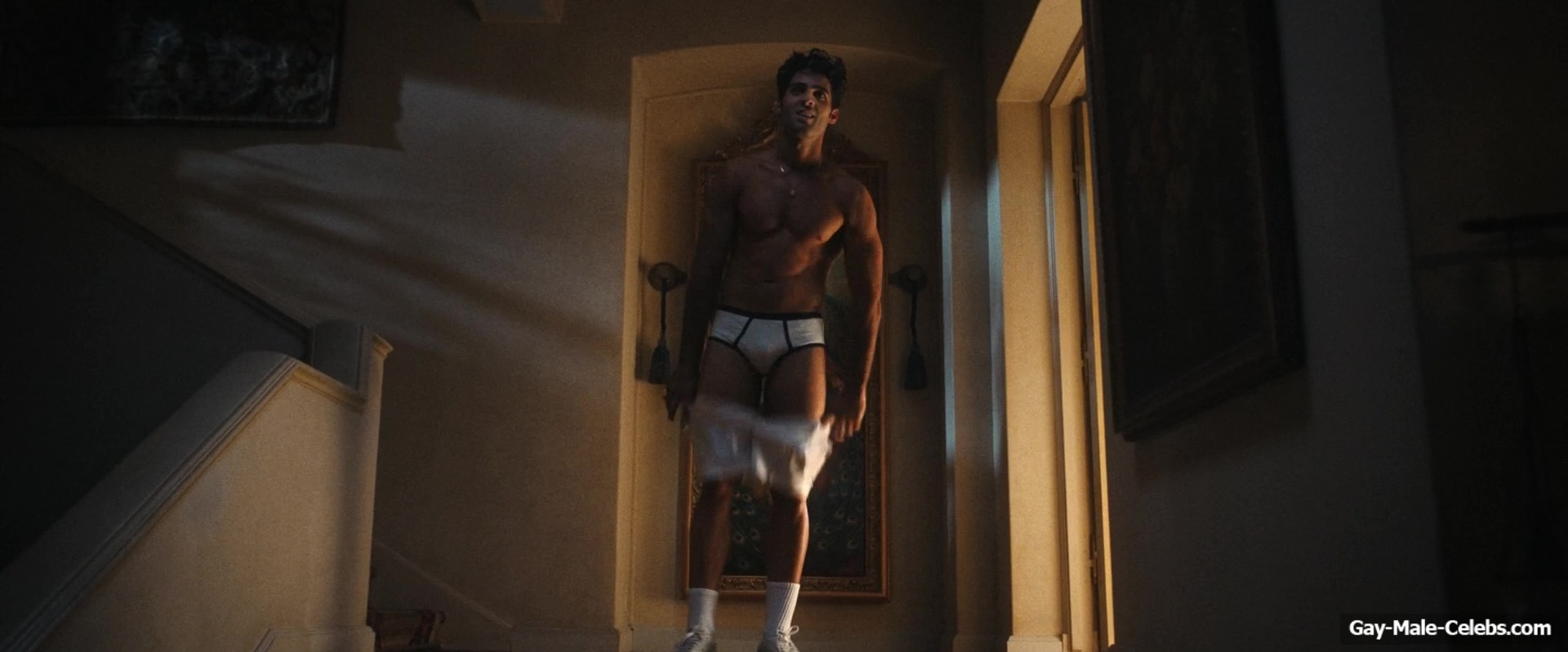 Jason Canela showed us his naked torso in “Palm Royale”. After waking up after hot sex, this handsome guy went to brush his teeth. How nice that he was only wearing boxers and the upper part of his body was right in front of us. It is worth noting that Jason Canela penis bulge is quite impressive. We can only imagine how good his penis would be without boxers.