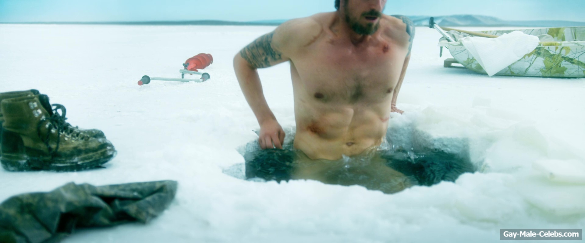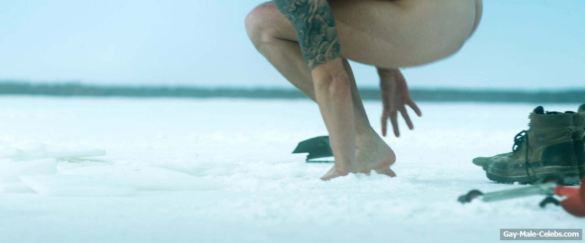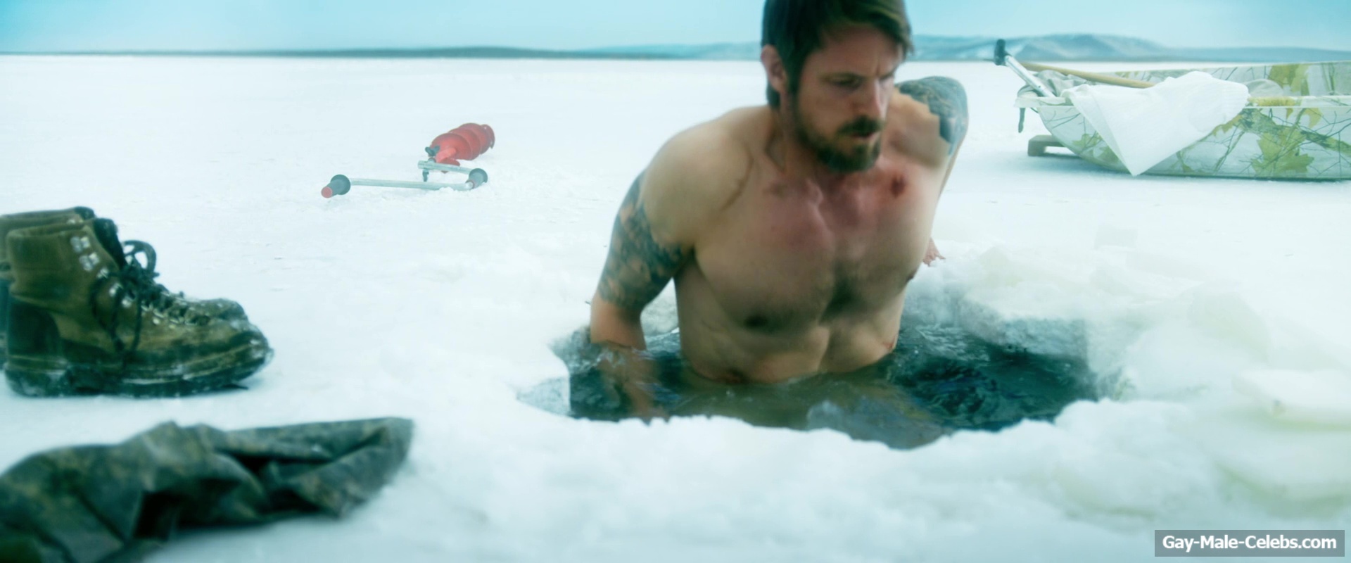 Nude Joel Kinnaman raises the temperature with his body in “Ice Fall”. This actor decided to take a dip in the ice hole without any clothes on. Not only do we get to see his pumped-up torso in all its glory, but when he squats down, we can also feast our eyes on Joel Kinnaman naked butt.