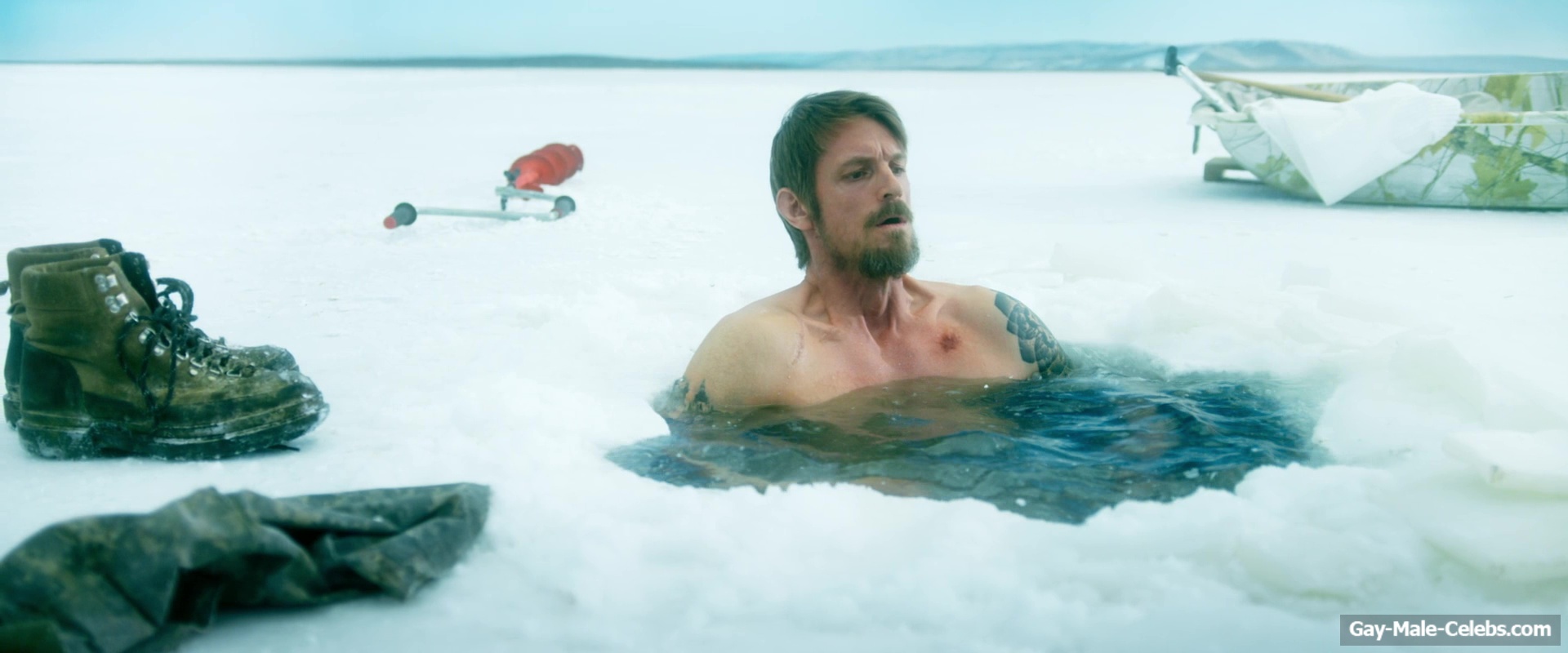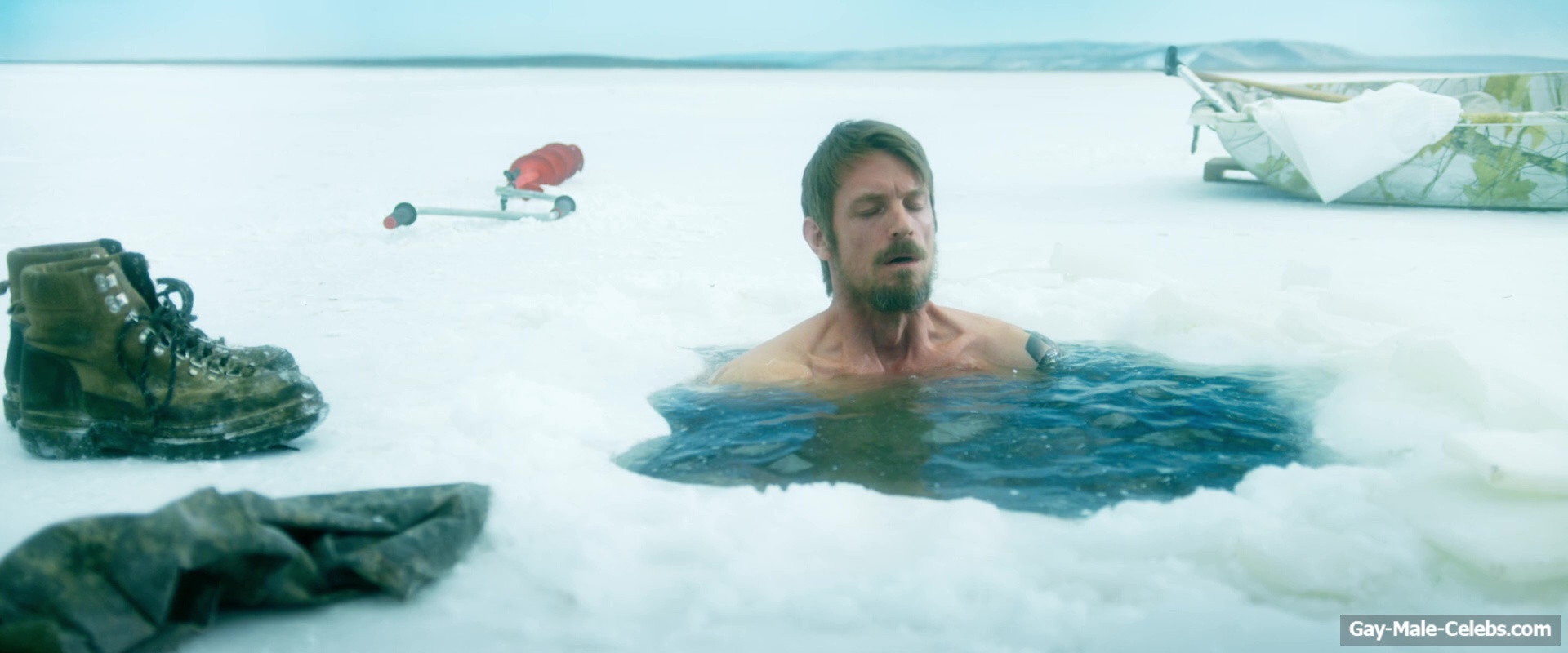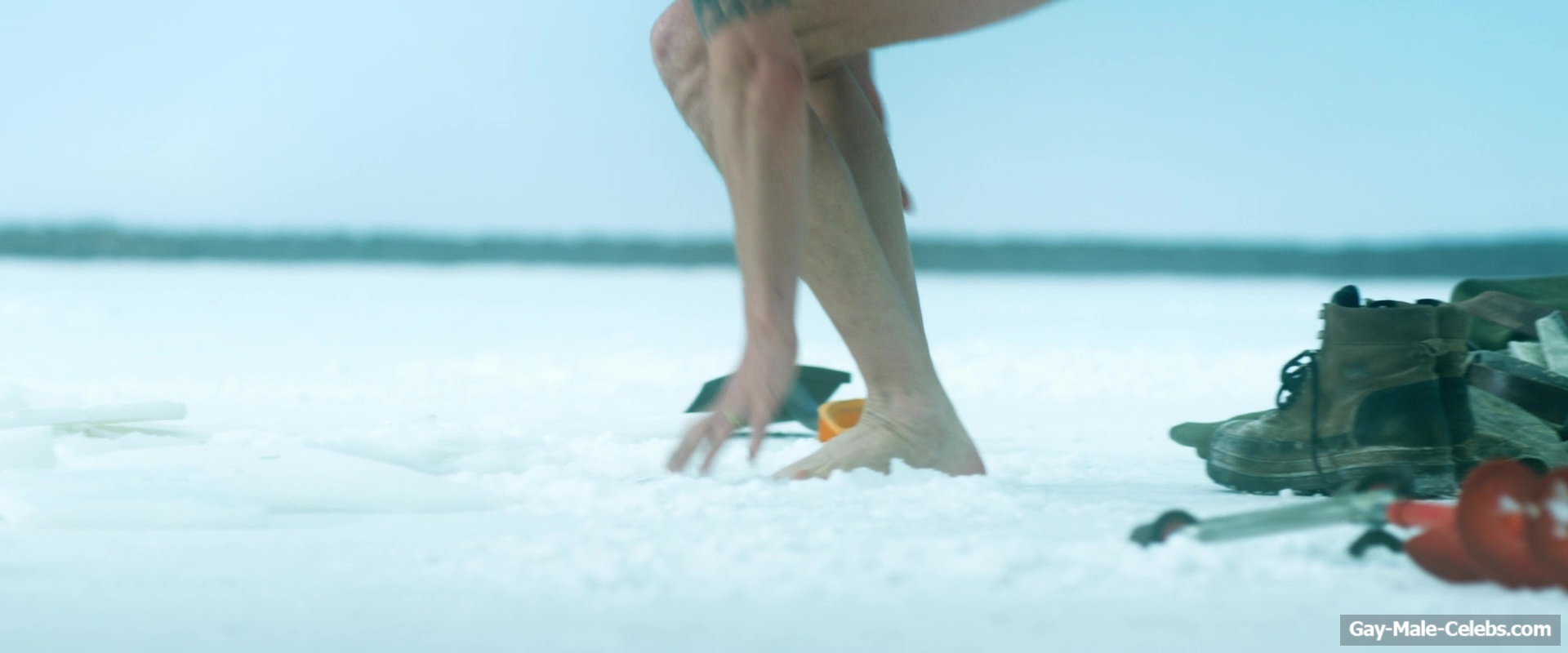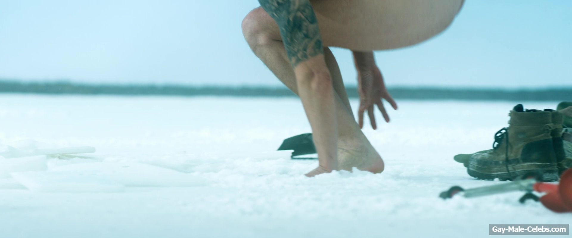 Nude Joel Kinnaman raises the temperature with his body in “Ice Fall”. This actor decided to take a dip in the ice hole without any clothes on. Not only do we get to see his pumped-up torso in all its glory, but when he squats down, we can also feast our eyes on Joel Kinnaman naked butt.