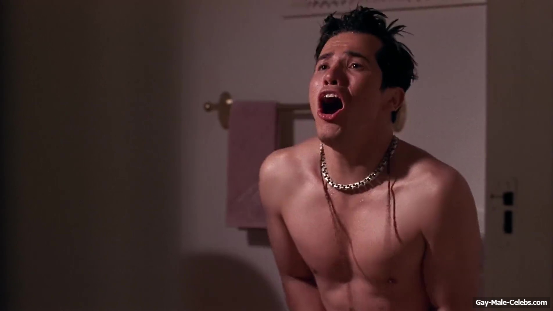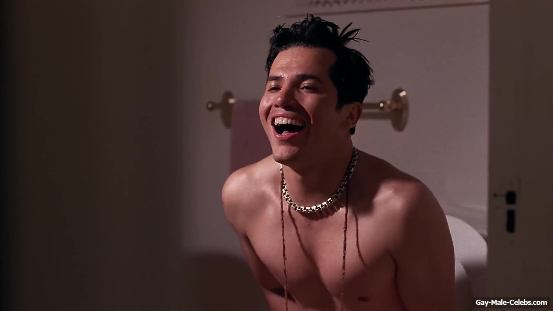 John Leguizamo shows off his hot body in “The Pest”. While he is running from one room to another, we can admire his naked celeb ass. Even though John covers his penis with his hands, the torso of this funny guy is on full display.