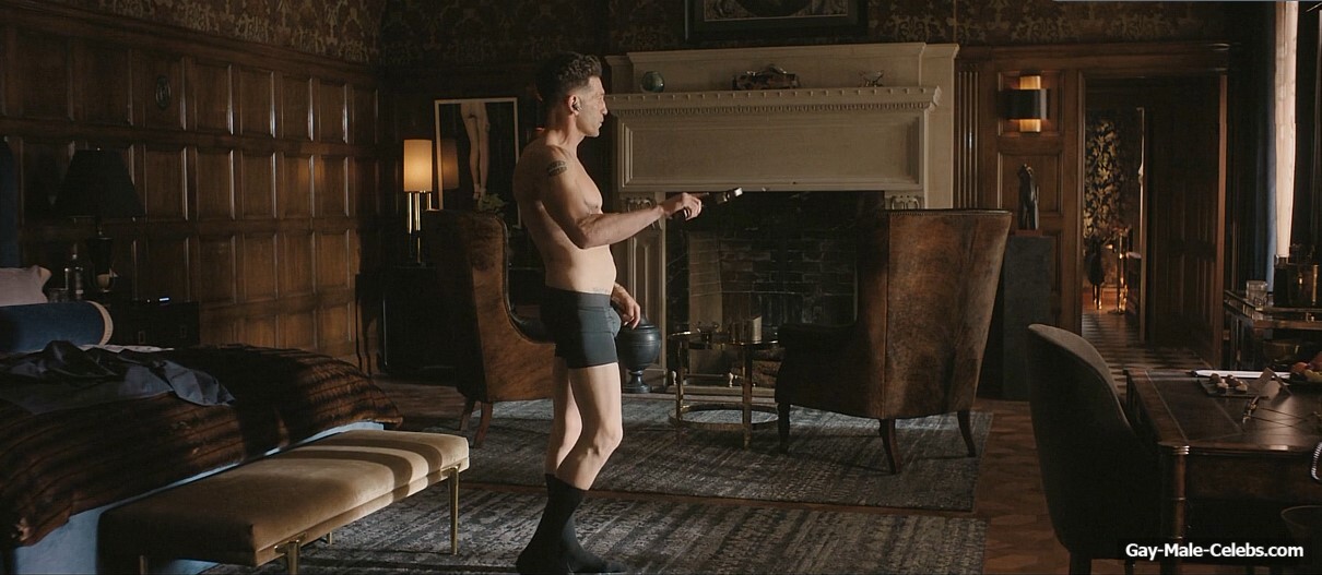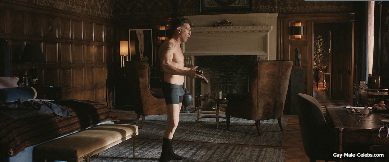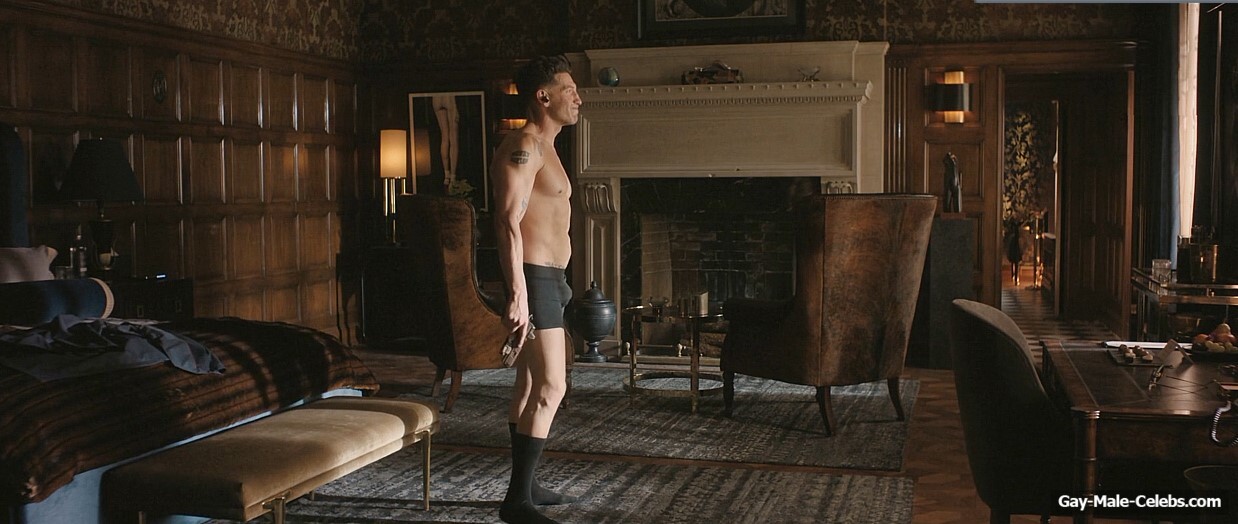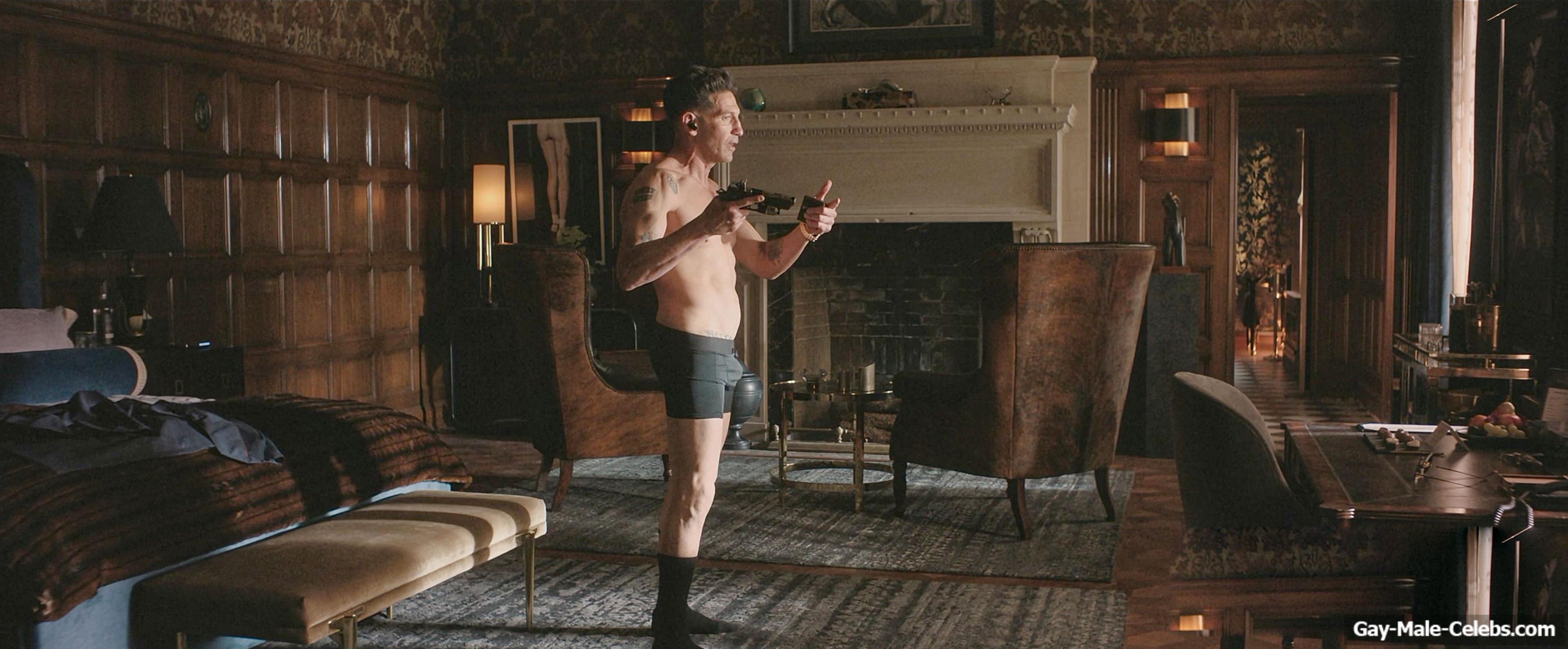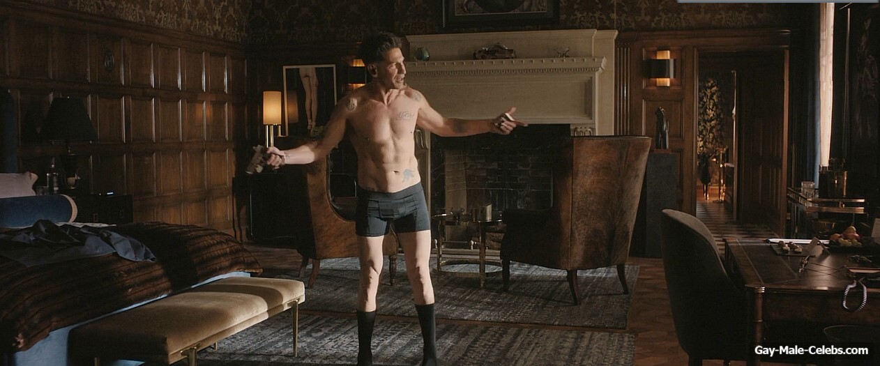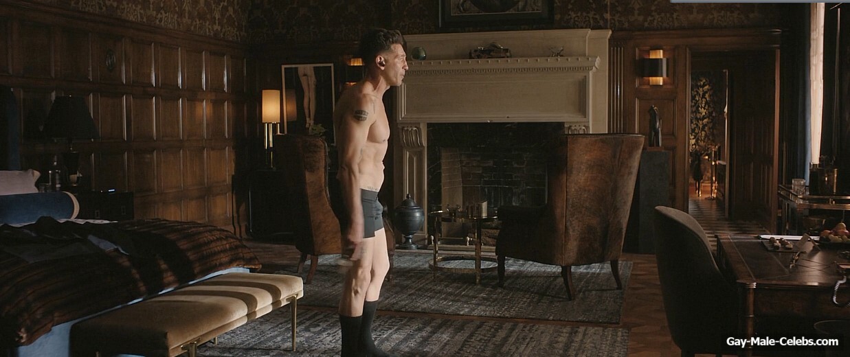 Jon Bernthal turns up the heat in “The Accountant 2”. Jon stands in front of the mirror and rehearses his speech. All the while, he’s wearing only black boxers, so we can enjoy his naked torso. The guy rehearses hard walking around the room. And his huge bulge is showing through his underwear.