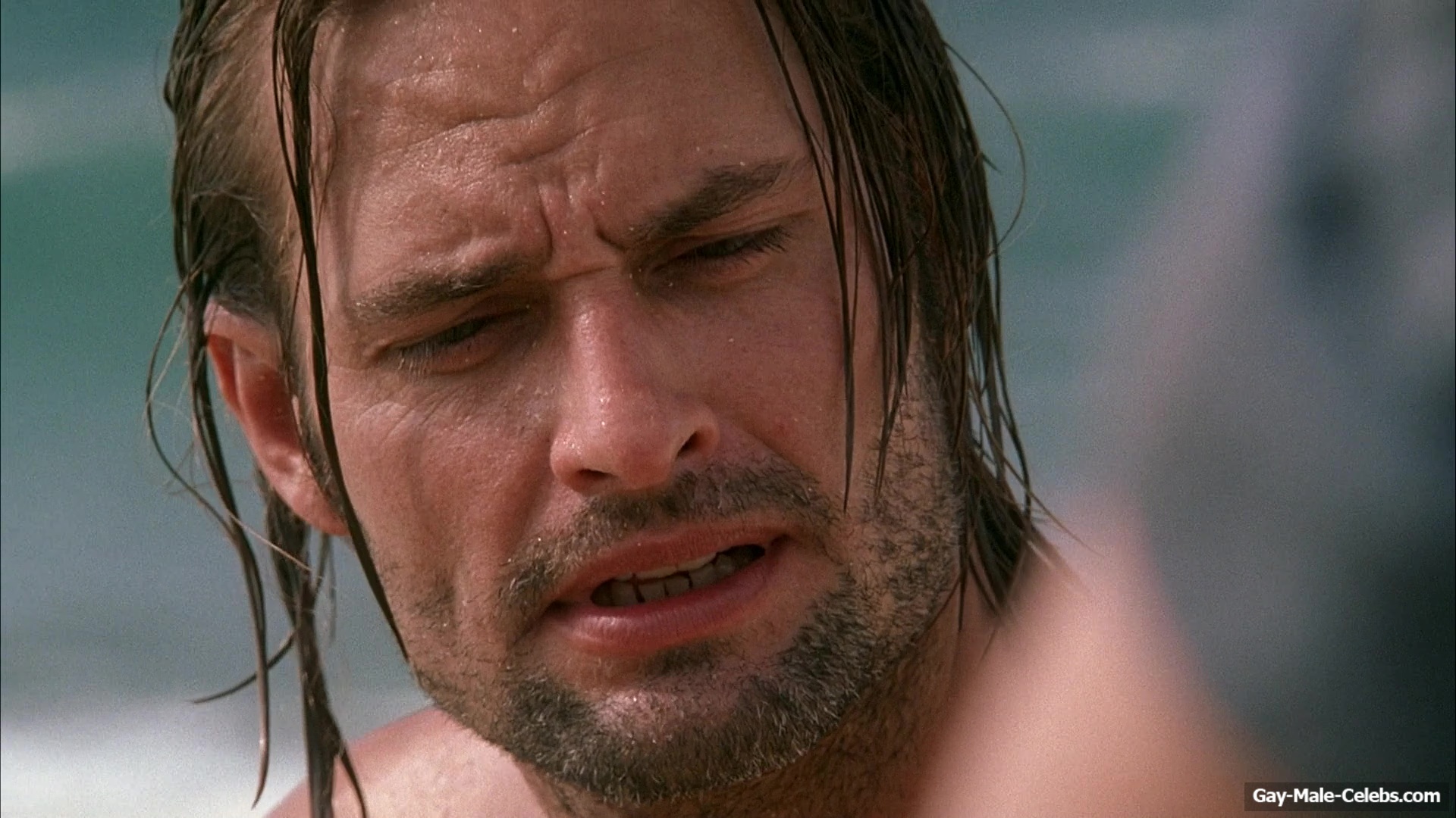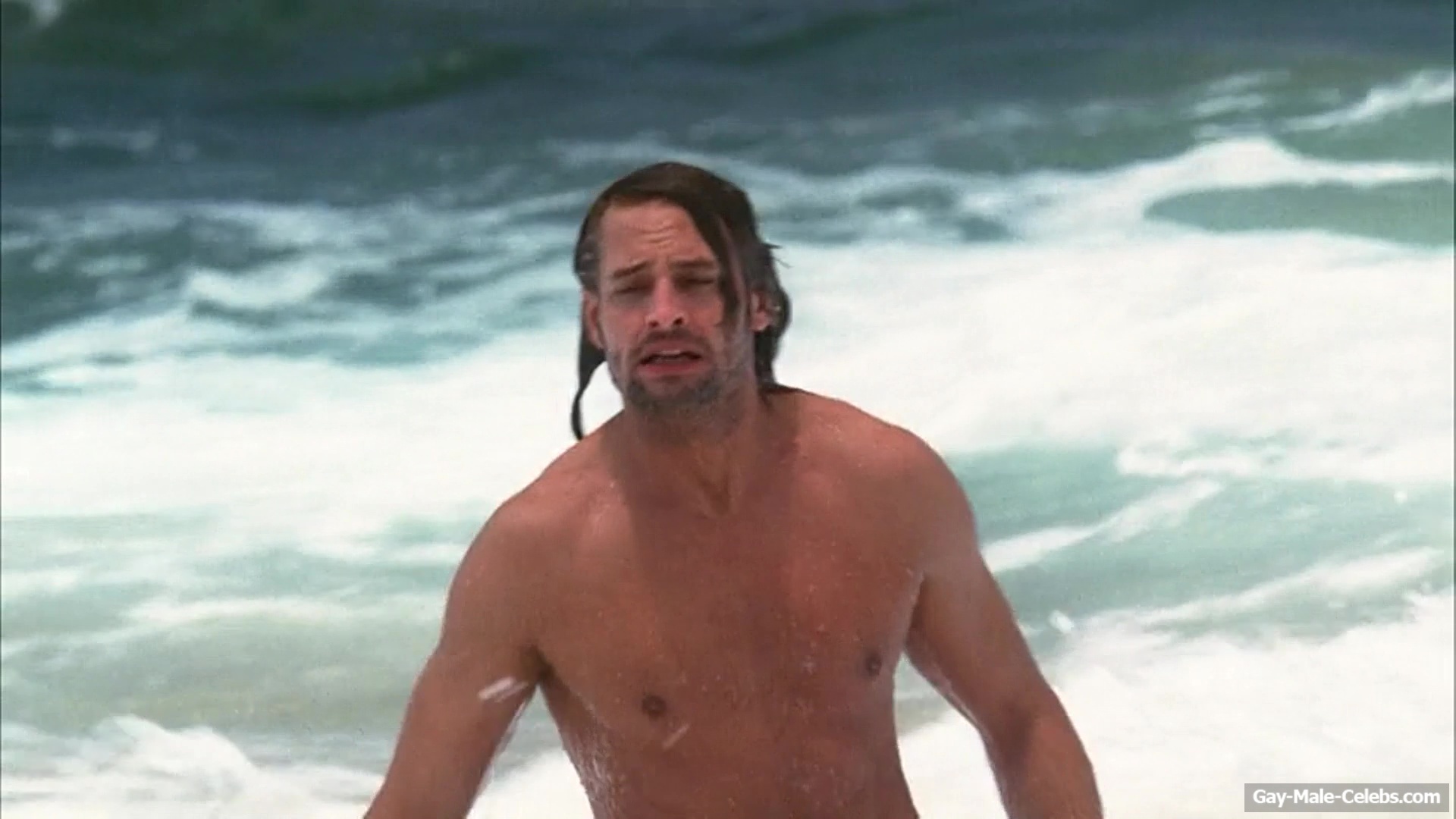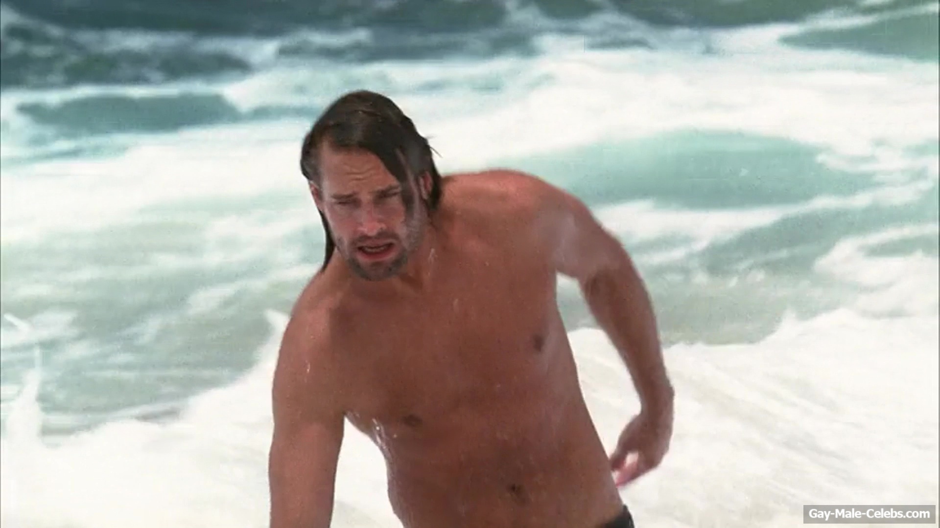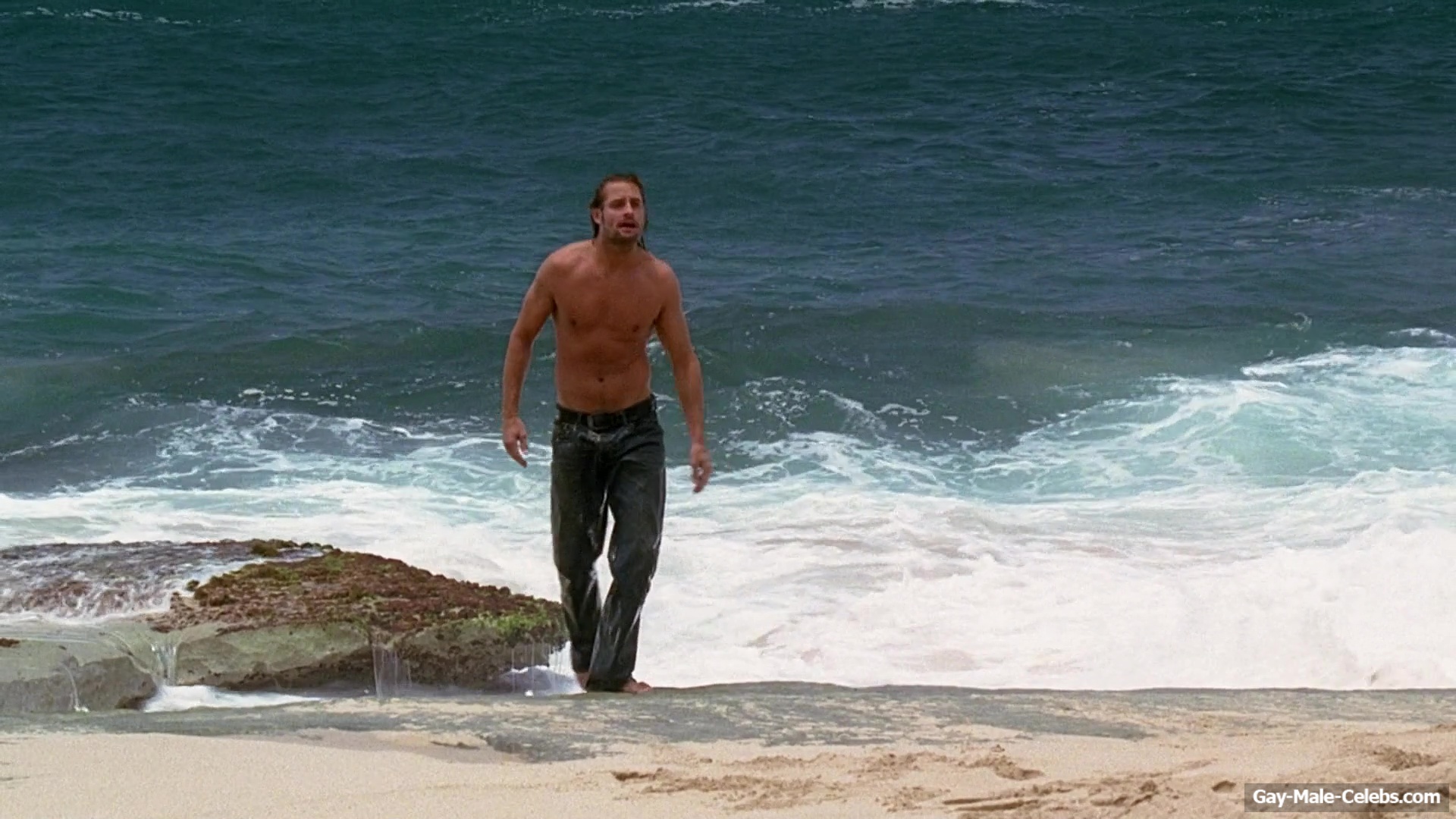 Josh Holloway sets the room on fire with his muscular body in “Lost”. This hunk is on a deserted island, but that didn’t stop him from taking a dip in the ocean. Josh didn’t have his swimming trunks with him, so he decided to swim in his jeans, but luckily without a T-shirt. As Josh comes out of the water, we can be in awe of his nude celeb torso.