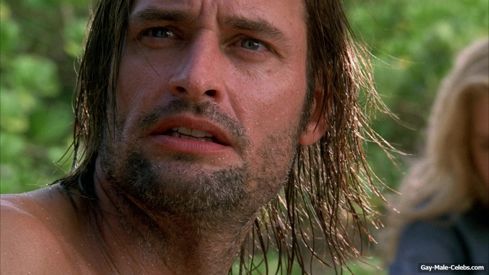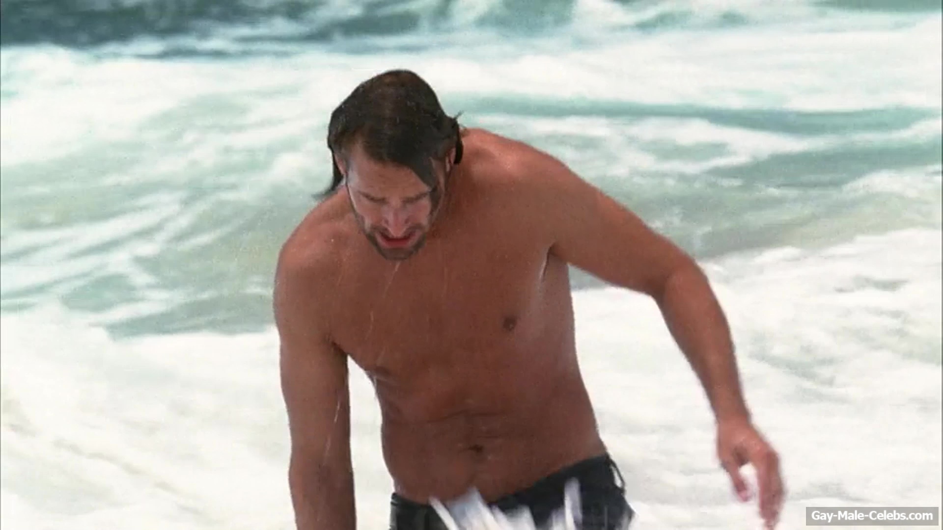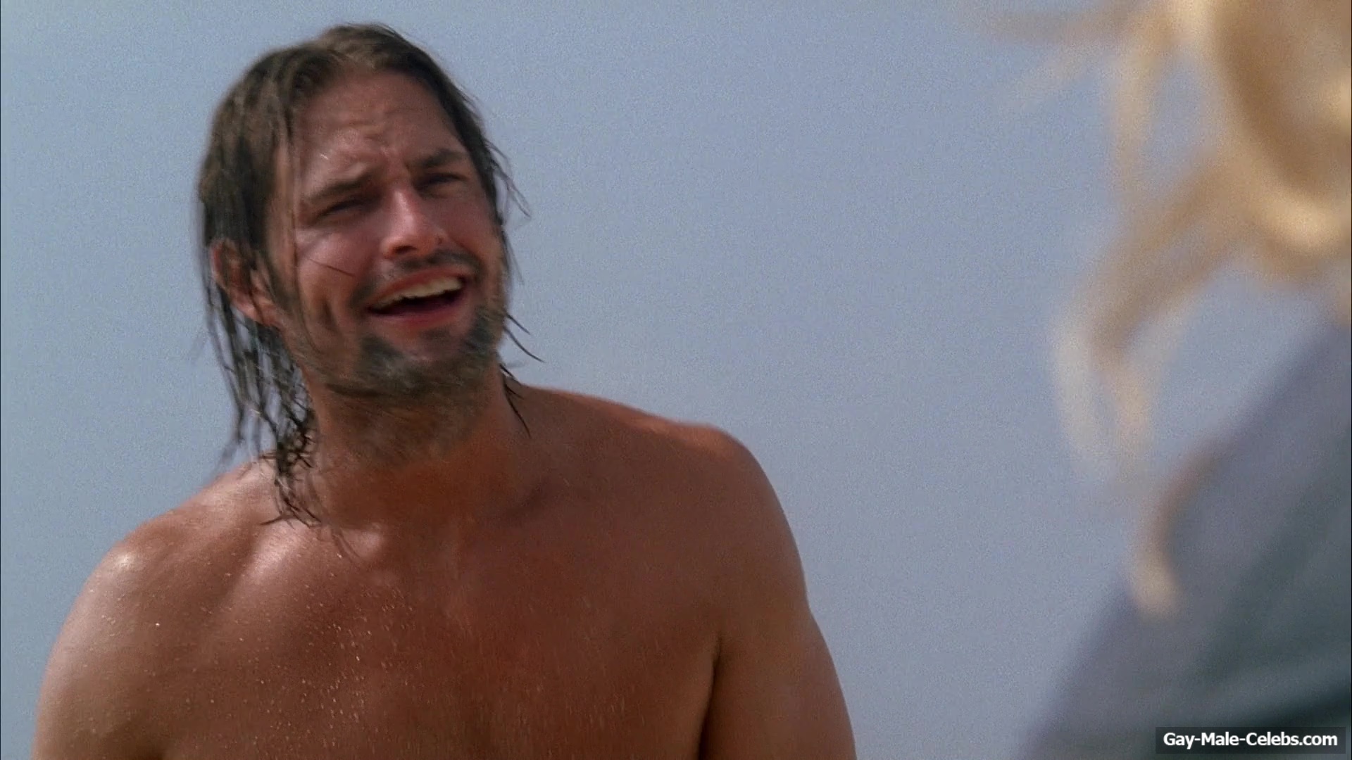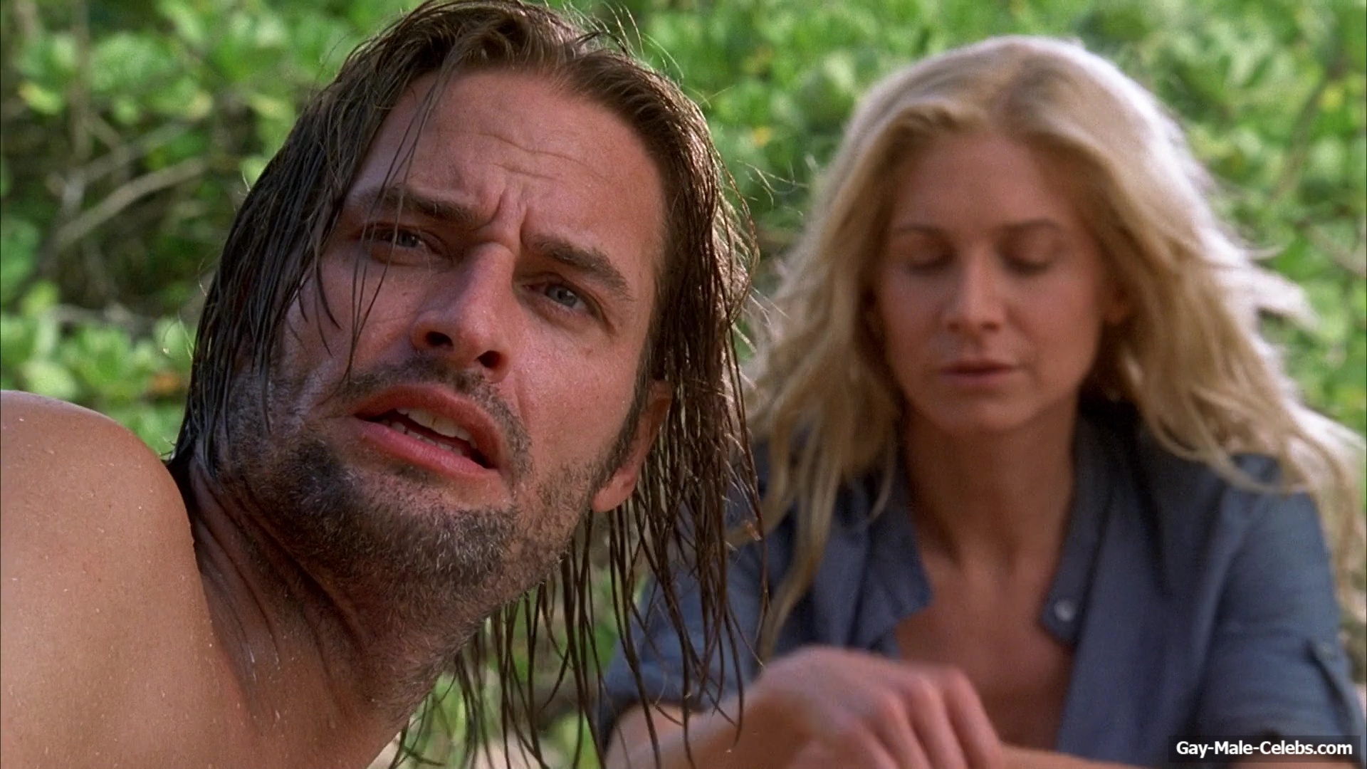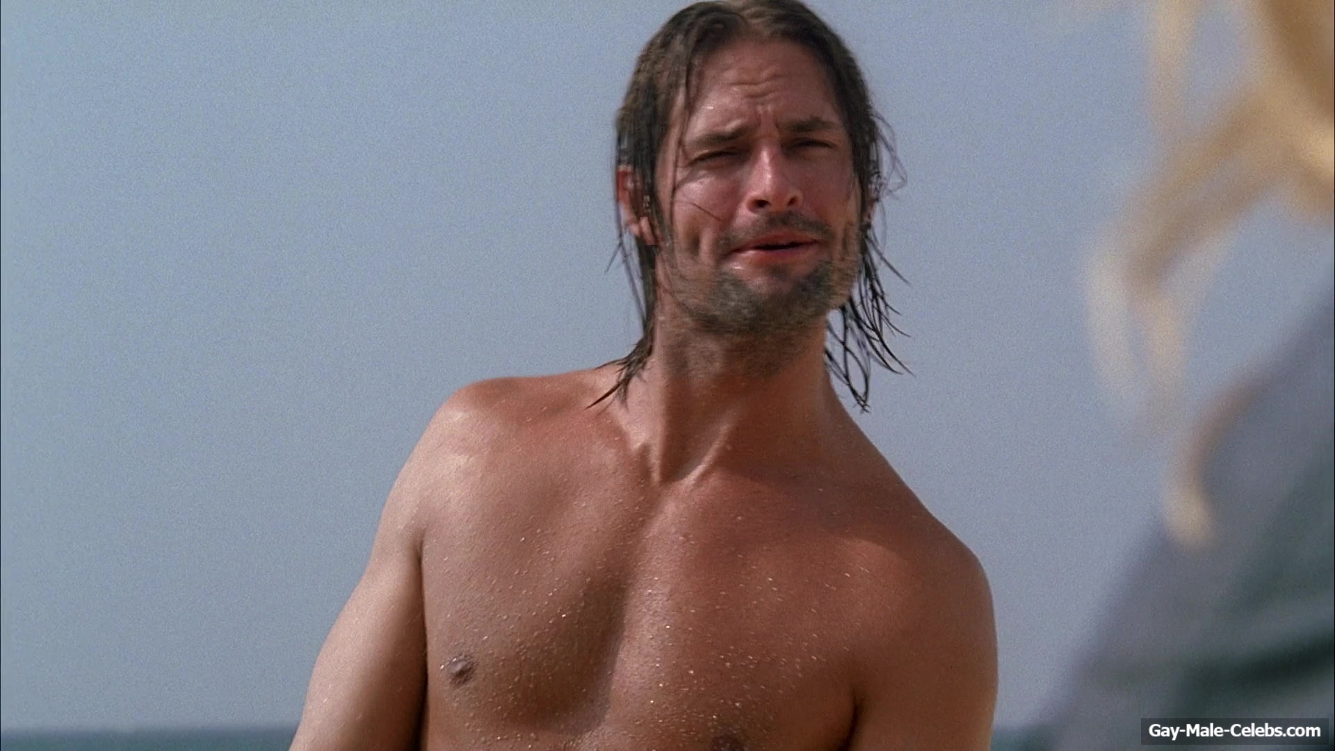 Josh Holloway sets the room on fire with his muscular body in “Lost”. This hunk is on a deserted island, but that didn’t stop him from taking a dip in the ocean. Josh didn’t have his swimming trunks with him, so he decided to swim in his jeans, but luckily without a T-shirt. As Josh comes out of the water, we can be in awe of his nude celeb torso.
