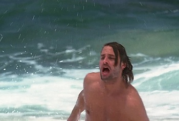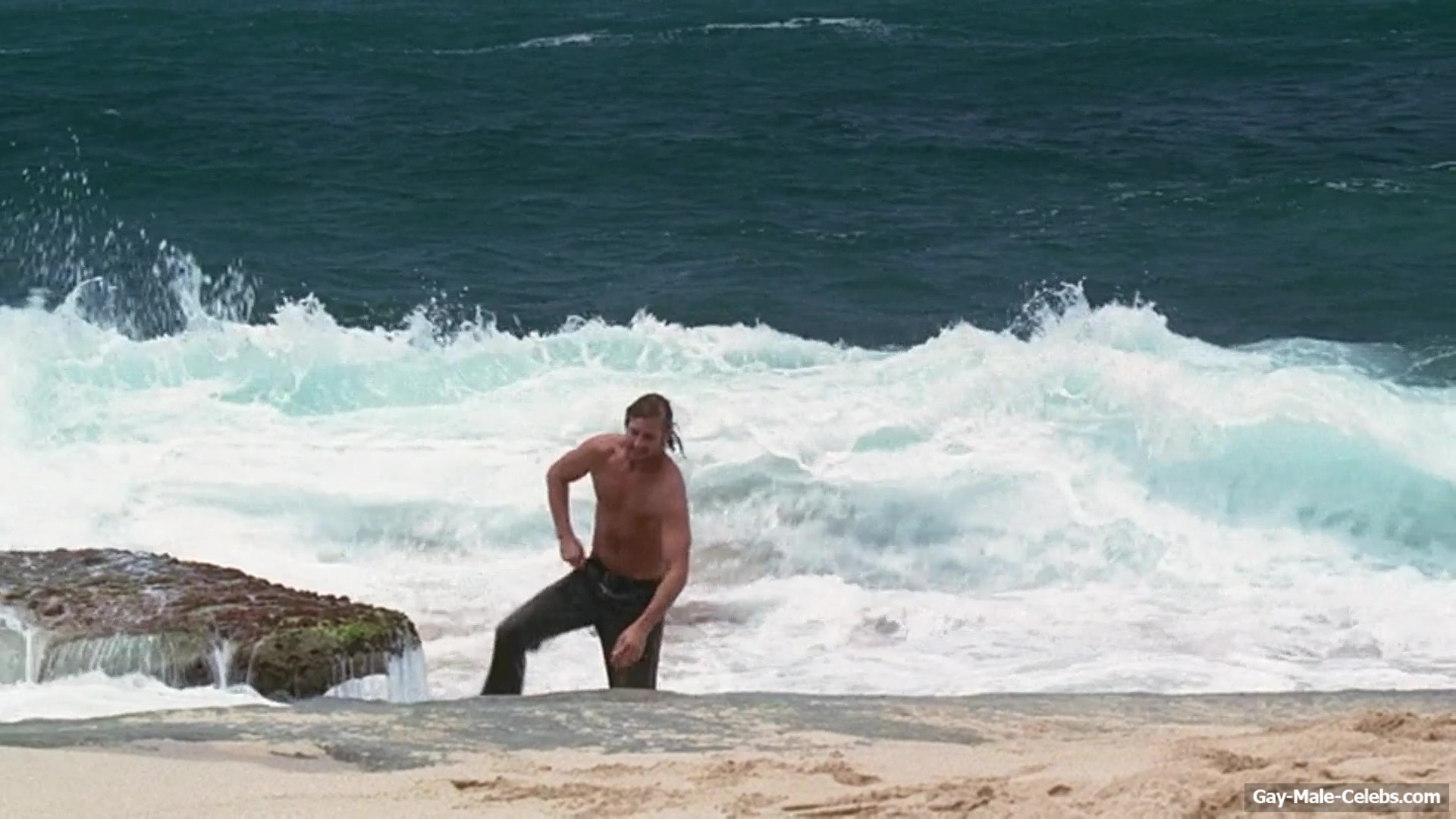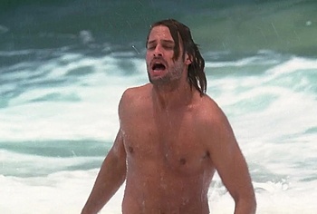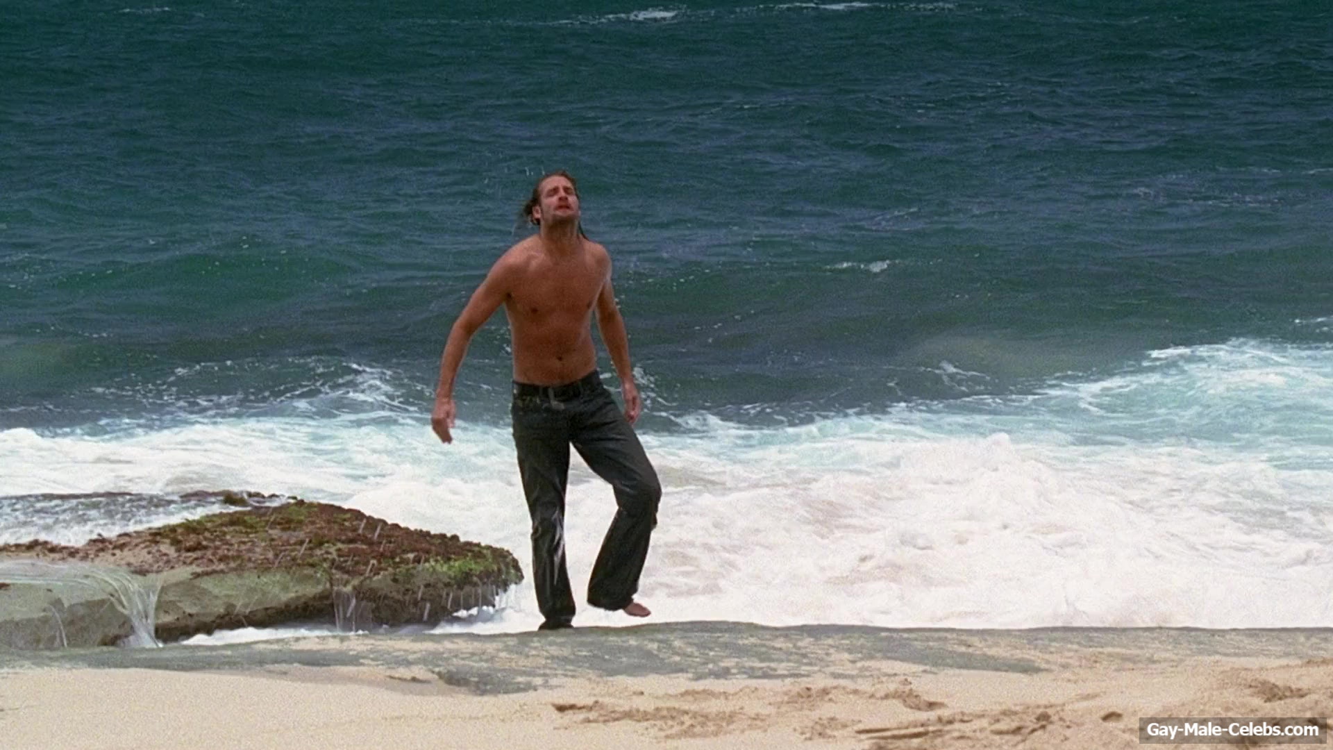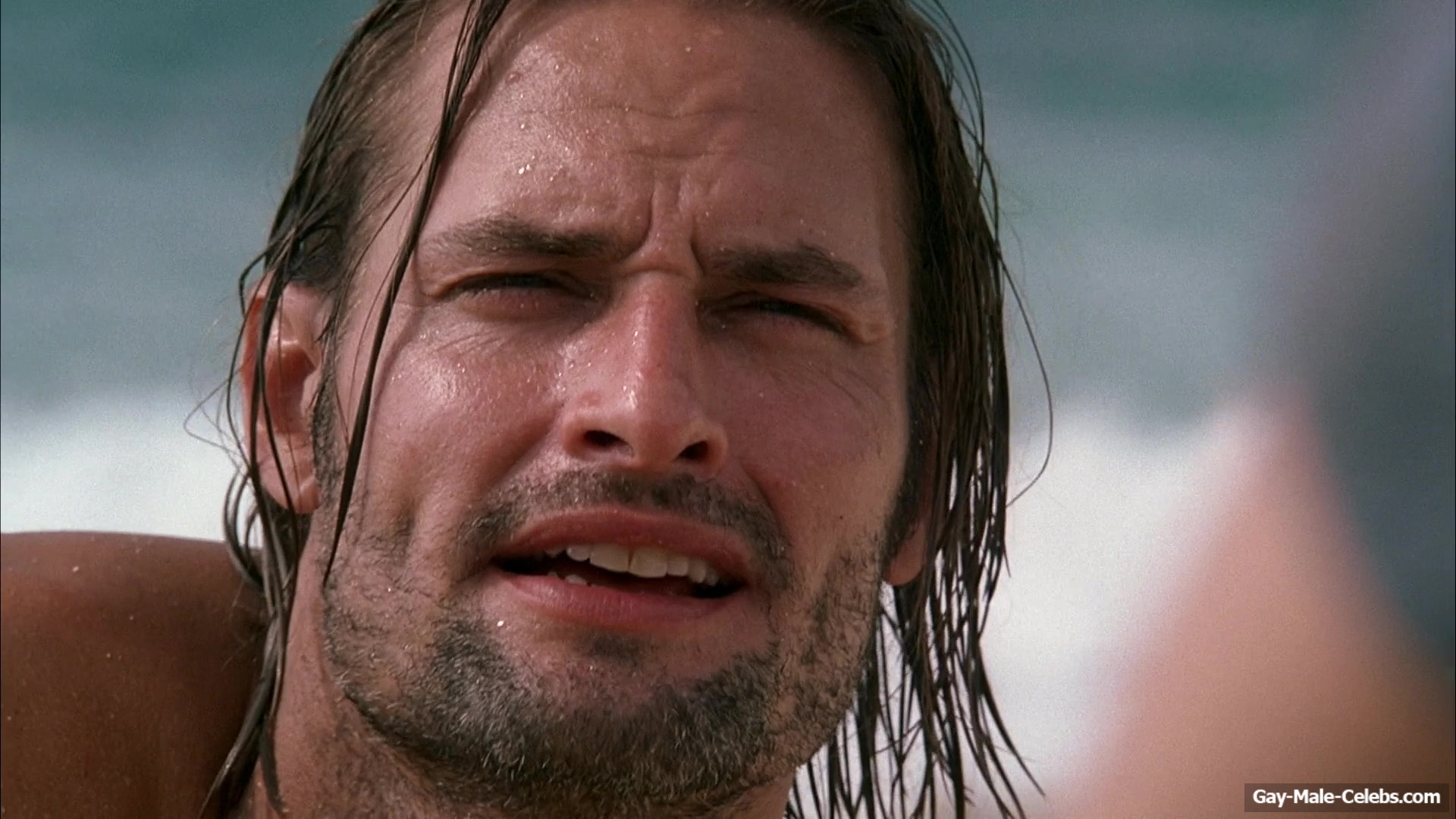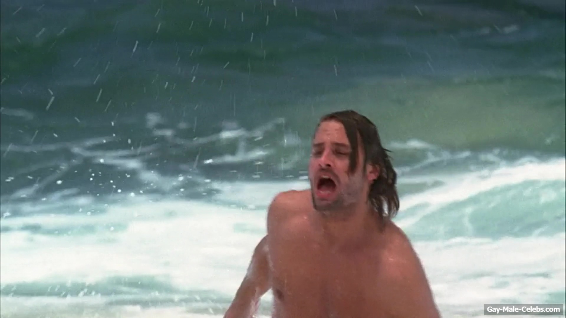Josh Holloway sets the room on fire with his muscular body in “Lost”. This hunk is on a deserted island, but that didn’t stop him from taking a dip in the ocean. Josh didn’t have his swimming trunks with him, so he decided to swim in his jeans, but luckily without a T-shirt. As Josh comes out of the water, we can be in awe of his nude celeb torso.