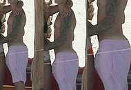 Teenage pop star Justin Beiber is a very good looking young man right now. He’s a sex symbol for many gay dudes all over the world. People would definitely love to have some gay sex with him. In this fantastic gallery he bares his sweet ass during a hot summer day. He later tries to dance with a female fan. You can also see his gorgeous bulge outlined in his pink pants.