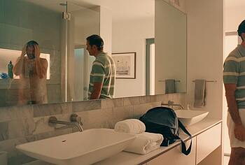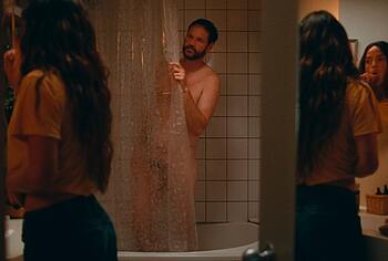 You can’t miss how naked Kyle Marvin showed us his charms in “Splitsville”. This hunk was just taking a shower, but before he threw a towel on himself, we had enough time to see the most interesting part. Kyle Marvin’s impressive naked penis was right in front of us, and we just couldn’t help but enjoy this beautiful sight. But that’s not all. Then something clearly bothered him, and he had no choice but to ask his friend to look at his balls. It is the moment that we can admire Kyle Marvin’s bouncy butt.