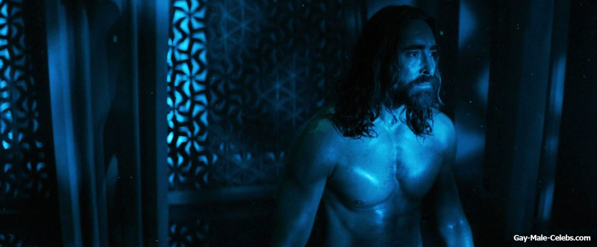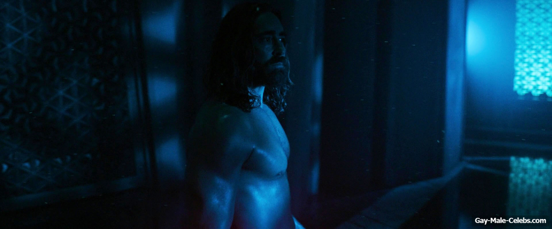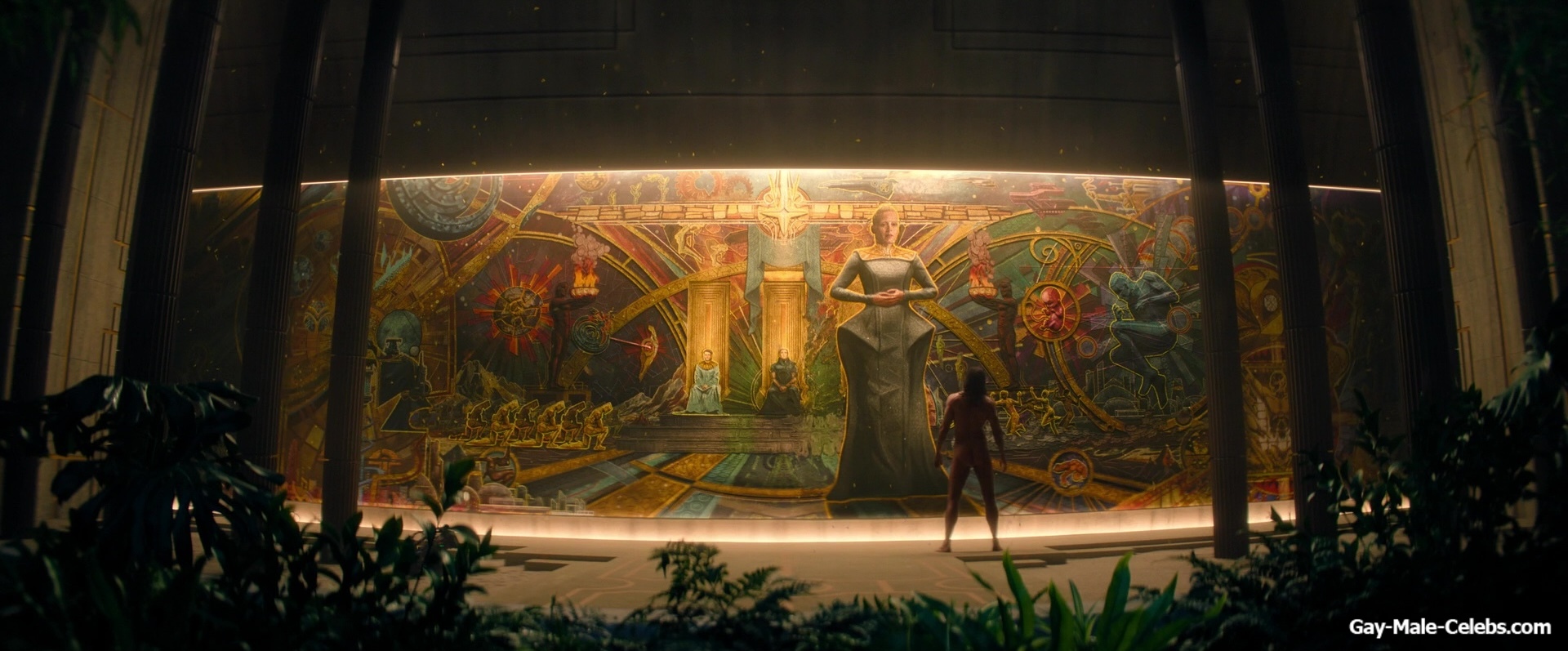 Naked Lee Pace sets the room on fire with his stunning physique in “Foundation”. This handsome man truly resembles a Greek god, so mysterious, massive, and muscular. We are absolutely sure that Lee spends a huge amount of time working out to have such a sexy body. Although we did not see this stallion’s penis, Lee Pace’s nude juicy ass is presented to us in all its glory.