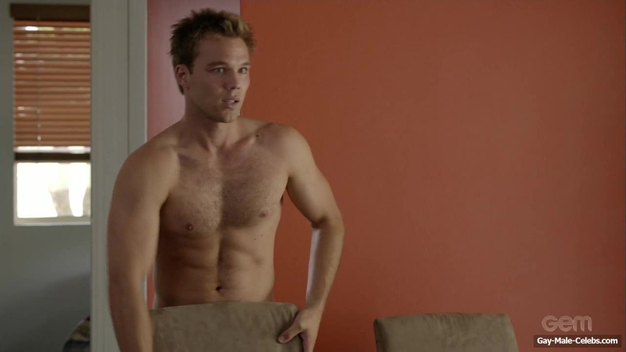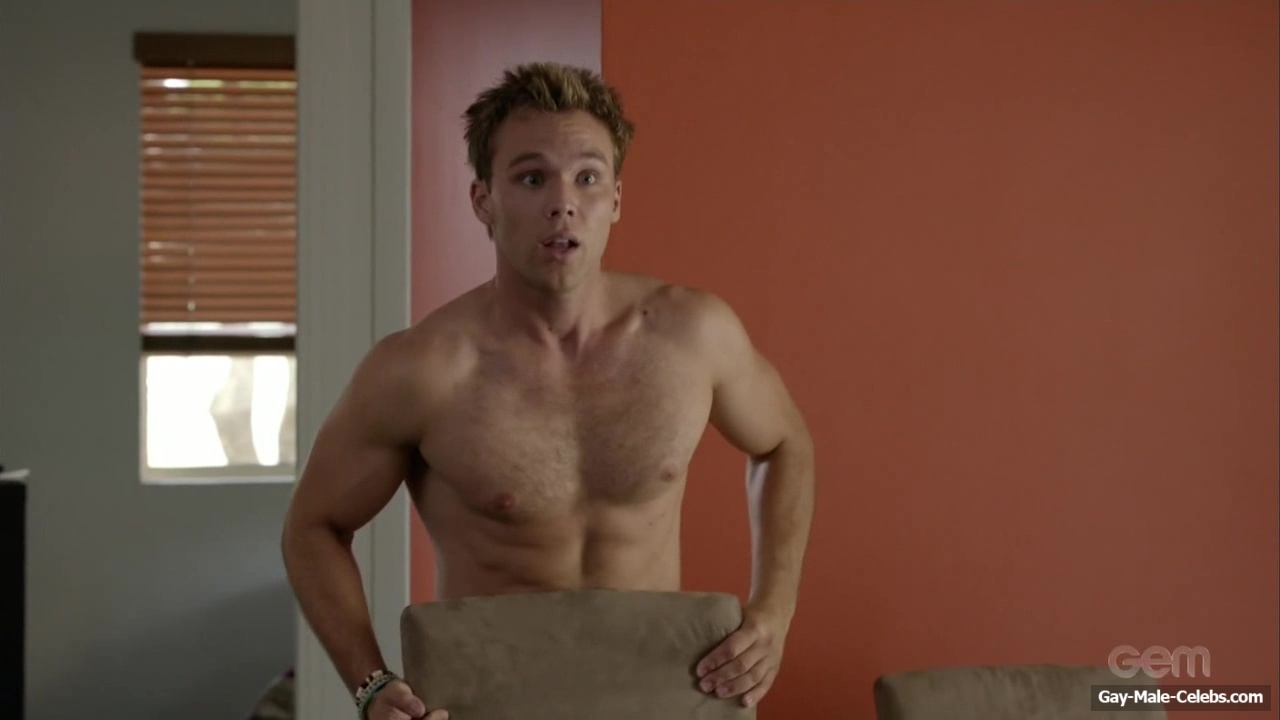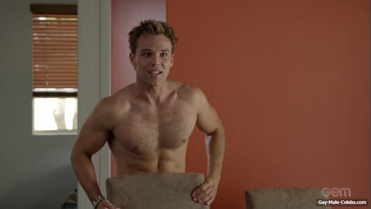Lincoln Lewis demonstrates his pumped up body in “Tricky Business”. Lincoln walks out of the bedroom as if nothing had happened and suddenly notices that there is someone in the bedroom. Everything would be fine if it weren’t for one thing – Lincoln Lewis was completely naked. And we can admire not only his nude torso but also his hairy pubis. It’s a pity that this handsome guy managed to cover his penis with a chair. But no doubts that Lincoln’s penis is quite impressive.