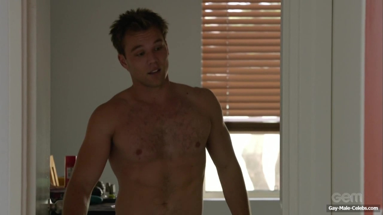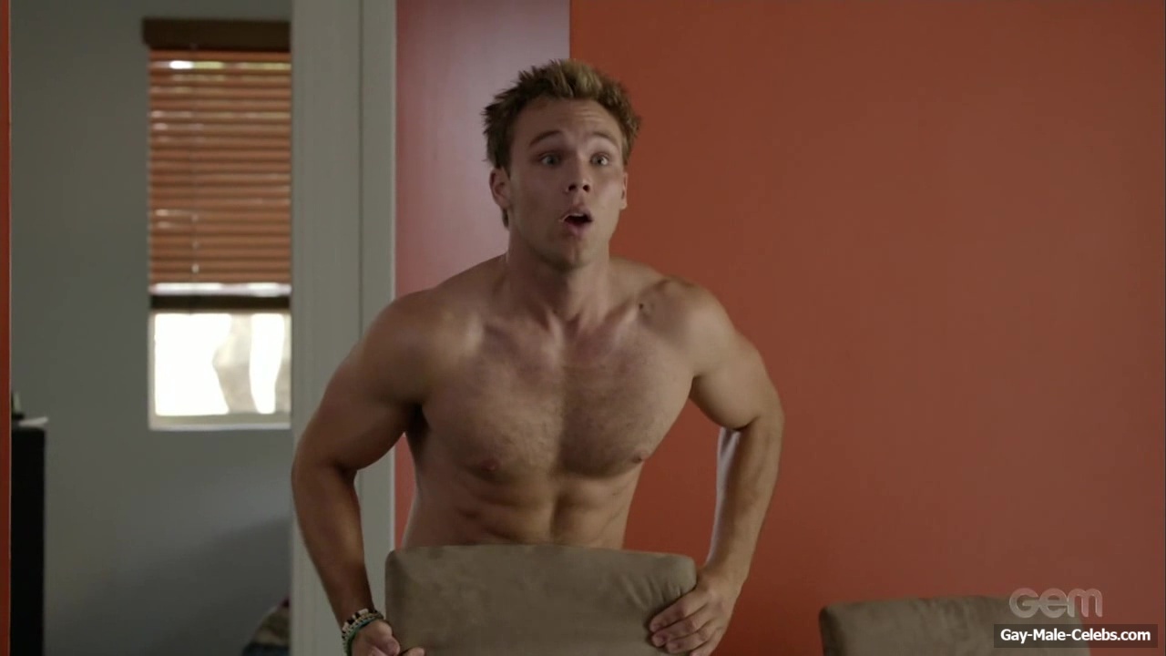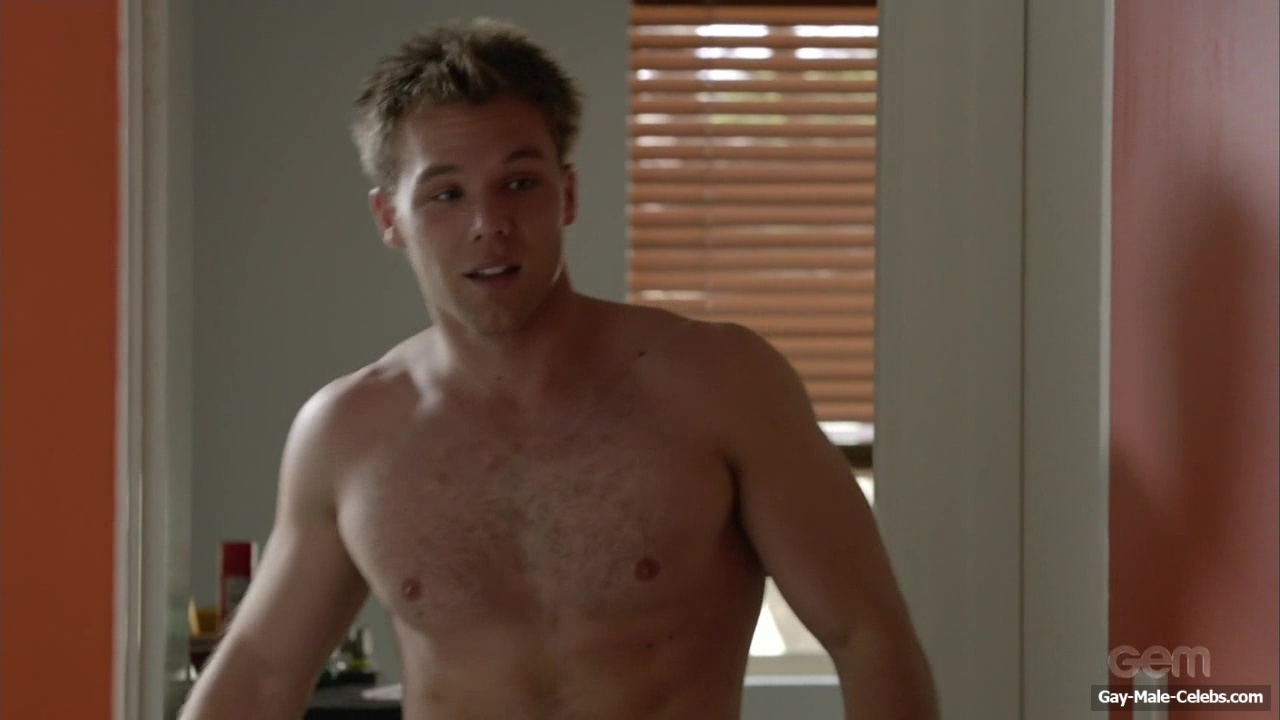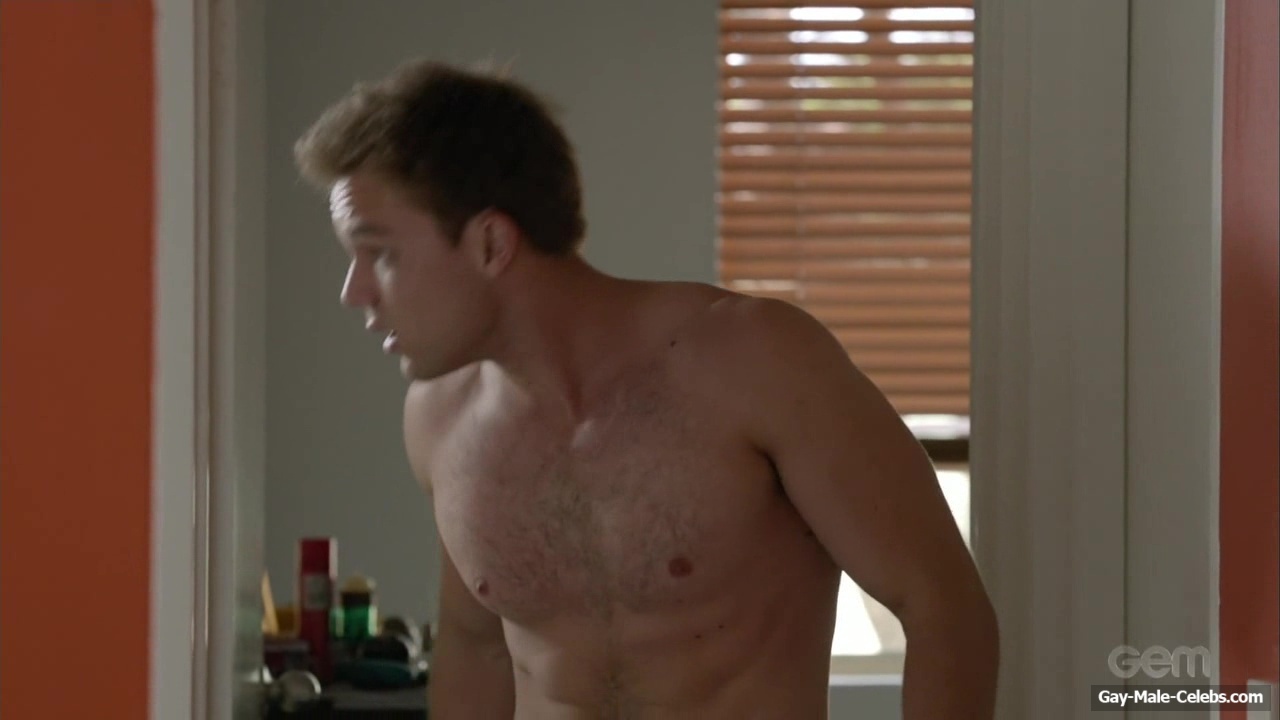 Lincoln Lewis demonstrates his pumped up body in “Tricky Business”. Lincoln walks out of the bedroom as if nothing had happened and suddenly notices that there is someone in the bedroom. Everything would be fine if it weren’t for one thing – Lincoln Lewis was completely naked. And we can admire not only his nude torso but also his hairy pubis. It’s a pity that this handsome guy managed to cover his penis with a chair. But no doubts that Lincoln’s penis is quite impressive.