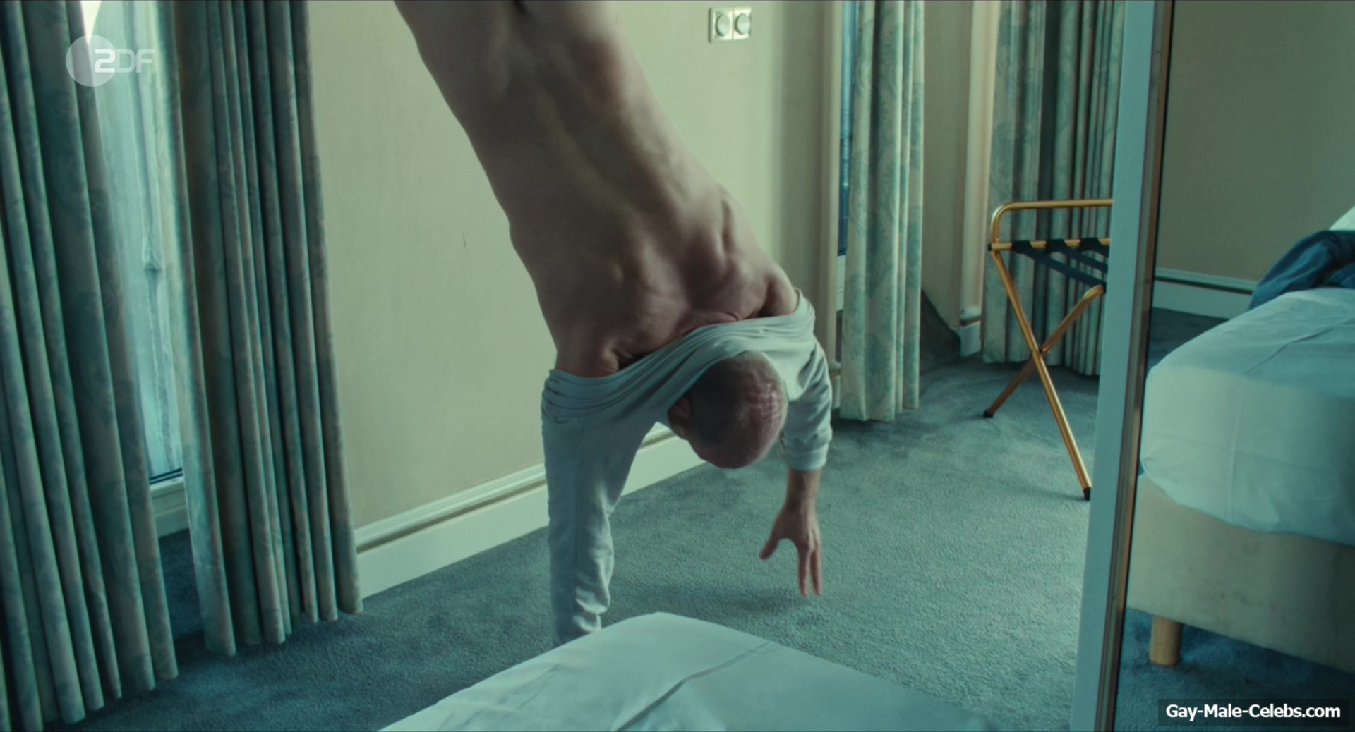 Lukas Turtur heats things up with his actions in “Ivo”. After some hot sex, this hunk decided to show how he can put on a jacket while doing a handstand. Everything would be fine, except Lukas wasn’t wearing any clothes. We get to admire not only Lukas Turtur real naked penis, but also his juicy ass. Then they just in bed and talked to each other.