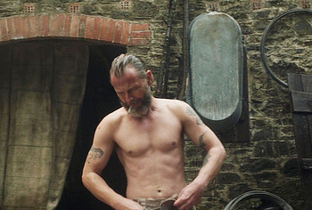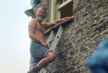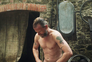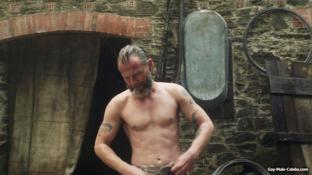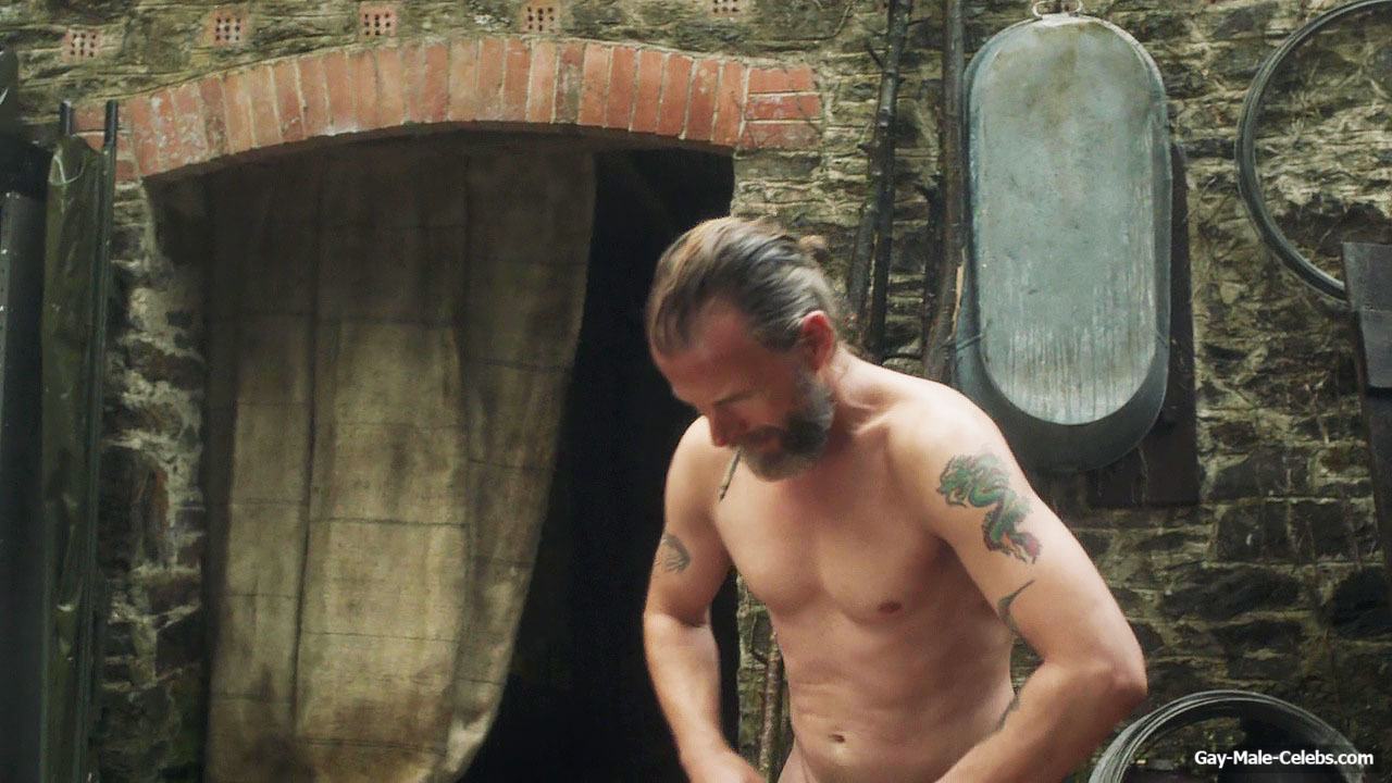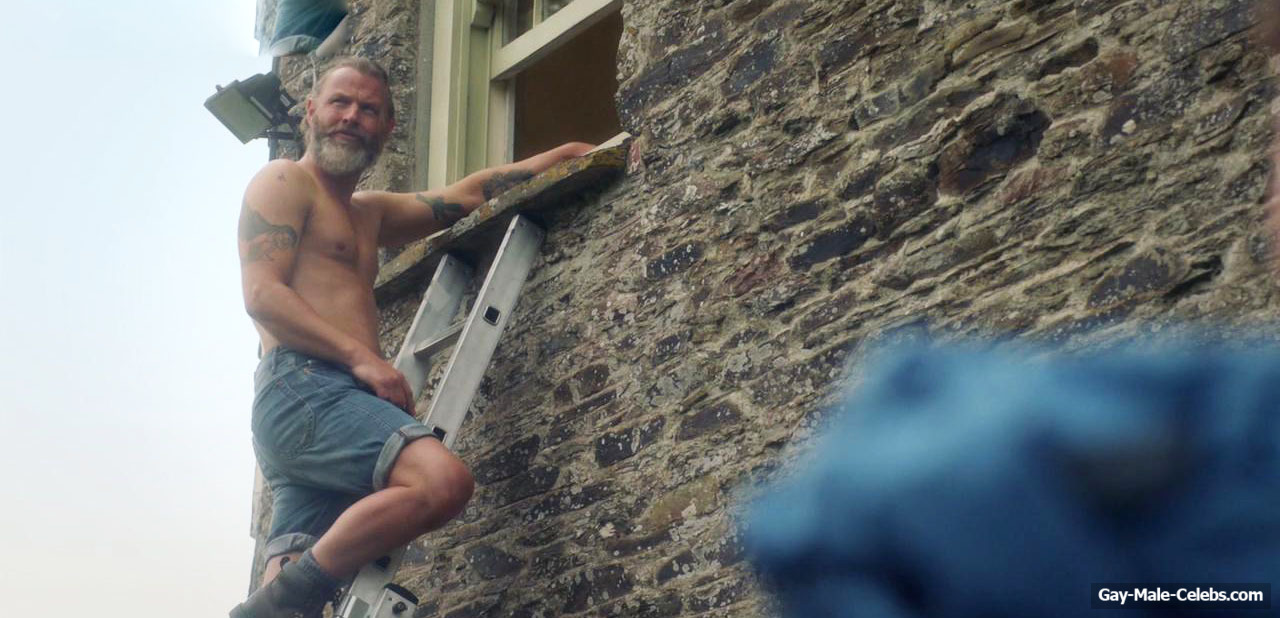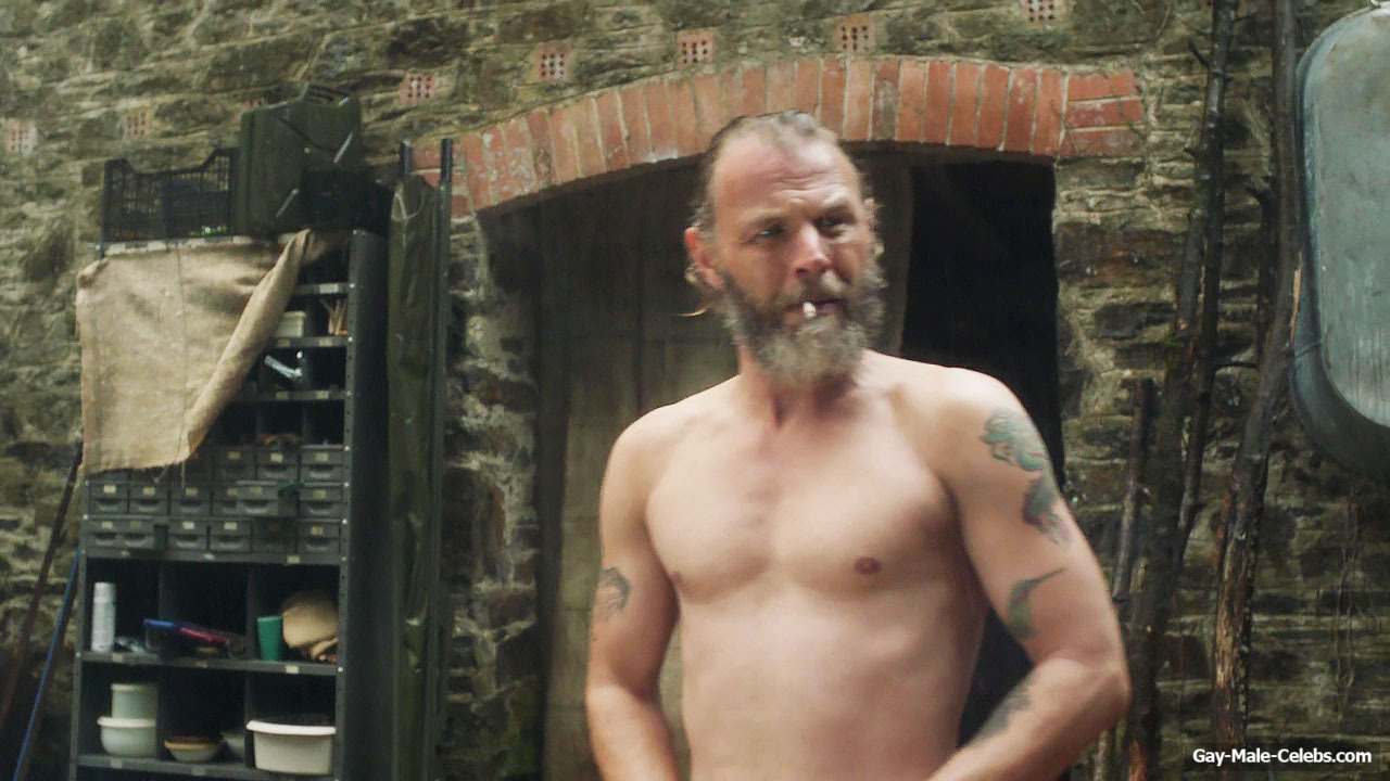 Get ready, because this post will definitely not leave you indifferent to Mark Letheren! Mark was not shy about completely exposing himself in “Delicious”. At his 54, this man has a pretty good body, but what interests us most is Mark Letheren’s naked penis. It stands before us in all his glory when Mark comes out of the barn onto the street. By the way, this bare male butt is also very attractive.