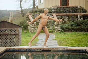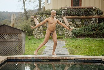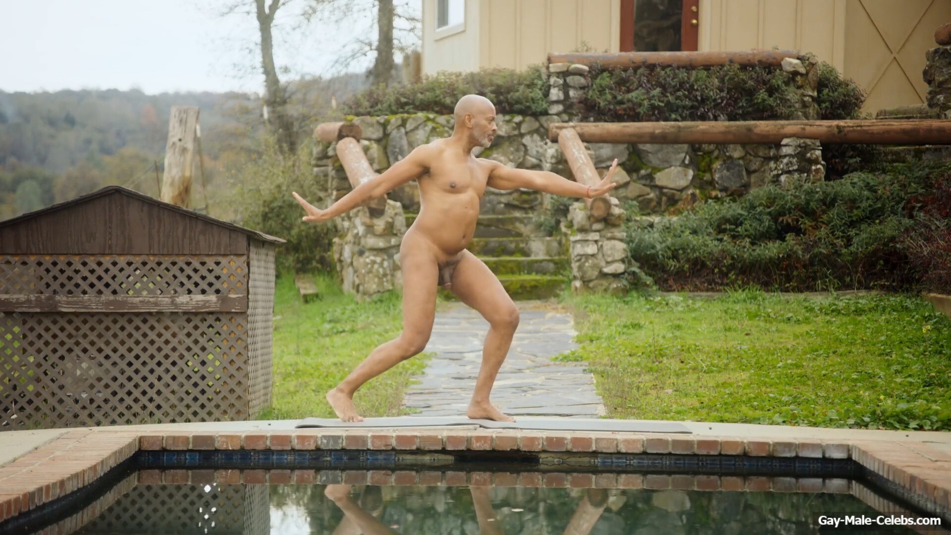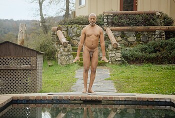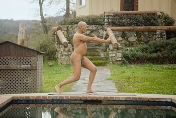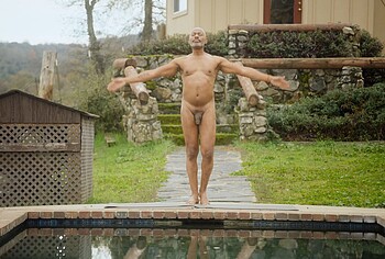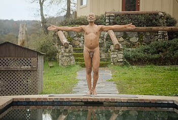 Mark Nordike gets completely naked in “All Kinds of Love”. Mark stands by the pool and apparently does yoga before jumping in. All that would be fine, but this stud didn’t wear anything on purpose, so we could enjoy his naked real dick. He’s not embarrassed at all by people sitting around the table talking.