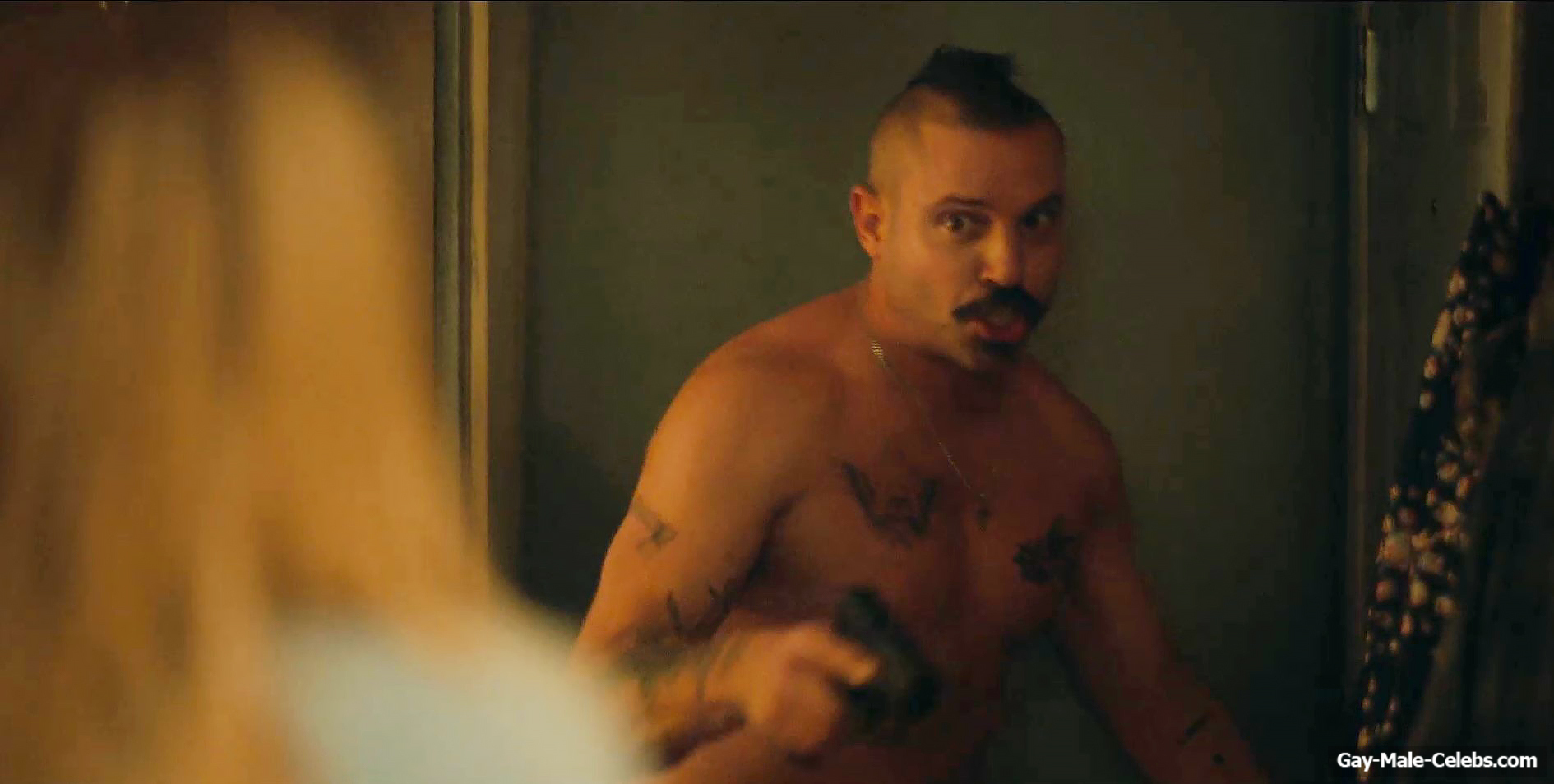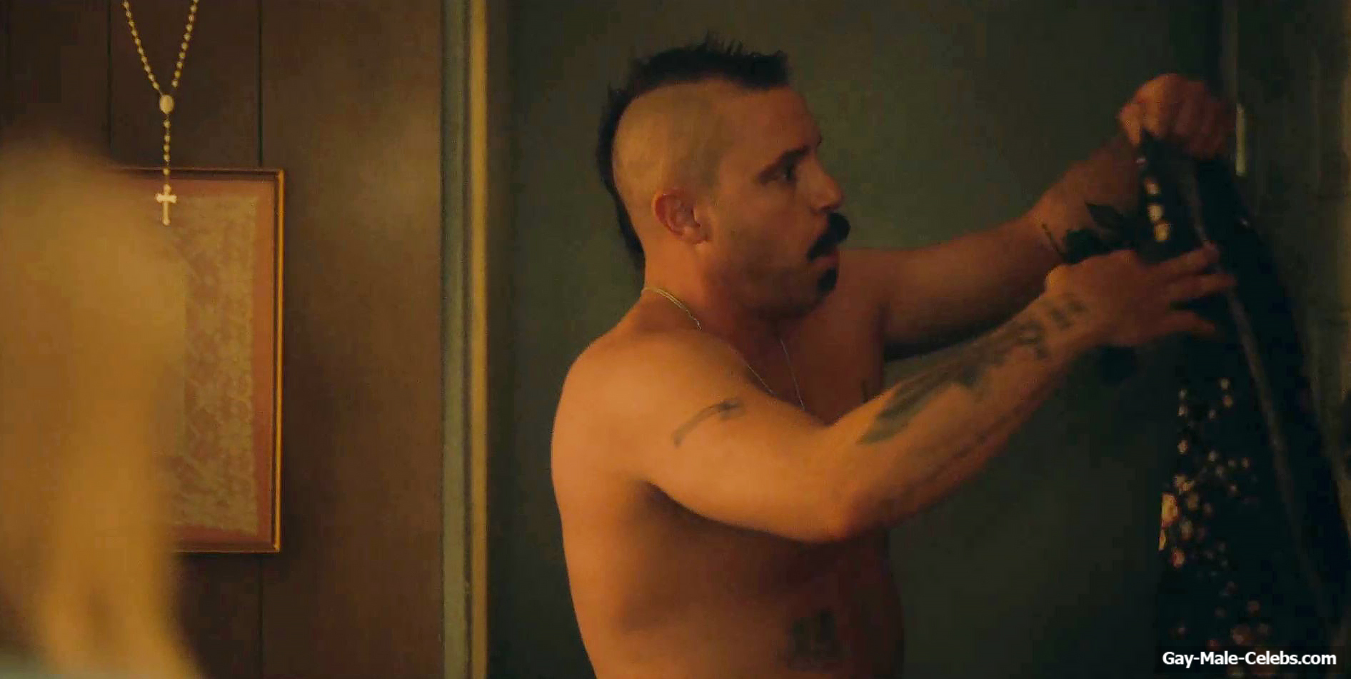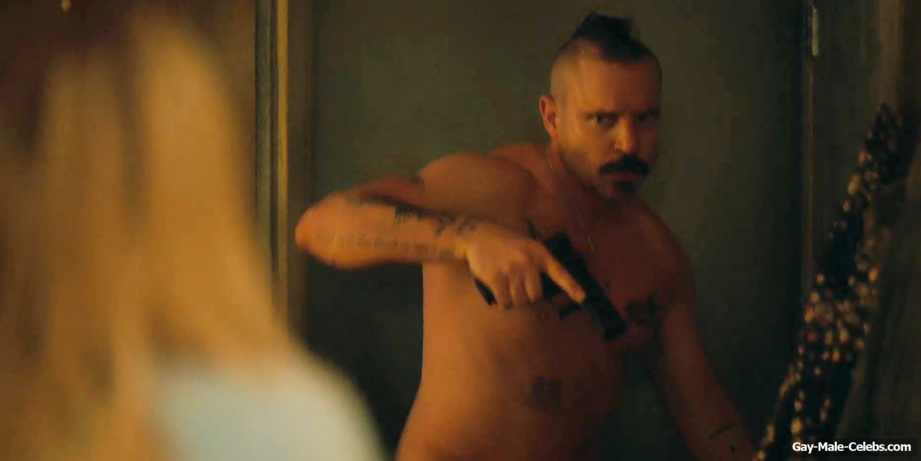You can’t miss this hot scene with Michael Aaron Milligan from “The Hunting Wives”! This guy was so scared that he met a girl with a gun in his hands. But the most exciting thing is that Michael Aaron Milligan was completely naked. We can be in awe of not only his tight celebrity ass, but also his penis. It is worth noting that this handsome guy has such junk that anyone would be jealous of such size.