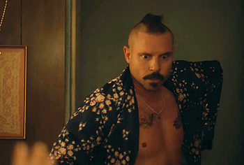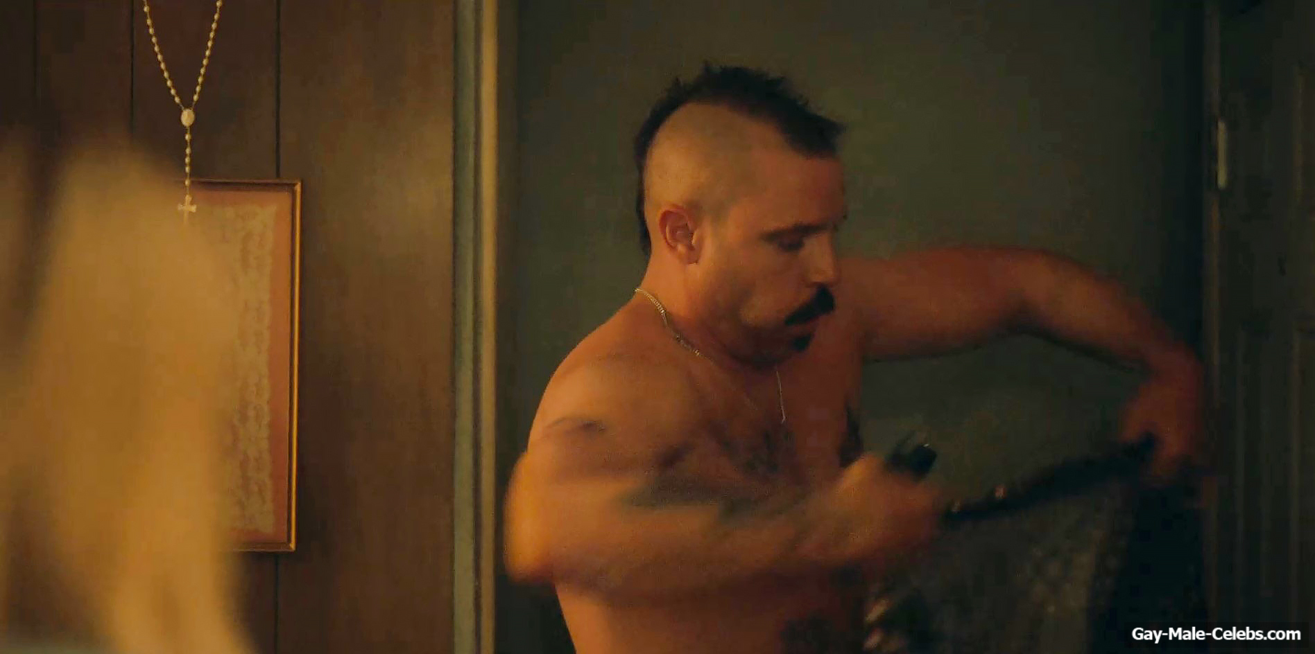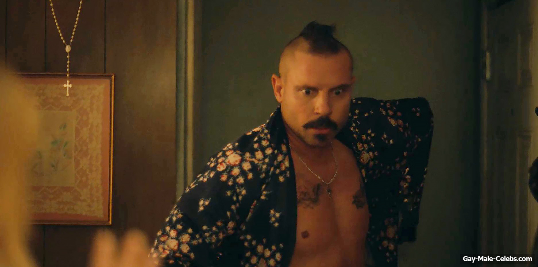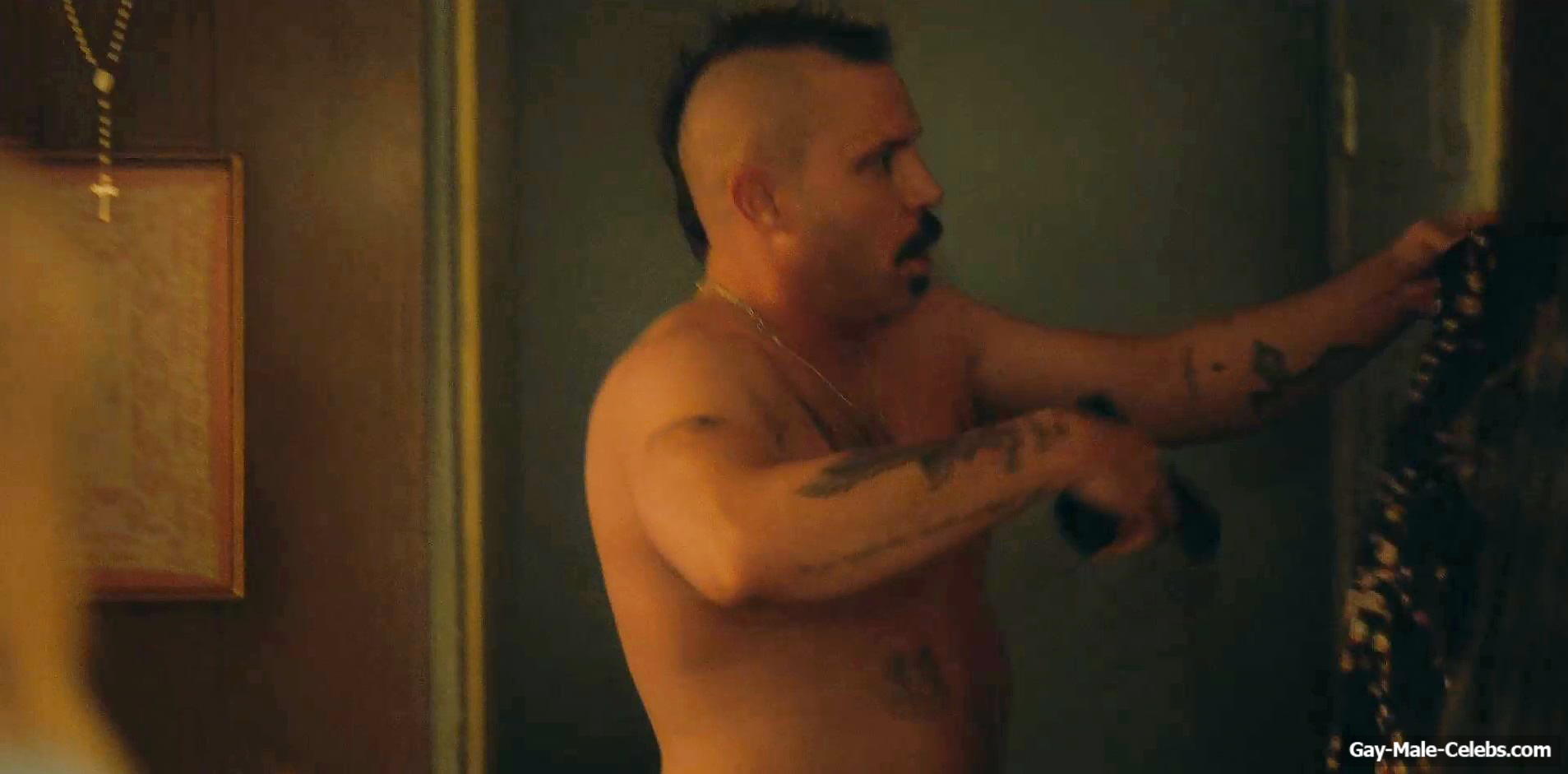 You can’t miss this hot scene with Michael Aaron Milligan from “The Hunting Wives”! This guy was so scared that he met a girl with a gun in his hands. But the most exciting thing is that Michael Aaron Milligan was completely naked. We can be in awe of not only his tight celebrity ass, but also his penis. It is worth noting that this handsome guy has such junk that anyone would be jealous of such size.
