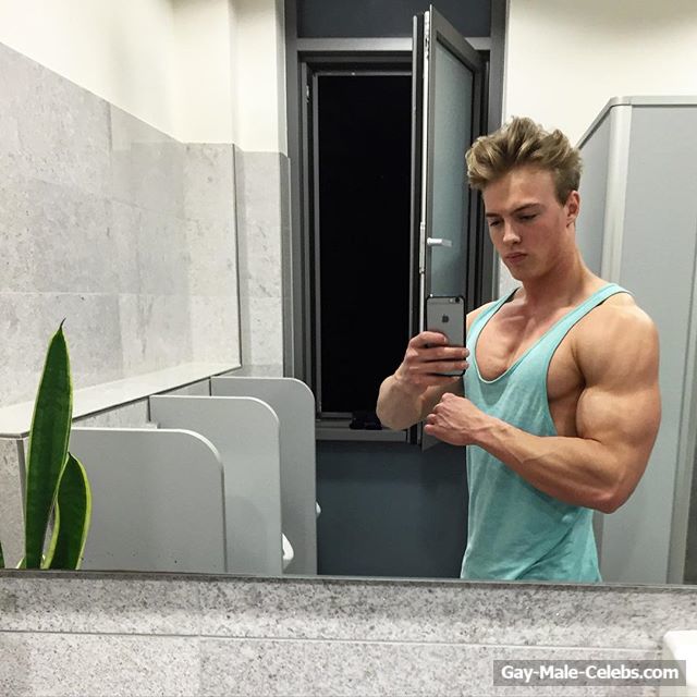 Nowadays this hot blonde model has become very popular within gay community. His beautiful face and that blonde hair are perfectly combined with that firm and ripped body! He simply looks magnificent. Beautiful and handsome, what more do you want! We think we know the answer to that. So we will go and tell you that this is the place where you can finally enjoy watching his hot shirtless selfie!