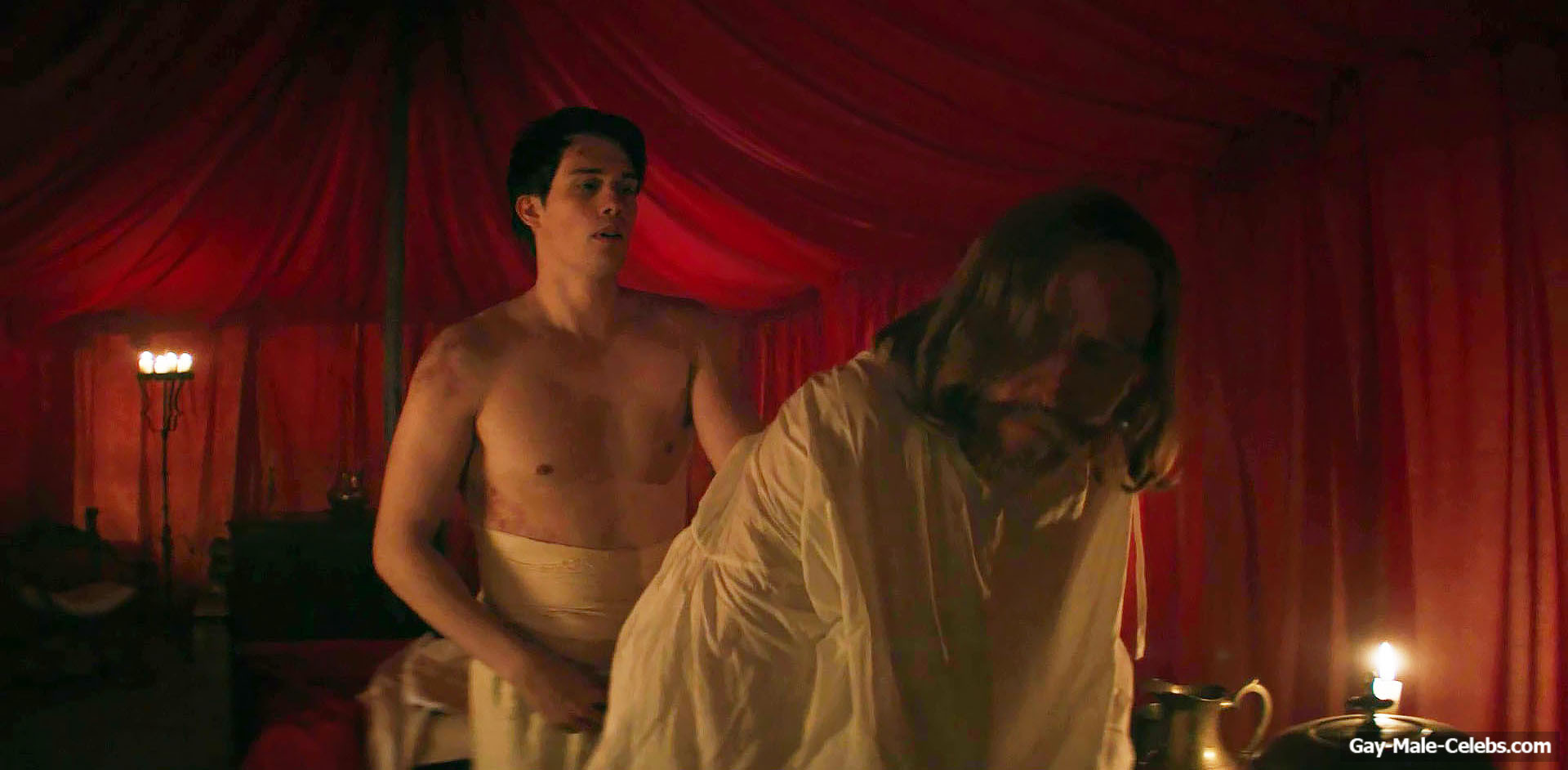 Nicholas Galitzine will impress you with his nude acting in Mary & George (2024). This British actor had to play an injured man according to the plot, but this did not stop him from becoming one of the famous actors in nude gay scenes. His passionate kisses with the bearded man quickly left both of them naked. Nicholas Galitzine thoroughly moistened the head of his nude penis with saliva in order to enter the ass hole of his lover as smoothly as possible, and then fucked him doggy style.