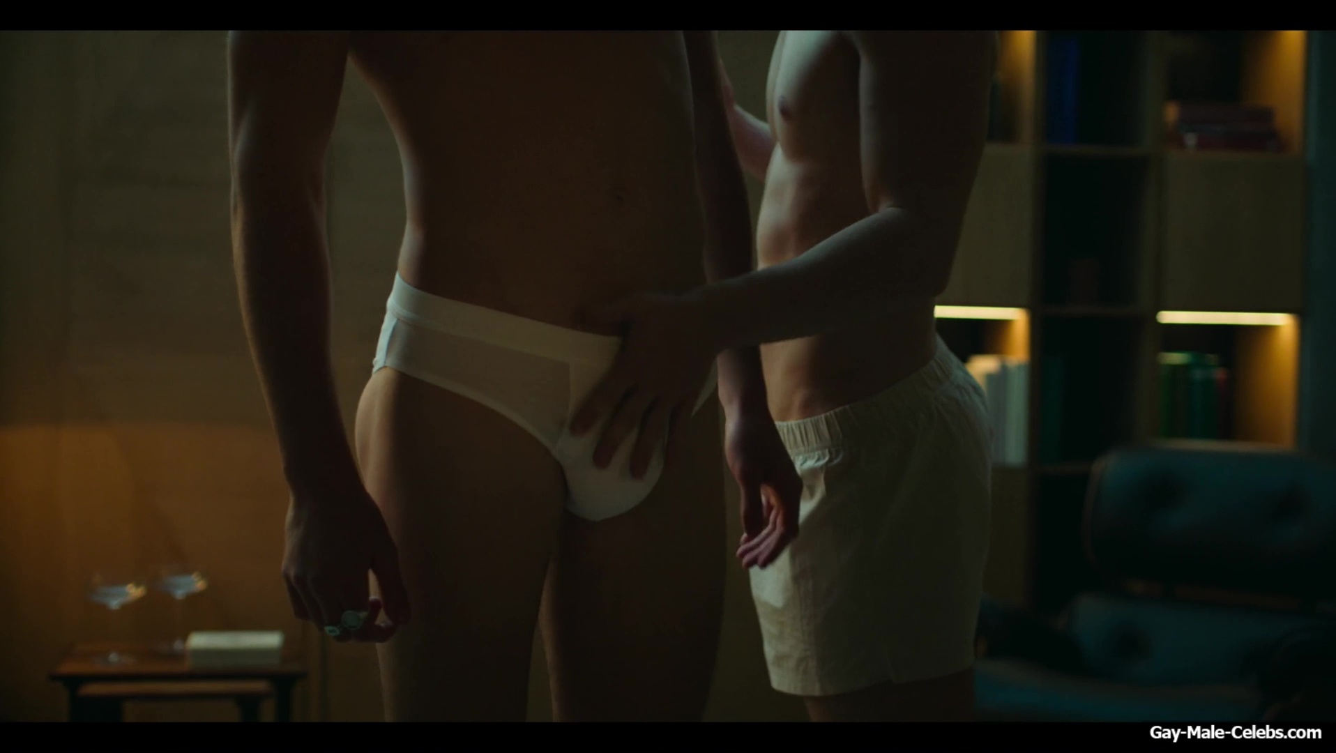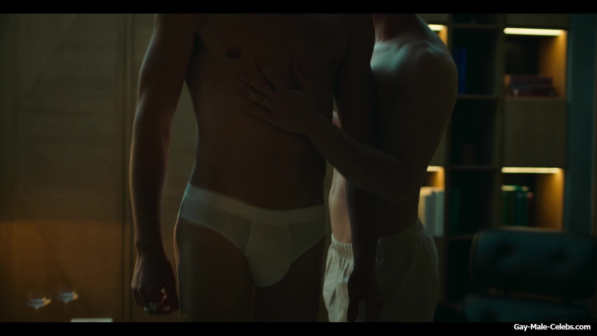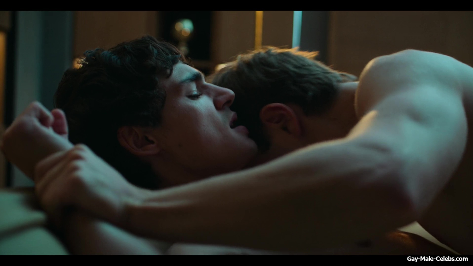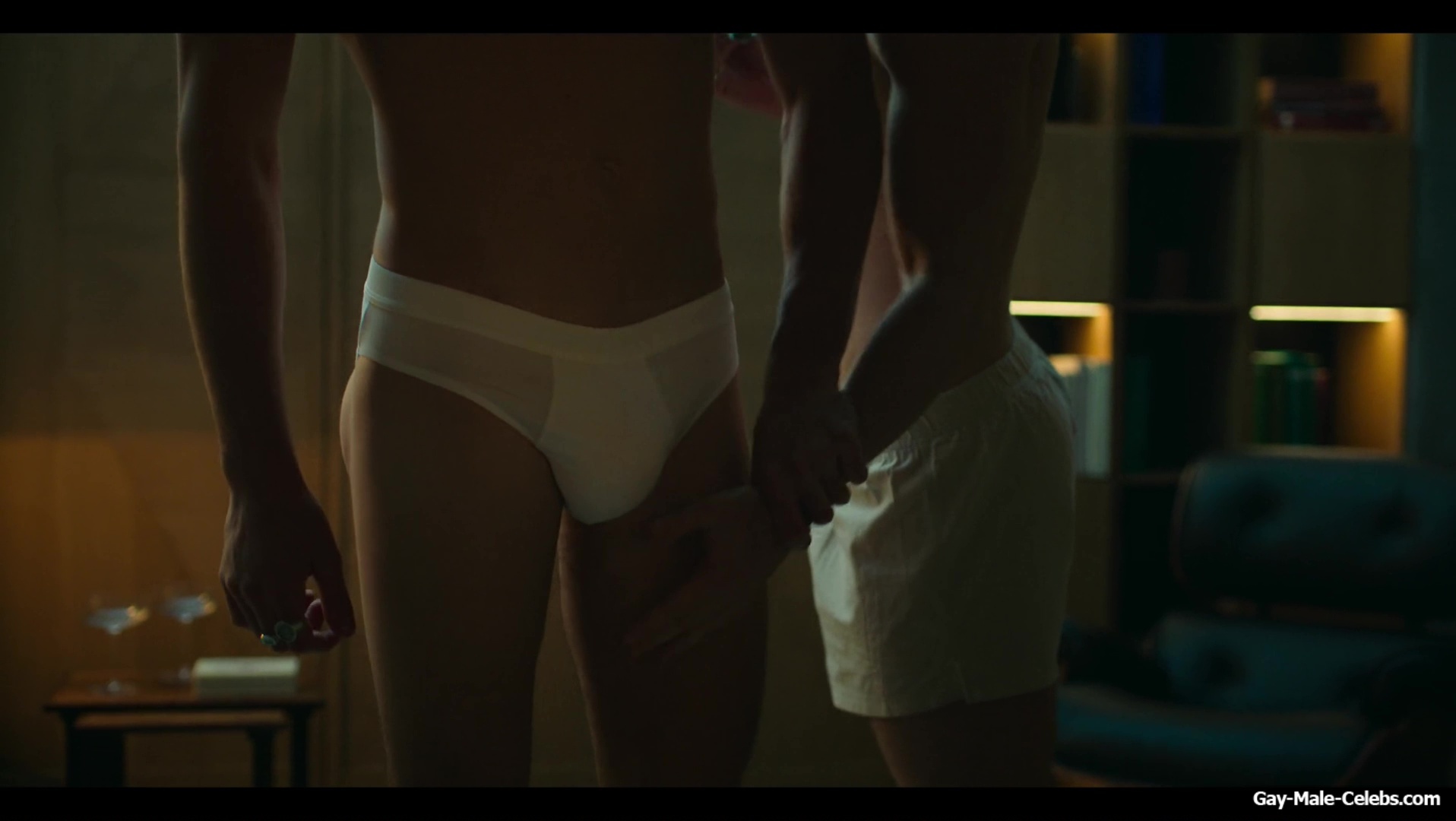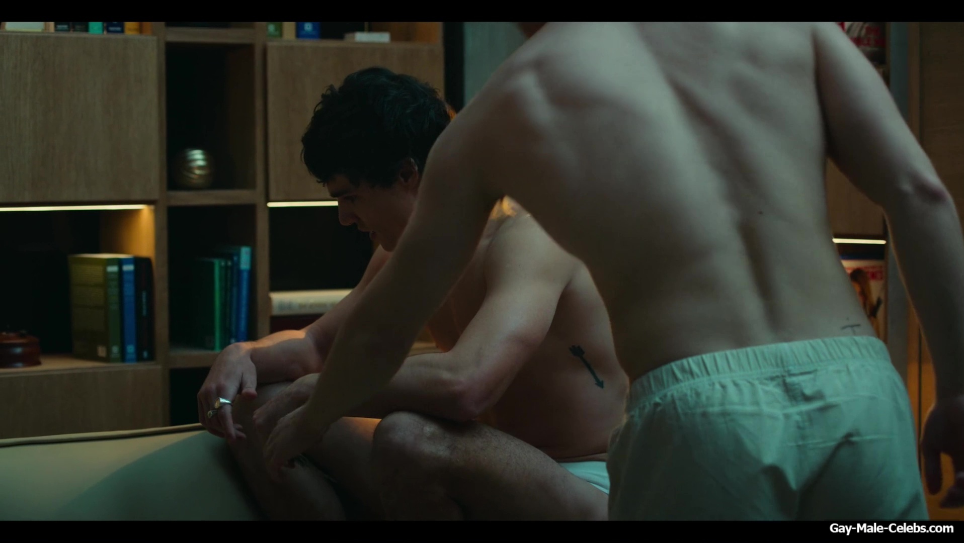 You can’t miss this hot scene with Nuno Gallego and Fernando Lindez from “Elite”! These two had a great time together. Shirtless Nuno Gallego pounced on Fernando and began covering his body with kisses. This hunk has an amazing body, just look at those pink nipples! And Nuno Gallego’s bare butt deserves special attention. Fernando Lindez doesn’t stay on the sidelines either and allows us to admire his pumped-up torso. And his impressive bulge is visible even through those white briefs.