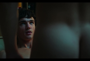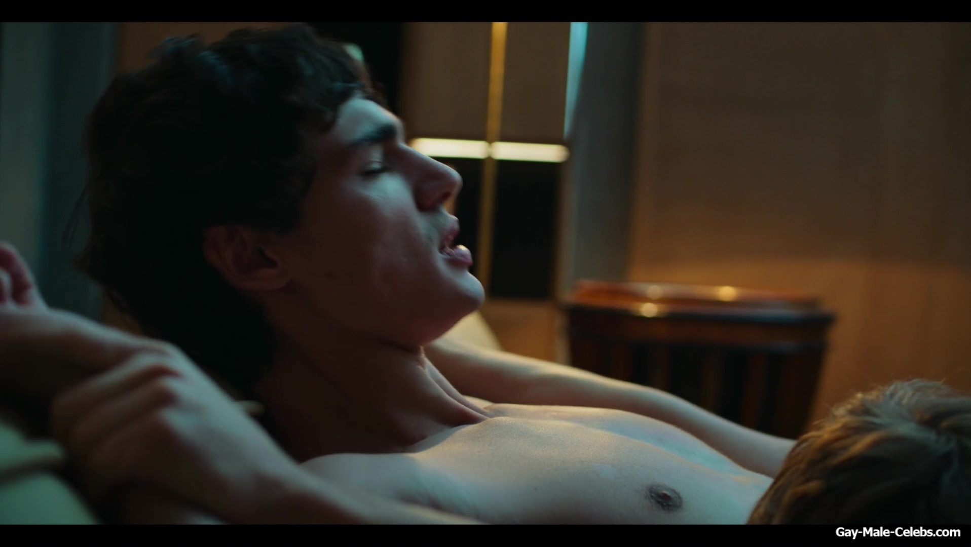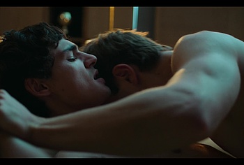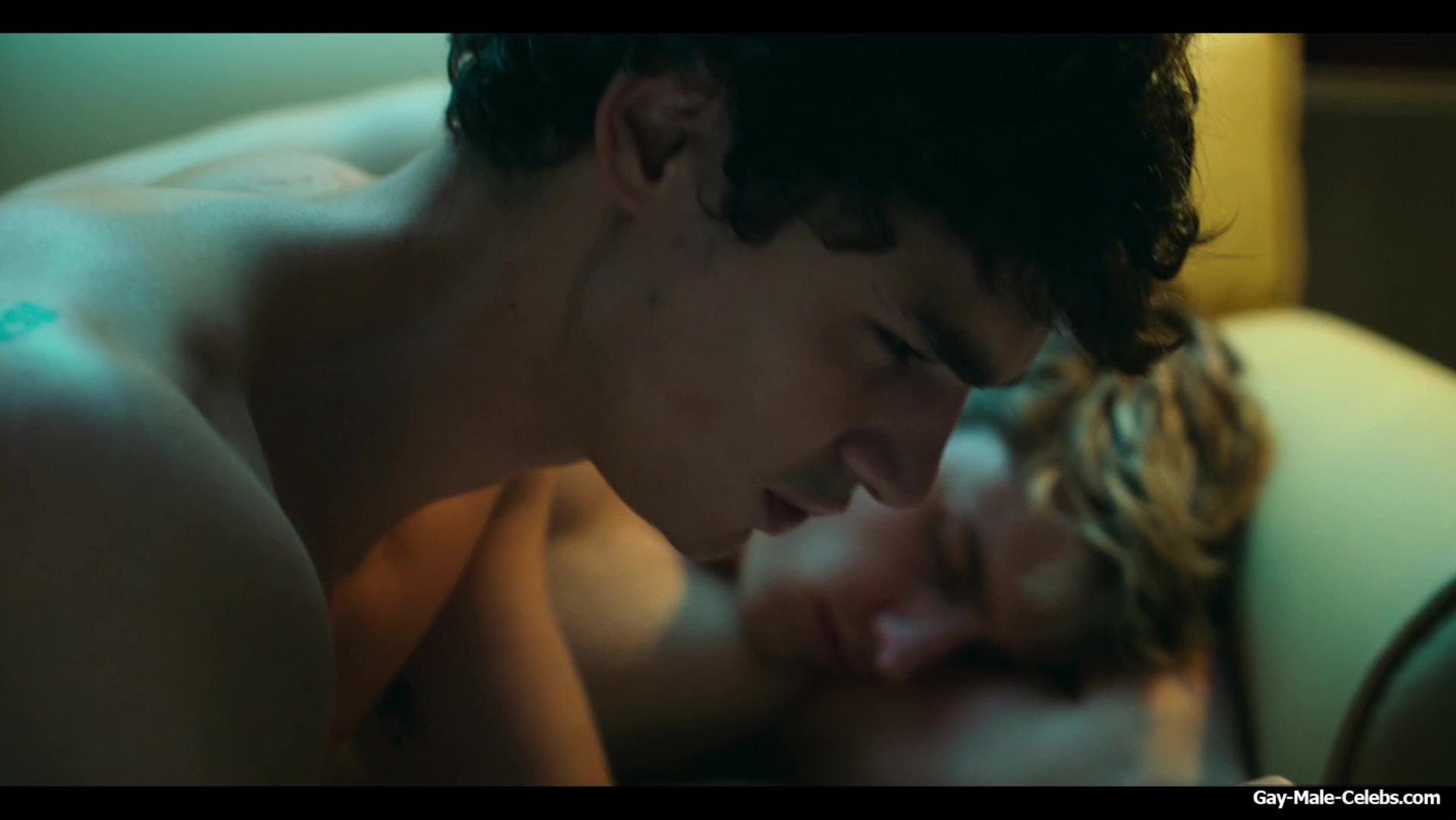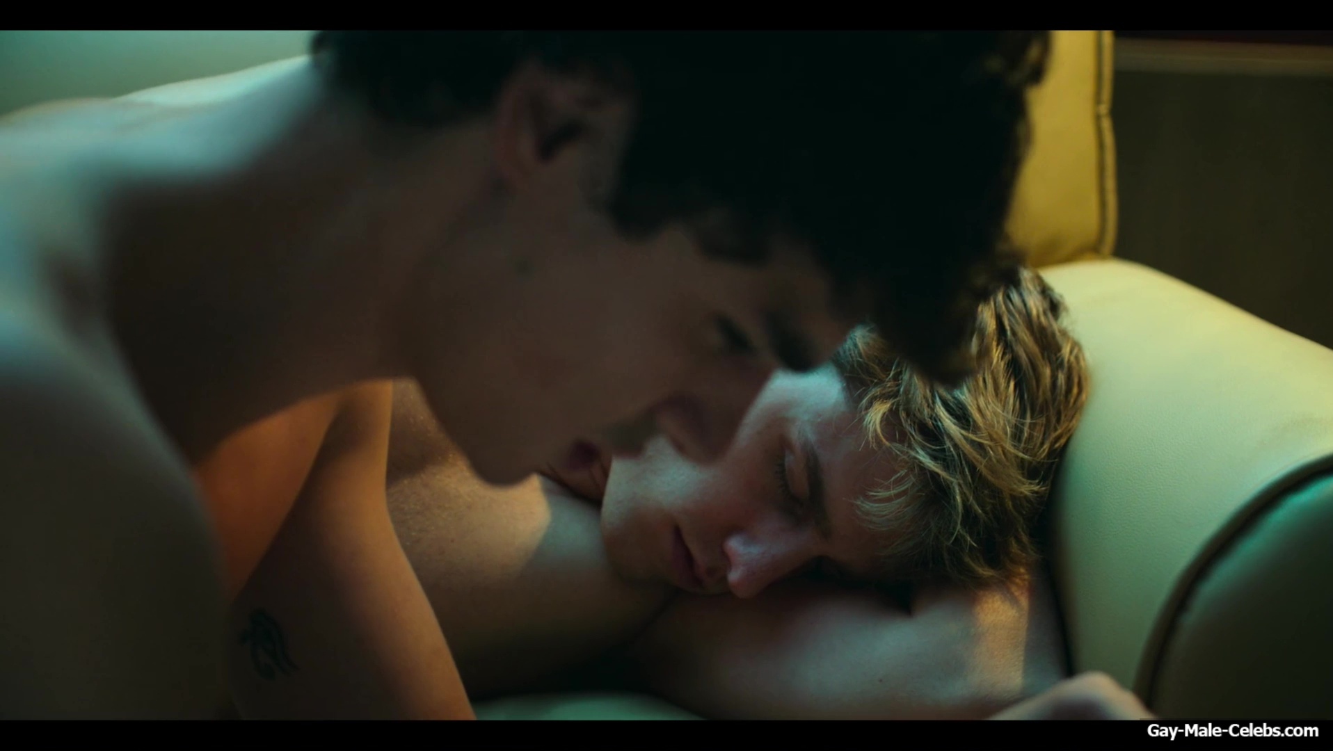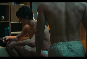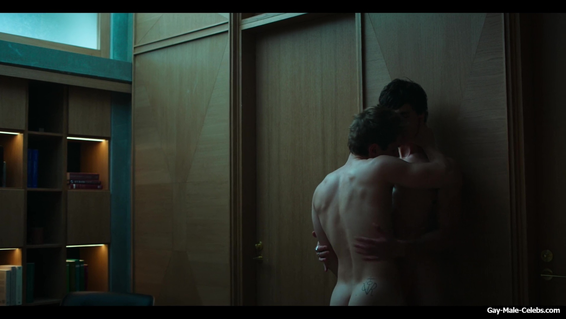 You can’t miss this hot scene with Nuno Gallego and Fernando Lindez from “Elite”! These two had a great time together. Shirtless Nuno Gallego pounced on Fernando and began covering his body with kisses. This hunk has an amazing body, just look at those pink nipples! And Nuno Gallego’s bare butt deserves special attention. Fernando Lindez doesn’t stay on the sidelines either and allows us to admire his pumped-up torso. And his impressive bulge is visible even through those white briefs.