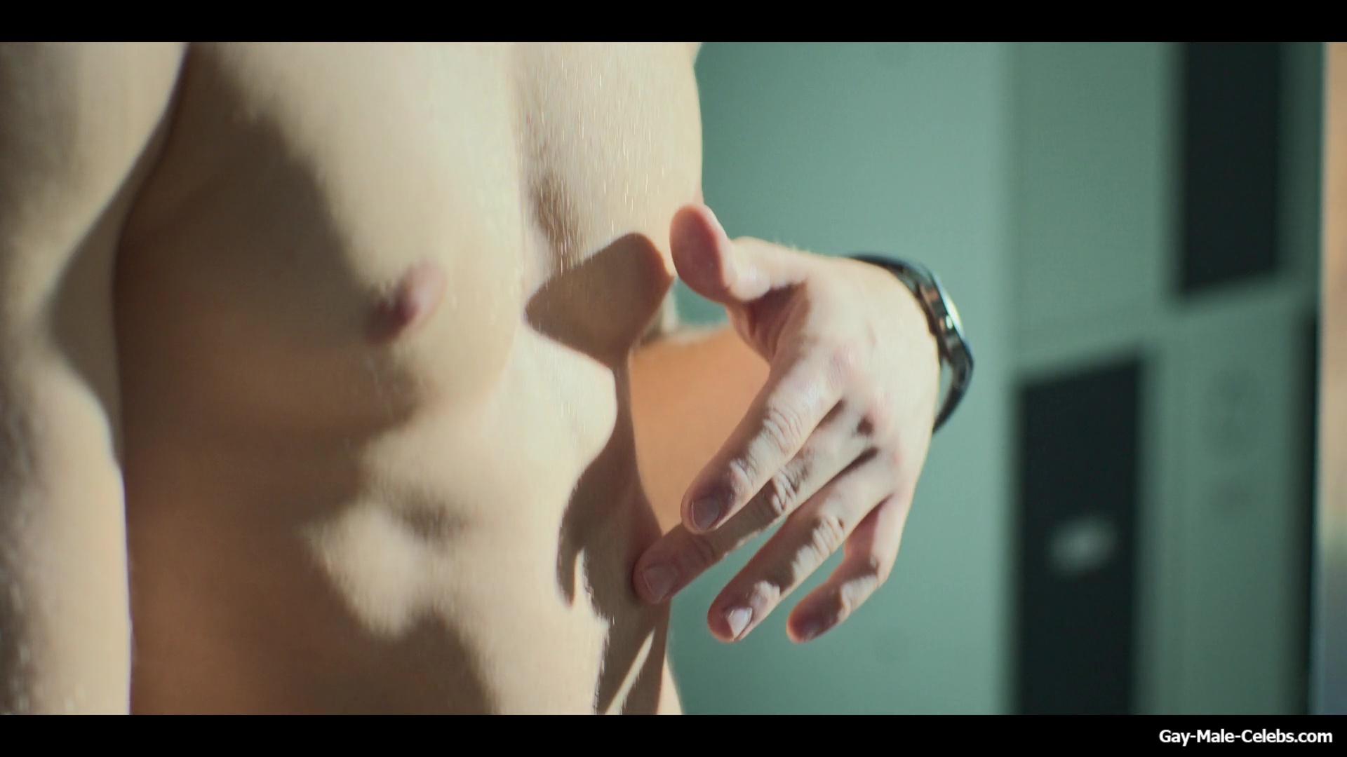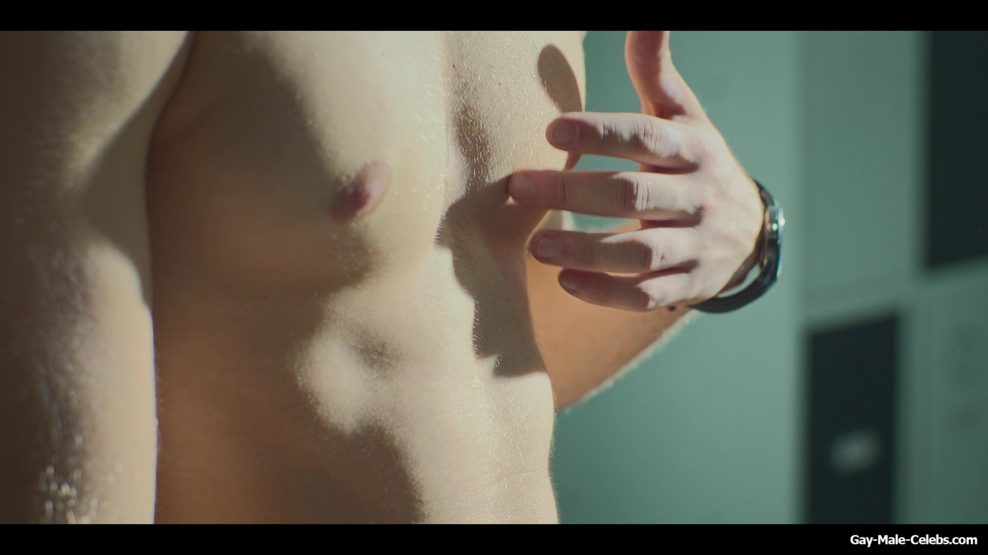Just look at this handsome guy – Nuno Gallego getting naked in “Elite”! Nuno is standing in the bathroom and getting ready for the day. But all we can see is his nude celeb torso. Fortunately, that’s not all, Nuno takes off his underwear and we get a lovely view of his firm butt.