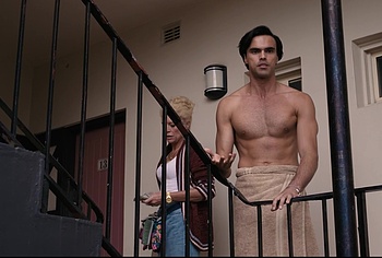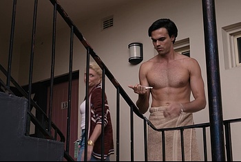 Don’t miss the hot shots of Patrick Parker naked in “Play Dirty”! This handsome guy wasn’t shy about stepping out onto the landing wearing only a towel. Thanks to this, we can marvel at Patrick Parker nude muscular torso. But luckily, he showed us something else. While he was having sex with a girl in the room, the man interrupted them. But despite this, we get a wonderful view of Patrick Parker naked celeb ass.