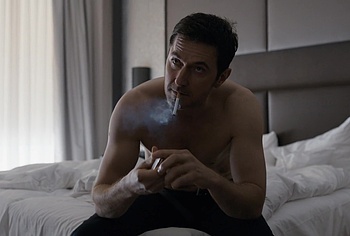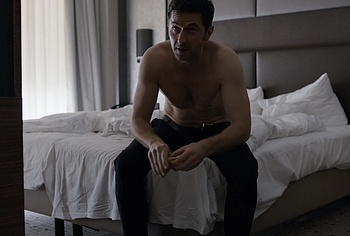 Richard Armitage demonstrates his stunning naked torso in “Berlin Station”. Richard is sitting on the bed waiting for a woman whom he will probably fuck hard later. He is wearing only jeans, giving us a wonderful view of his upper body. The way he sits and smokes on the bed will turn anyone on.
