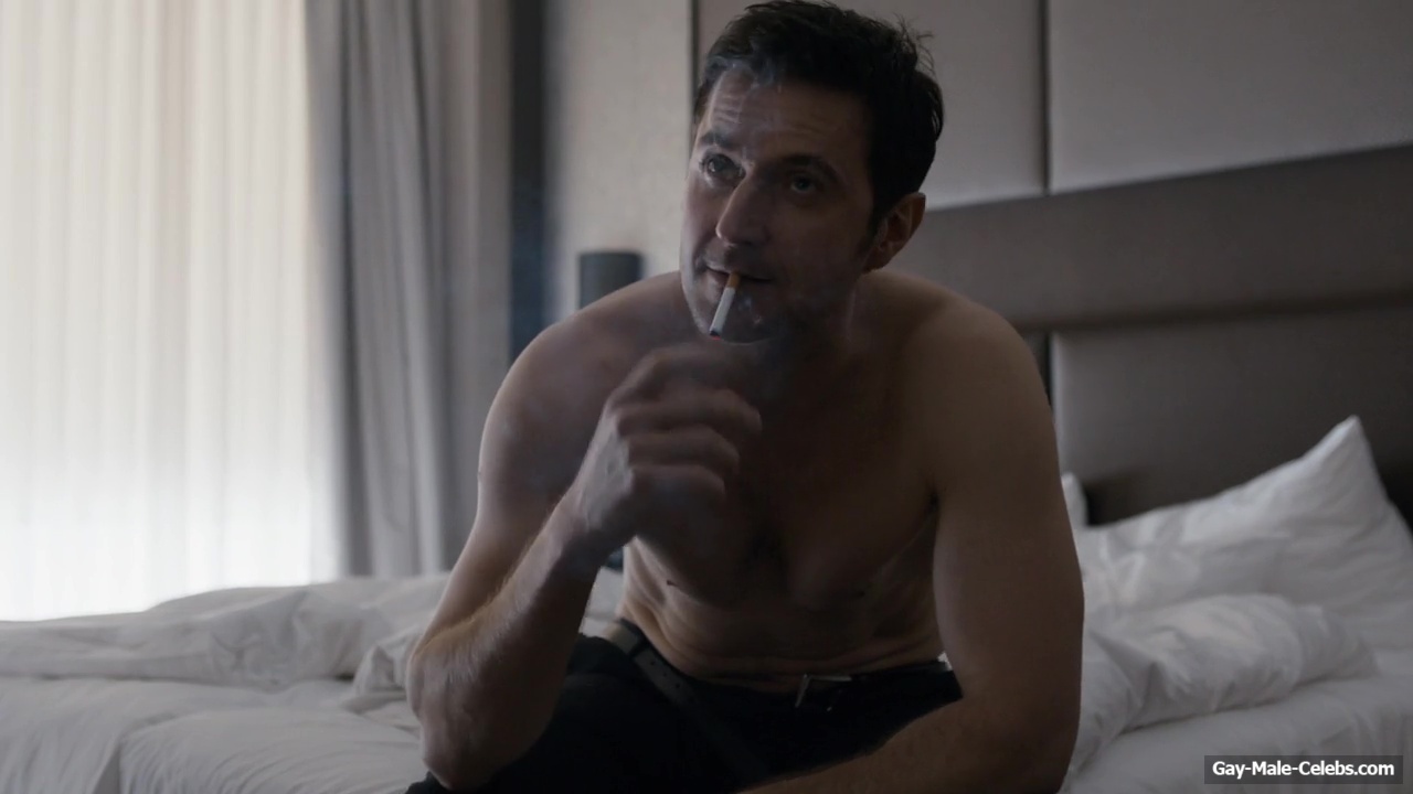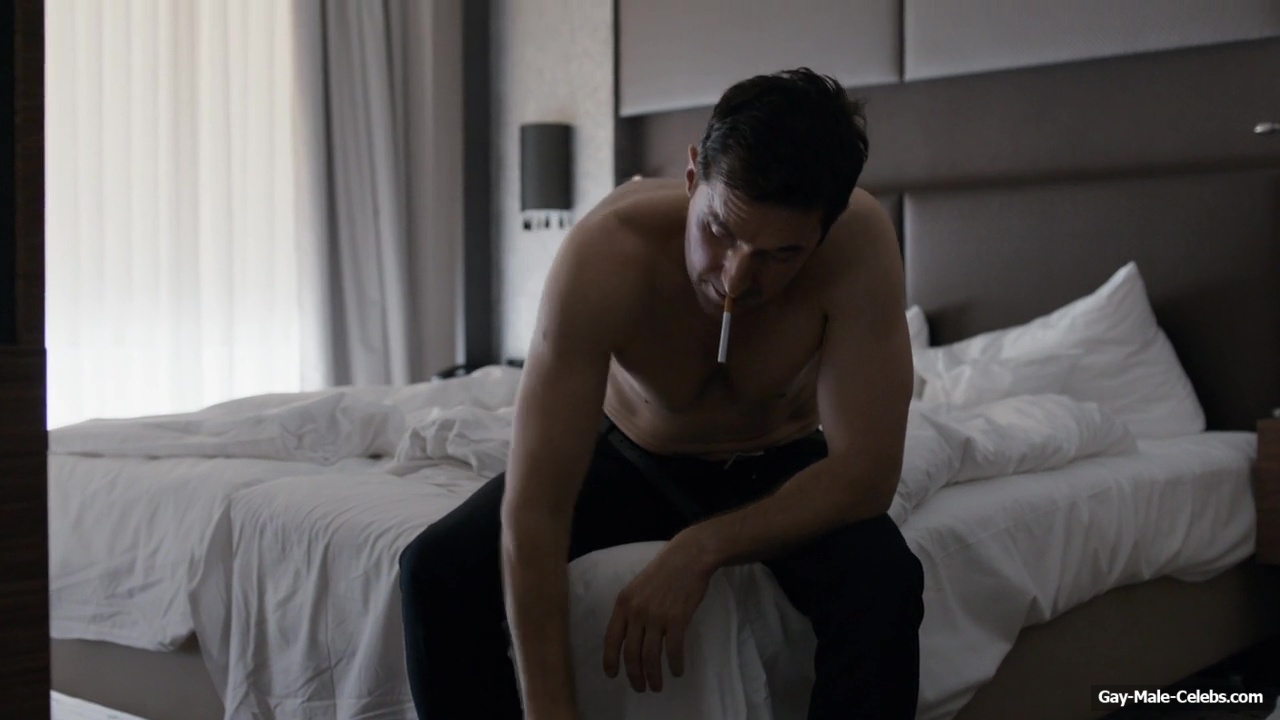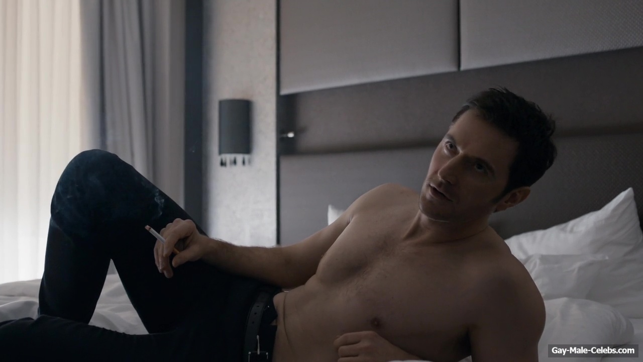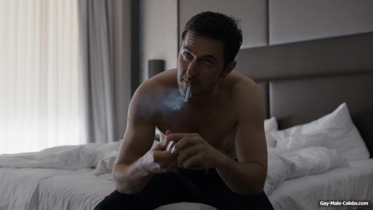 Richard Armitage demonstrates his stunning naked torso in “Berlin Station”. Richard is sitting on the bed waiting for a woman whom he will probably fuck hard later. He is wearing only jeans, giving us a wonderful view of his upper body. The way he sits and smokes on the bed will turn anyone on.