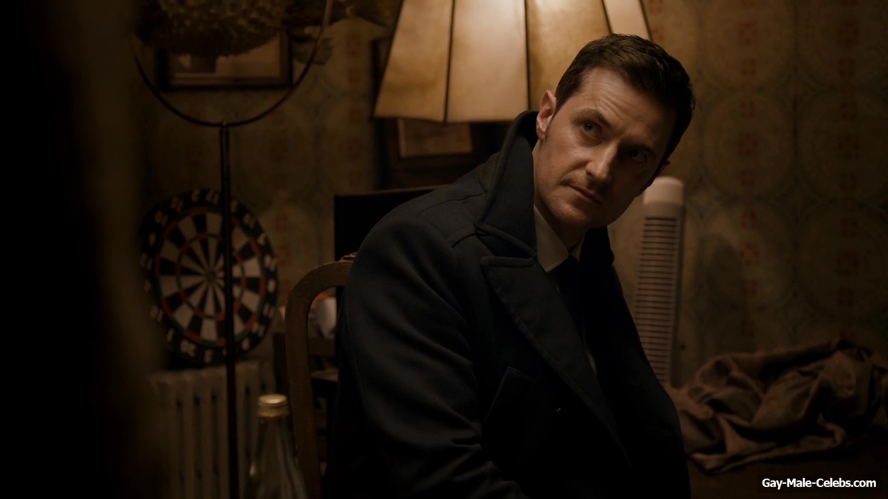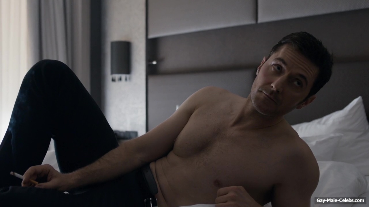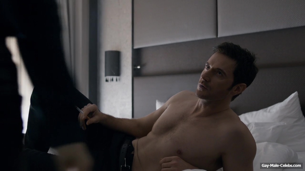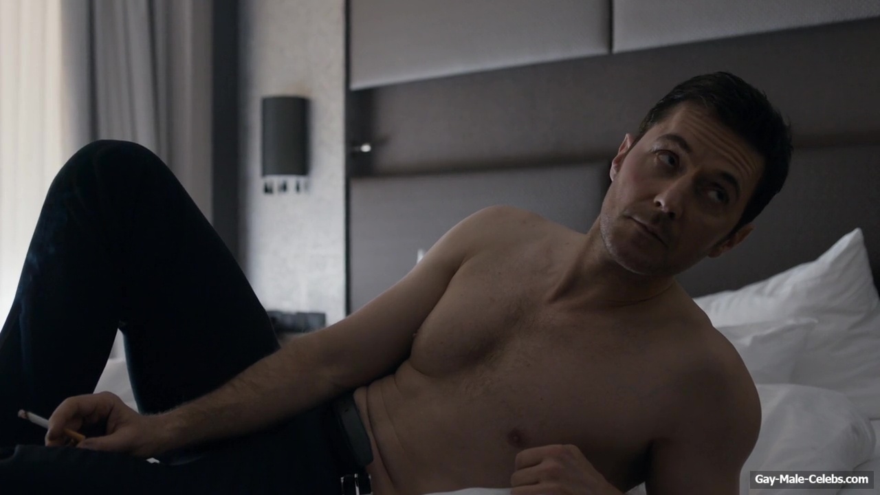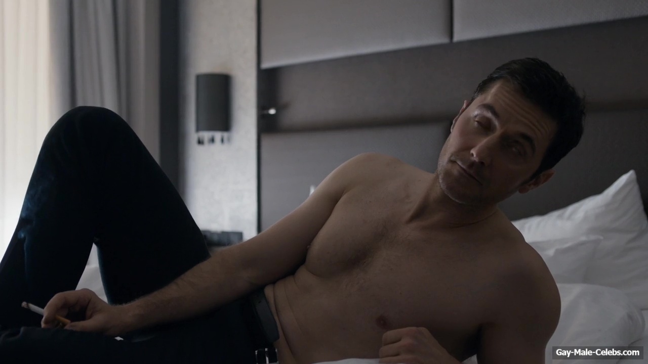 Richard Armitage demonstrates his stunning naked torso in “Berlin Station”. Richard is sitting on the bed waiting for a woman whom he will probably fuck hard later. He is wearing only jeans, giving us a wonderful view of his upper body. The way he sits and smokes on the bed will turn anyone on.