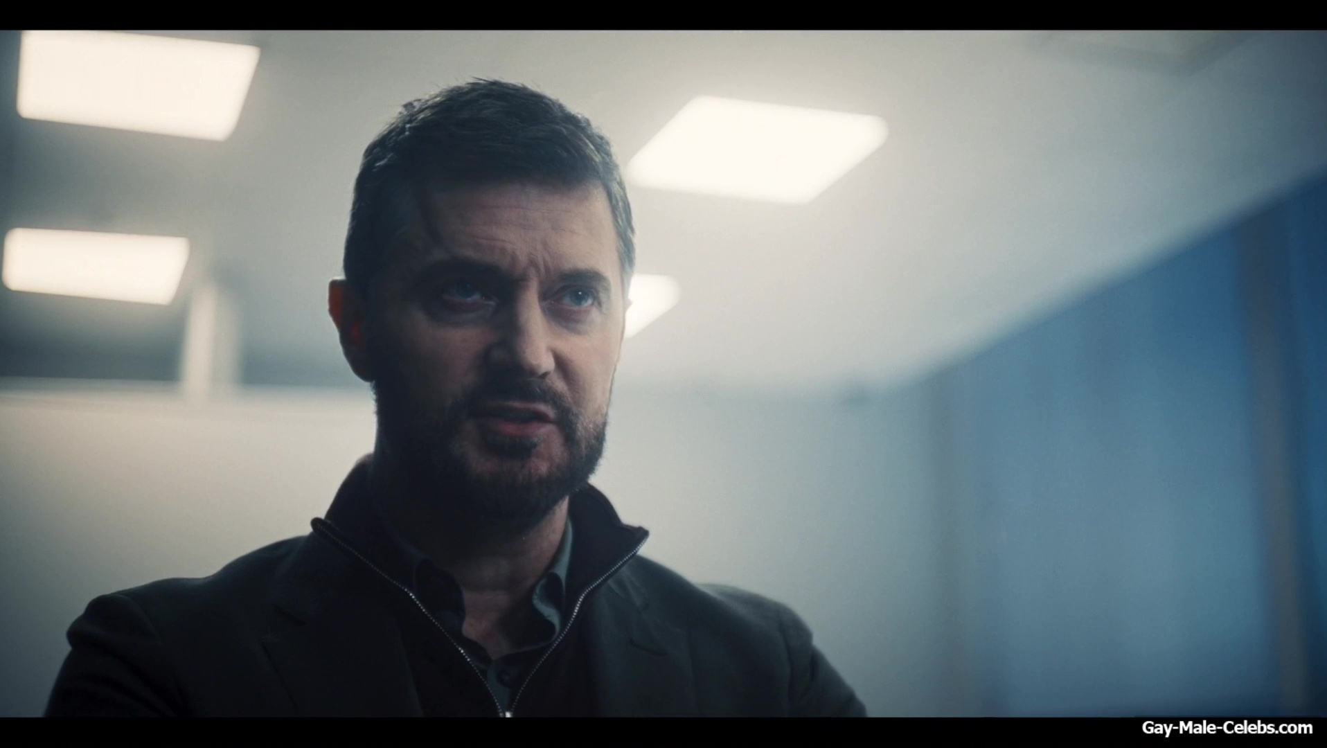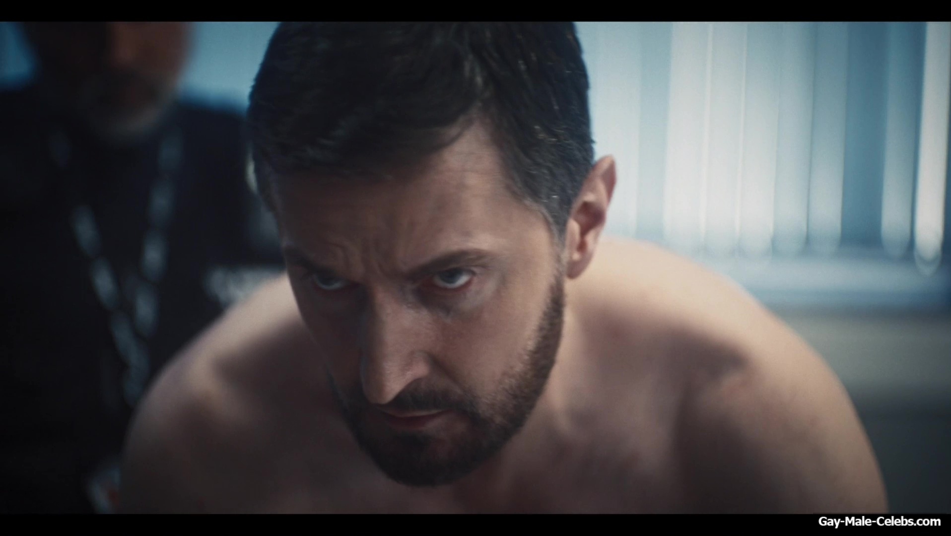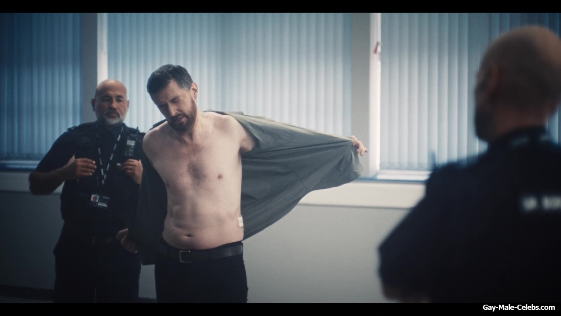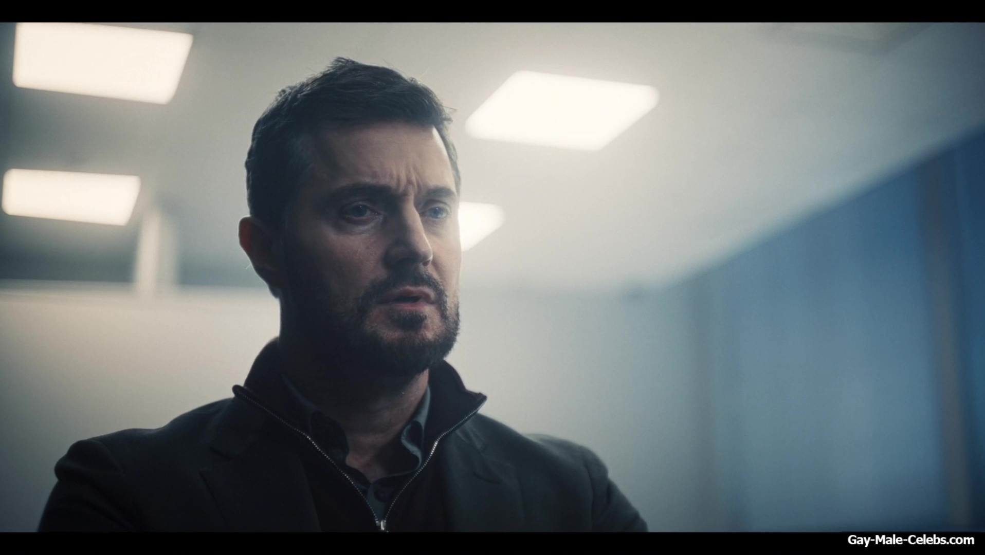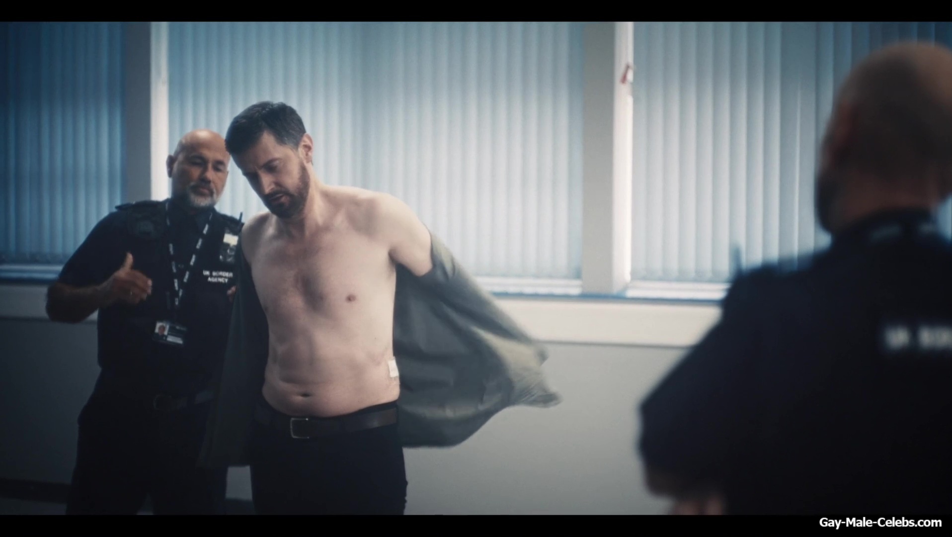 “Red Eye” is a British thriller that is worth watching not only for its gripping plot, but also for its interesting scenes featuring Richard Armitage. This time, he is in a police room, and the police have forced him to undress so they can examine him. While Richard stands there wearing only black boxer shorts, we can enjoy his nude torso.