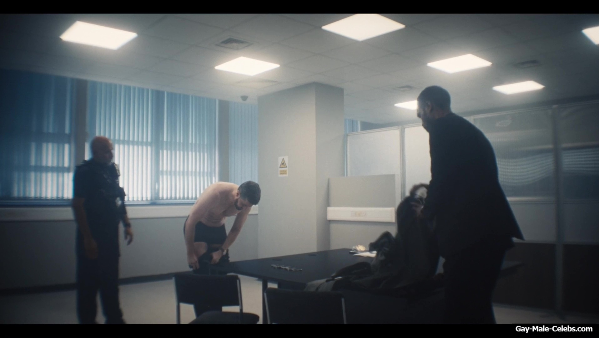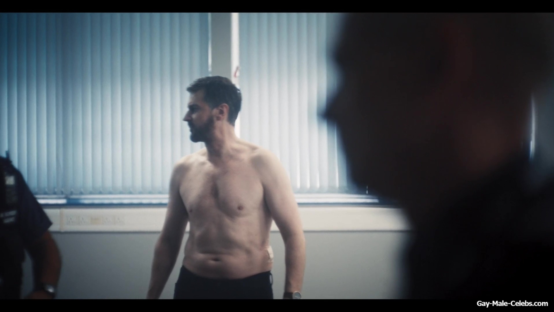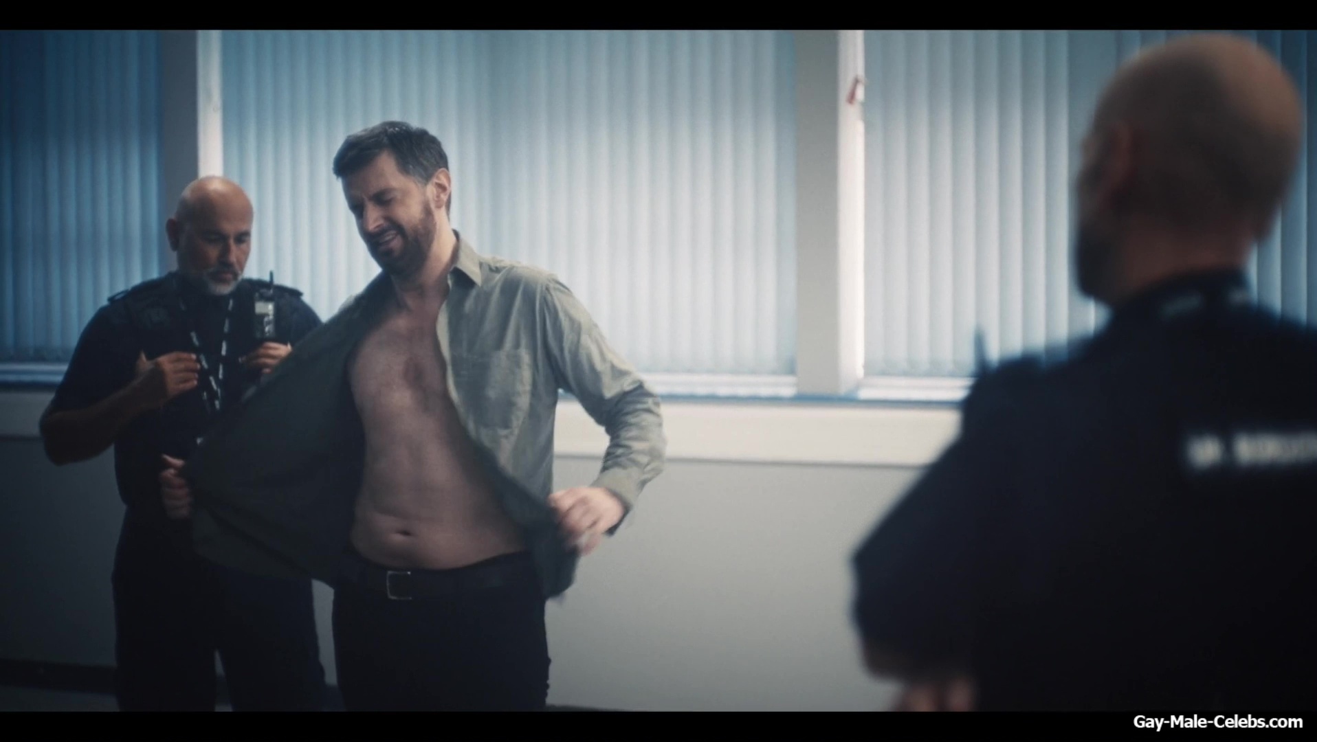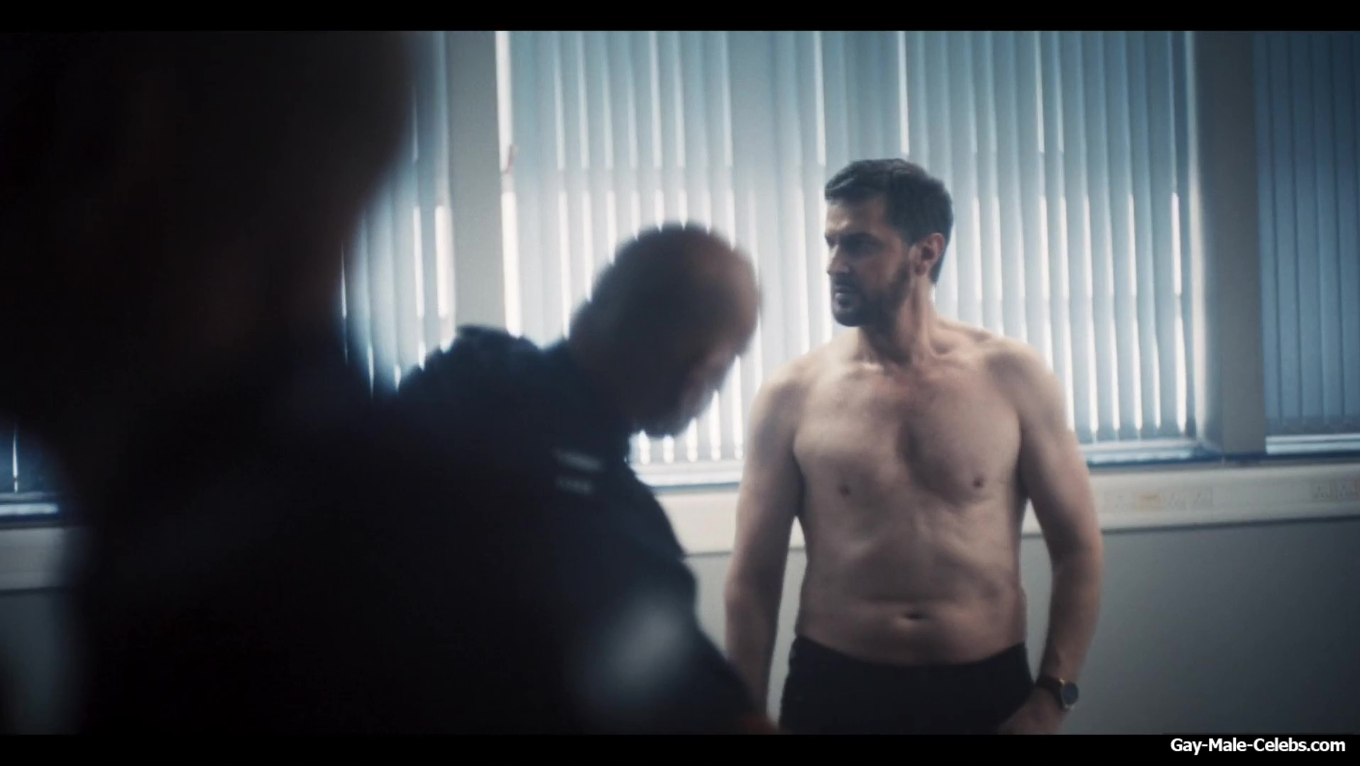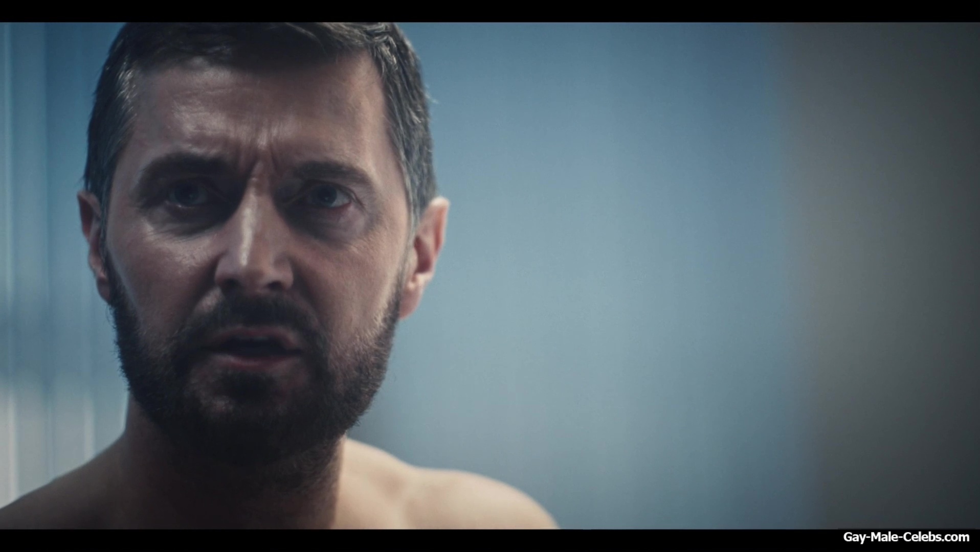 “Red Eye” is a British thriller that is worth watching not only for its gripping plot, but also for its interesting scenes featuring Richard Armitage. This time, he is in a police room, and the police have forced him to undress so they can examine him. While Richard stands there wearing only black boxer shorts, we can enjoy his nude torso.