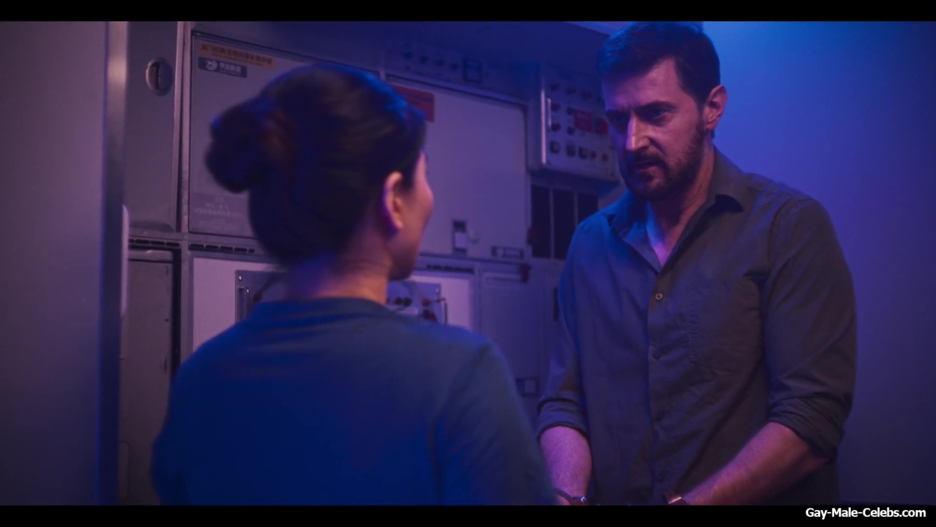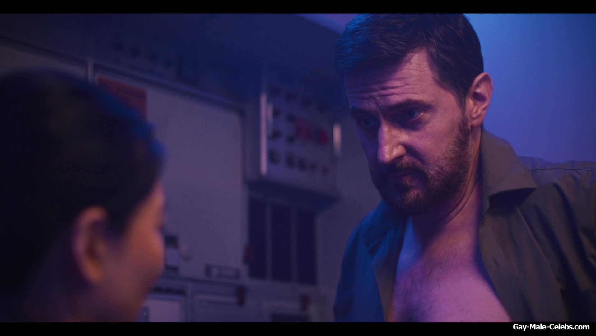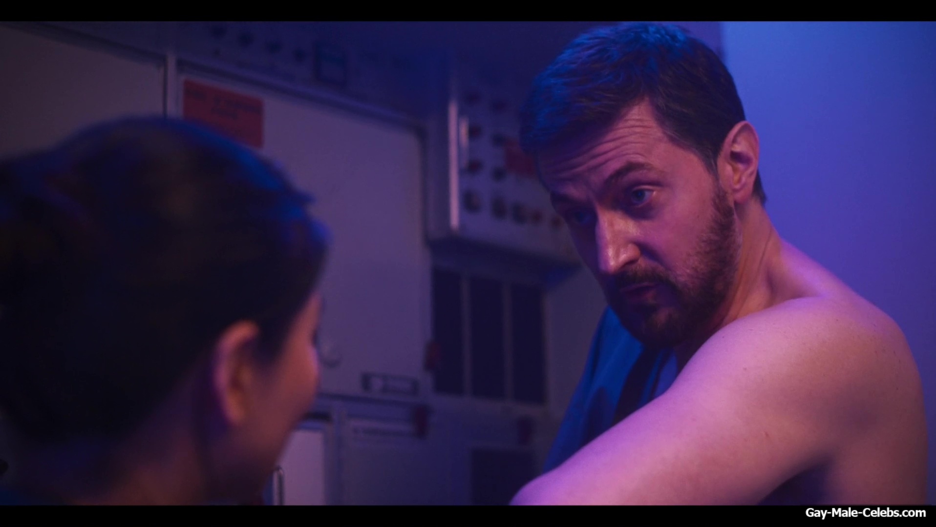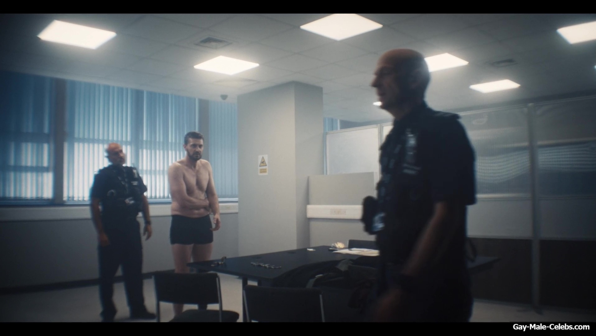 “Red Eye” is a British thriller that is worth watching not only for its gripping plot, but also for its interesting scenes featuring Richard Armitage. This time, he is in a police room, and the police have forced him to undress so they can examine him. While Richard stands there wearing only black boxer shorts, we can enjoy his nude torso.