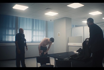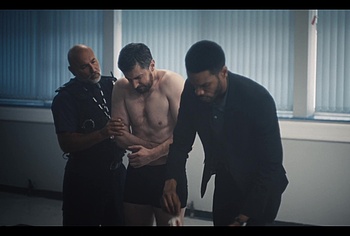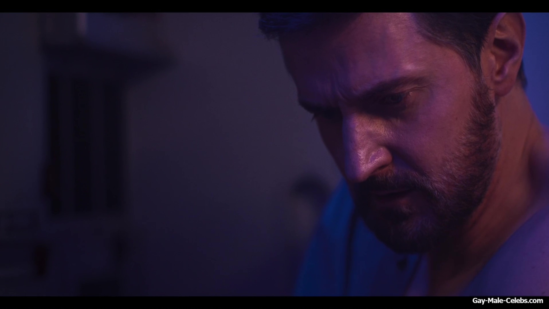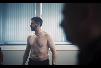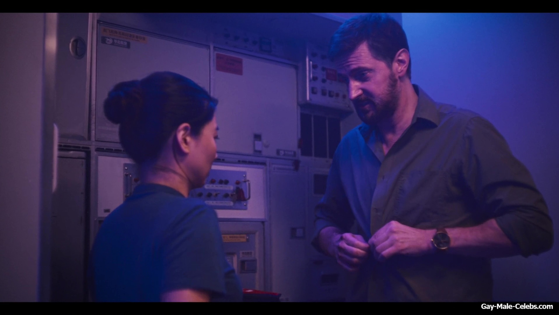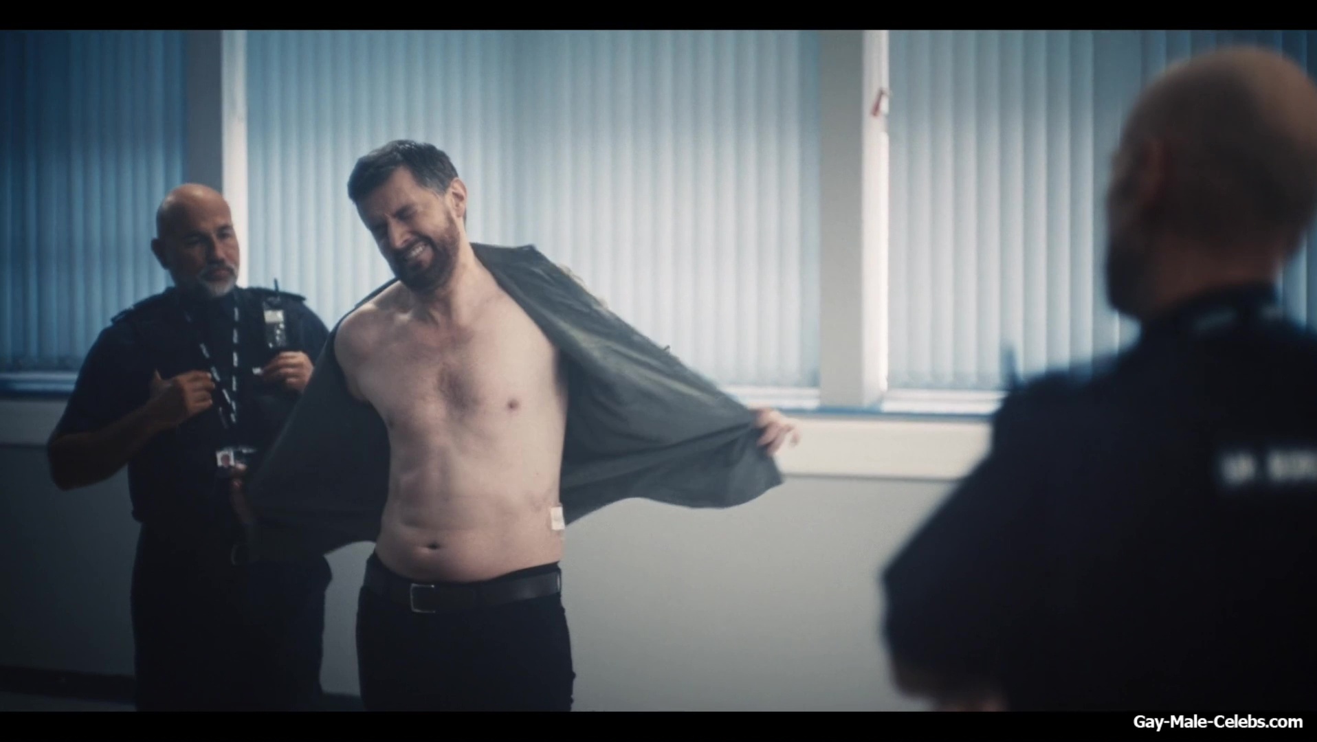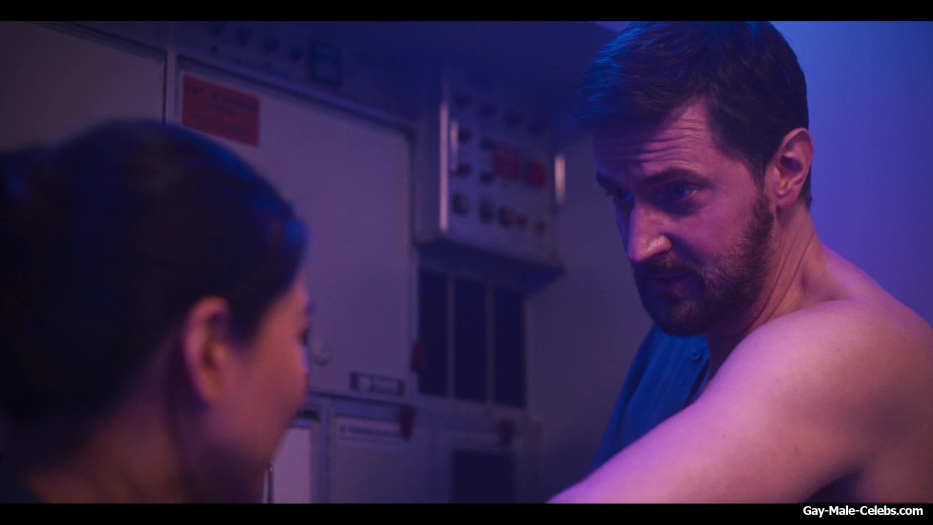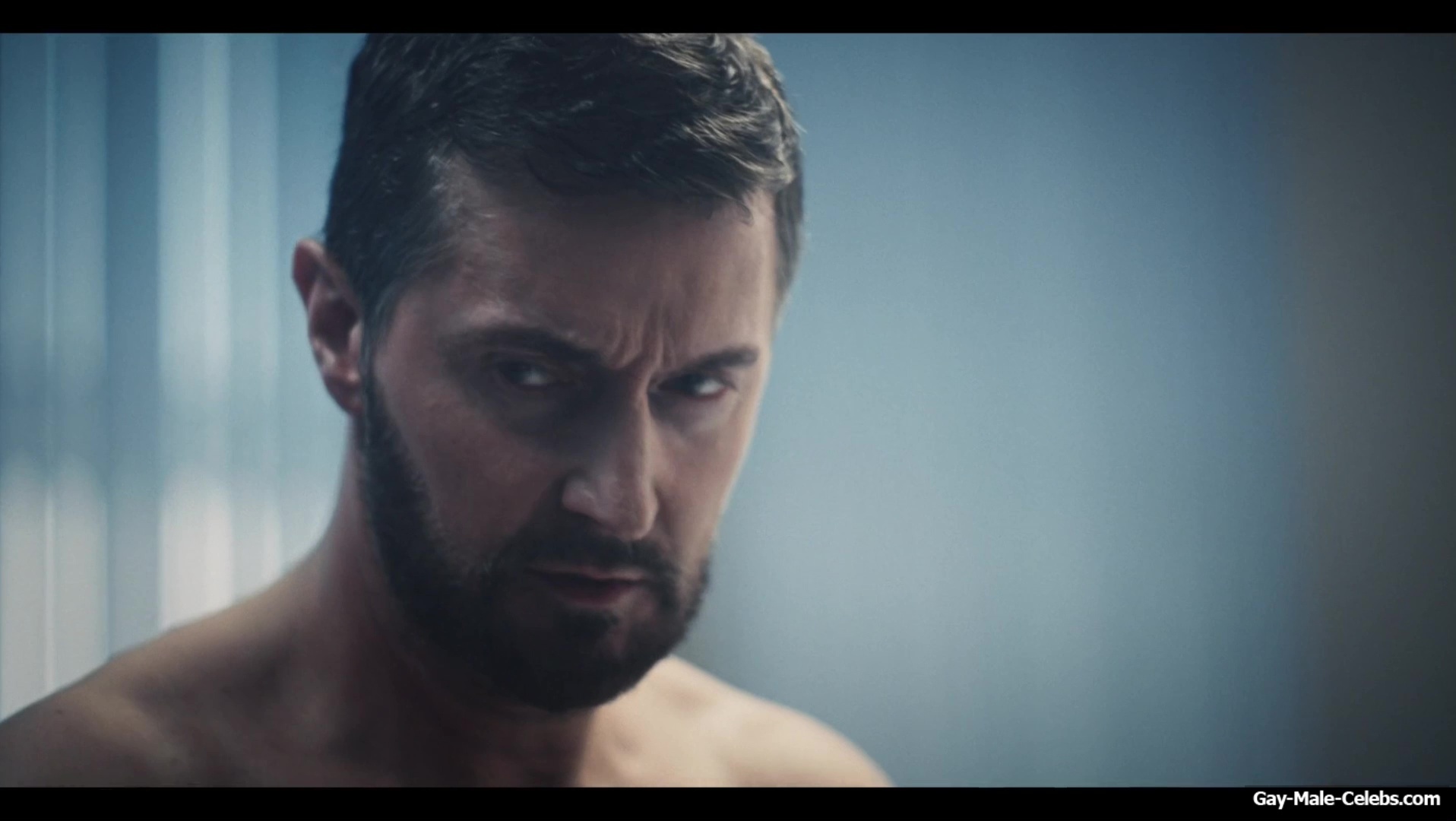 “Red Eye” is a British thriller that is worth watching not only for its gripping plot, but also for its interesting scenes featuring Richard Armitage. This time, he is in a police room, and the police have forced him to undress so they can examine him. While Richard stands there wearing only black boxer shorts, we can enjoy his nude torso.