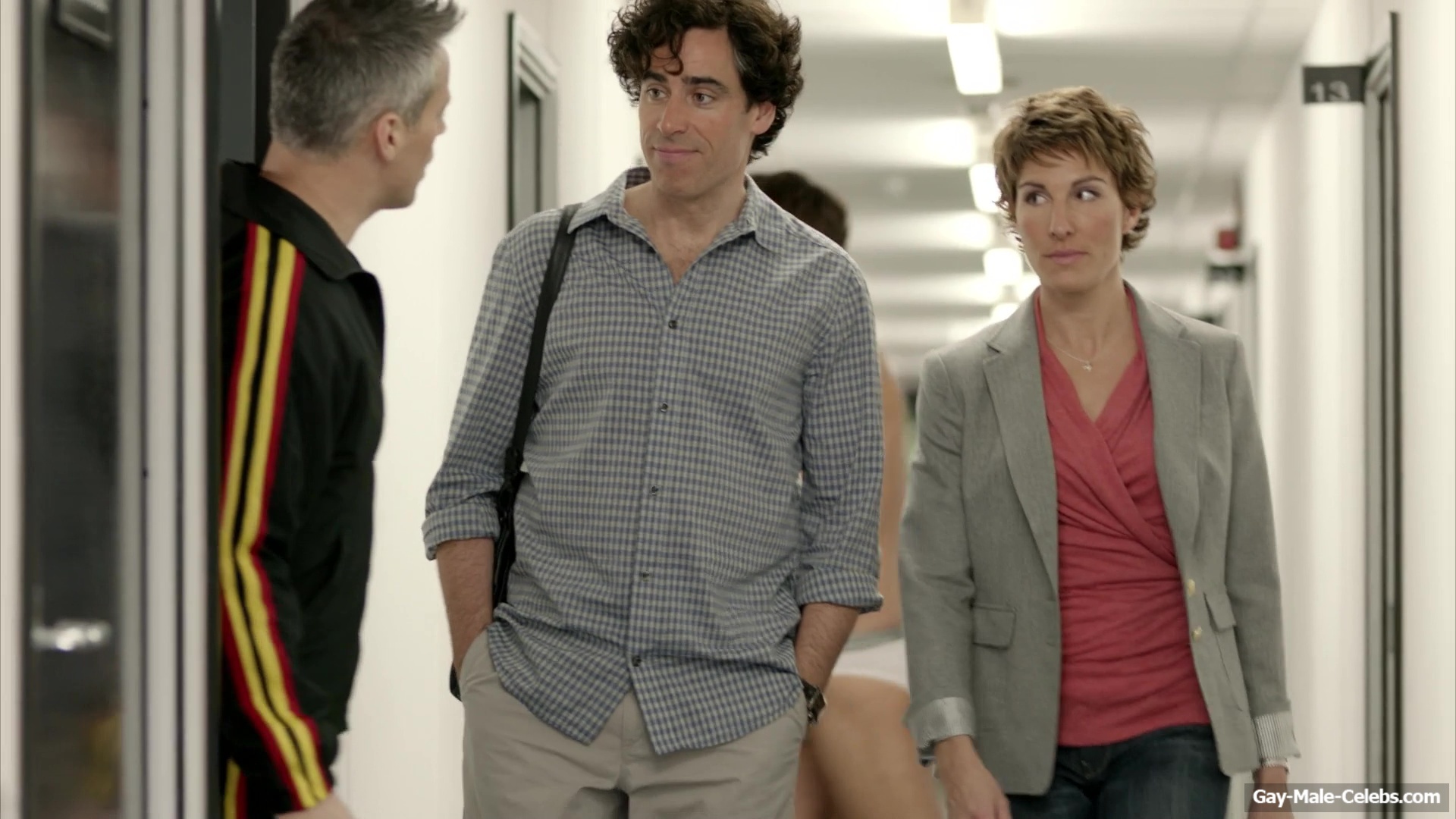 Check out how Sam Palladio got naked in “Episodes”. This handsome guy was standing in the hallway wearing only his underwear. He wasn’t embarrassed that he wasn’t alone there. You can see how the woman stared at Sam, and we completely understand her. The bulge of Sam Palladio’s penis is so impressive that we can only imagine what a juicy penis this stud has.
