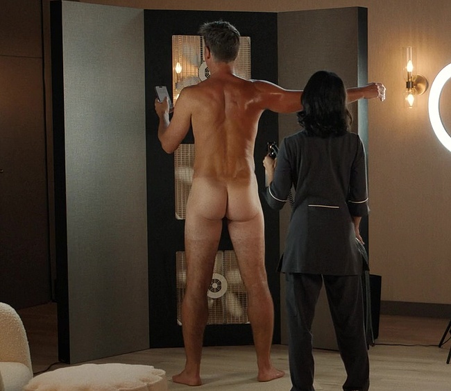 Another scene with Jordan Firstman nude in “Spartacus House Of Ashur”. This handsome guy decided to lie down and relax in the jacuzzi, and everything would have been fine, if his friend hadn’t come. He ruined Nick’s mood, and Nick left the jacuzzi. But there is something good here too, namely Nick E. Tarabay naked butt, which is right in front of us. Just look at how tight it is!
