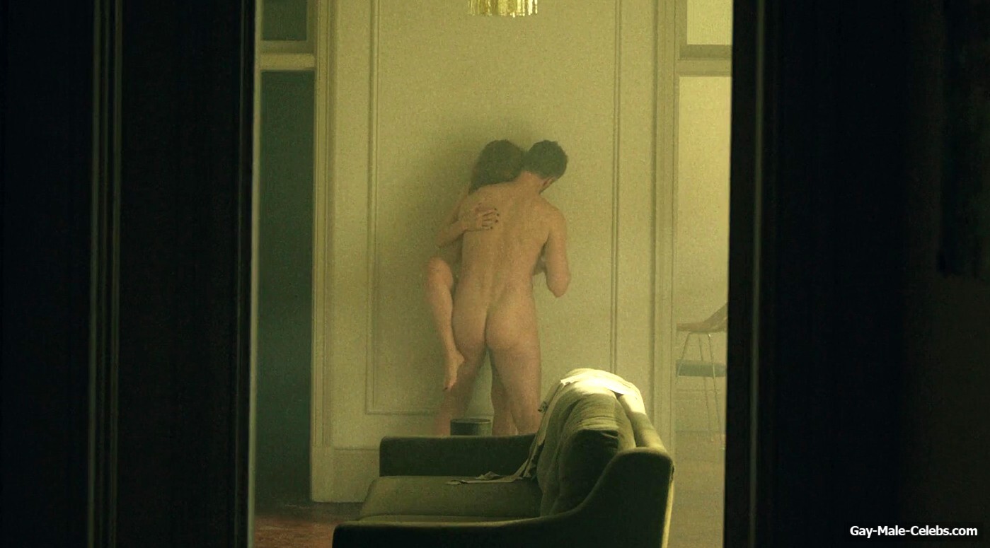 Matthew Daddario shows off his sexy body in “Why Women Kill”. First he had sex with a girl and after a good fuck Matthew went to shower. He was interrupted by a woman in black and at this moment we can admire his ripped and hairy torso. After their conversation Matthew goes outside completely naked. Although his dick is covered, his tight celeb ass is on full display.