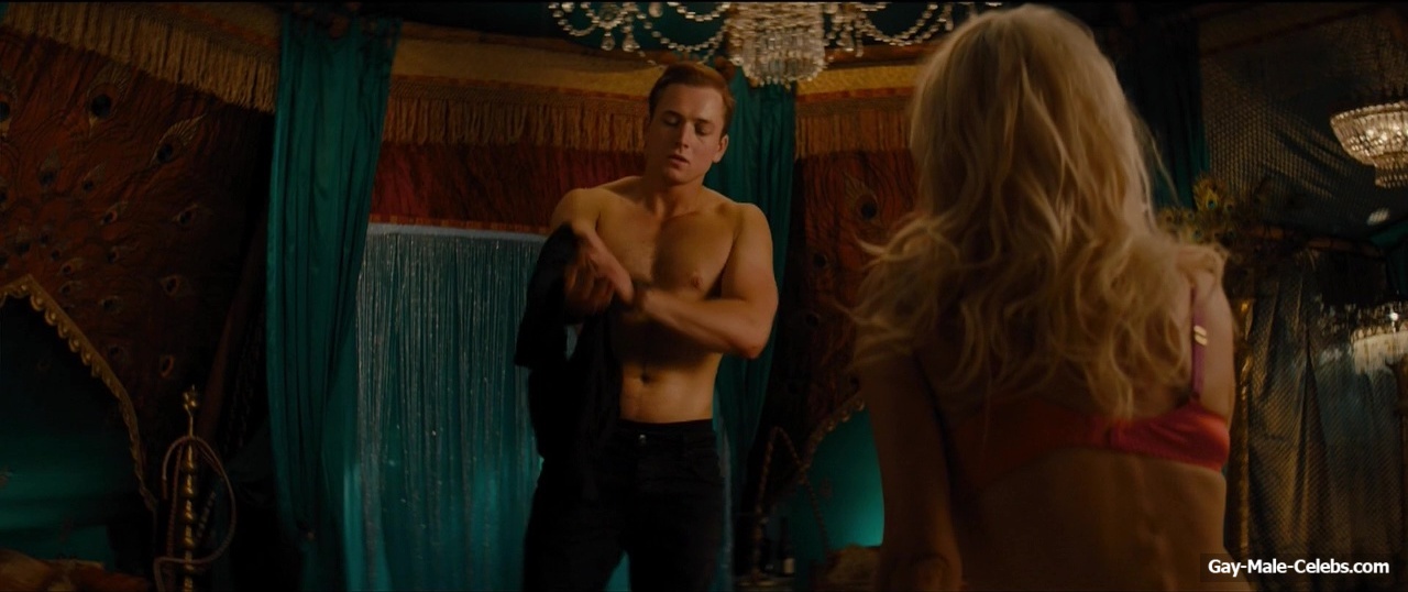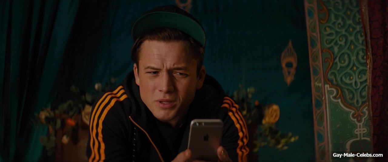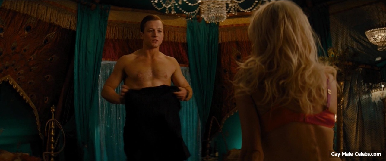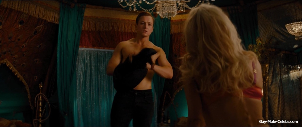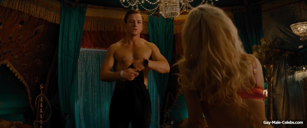 Taron Egerton reveals his naked torso in “Kingsman: The Golden Circle”. After hot sex, Taron started to get dressed. But there was still a moment when we could admire his toned body. This handsome guy spends a lot of time in the gym to maintain such an impressive physique.