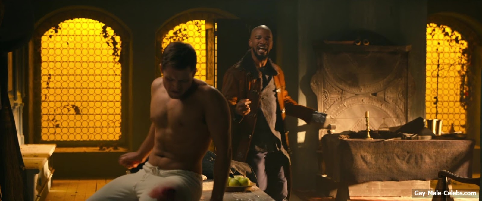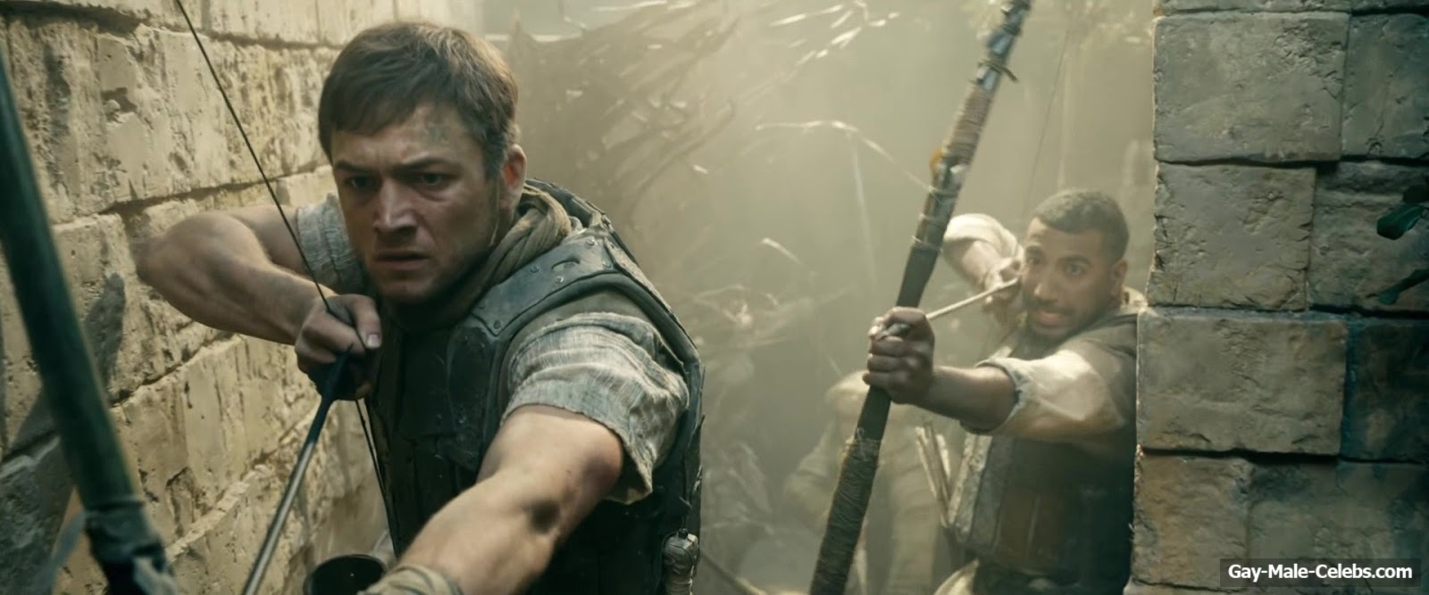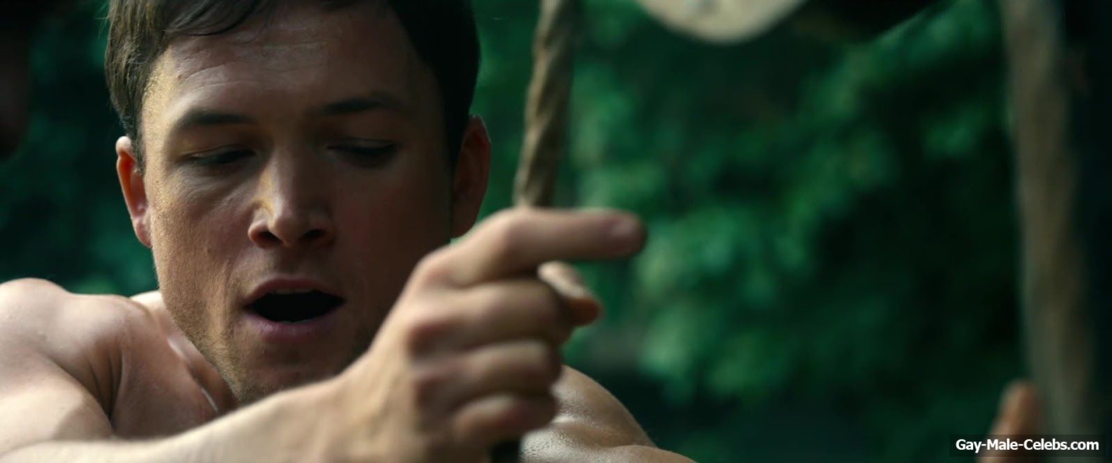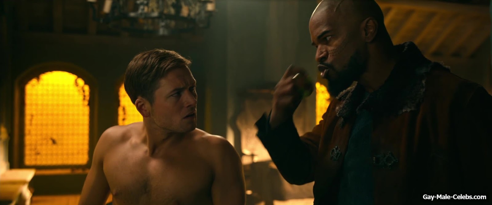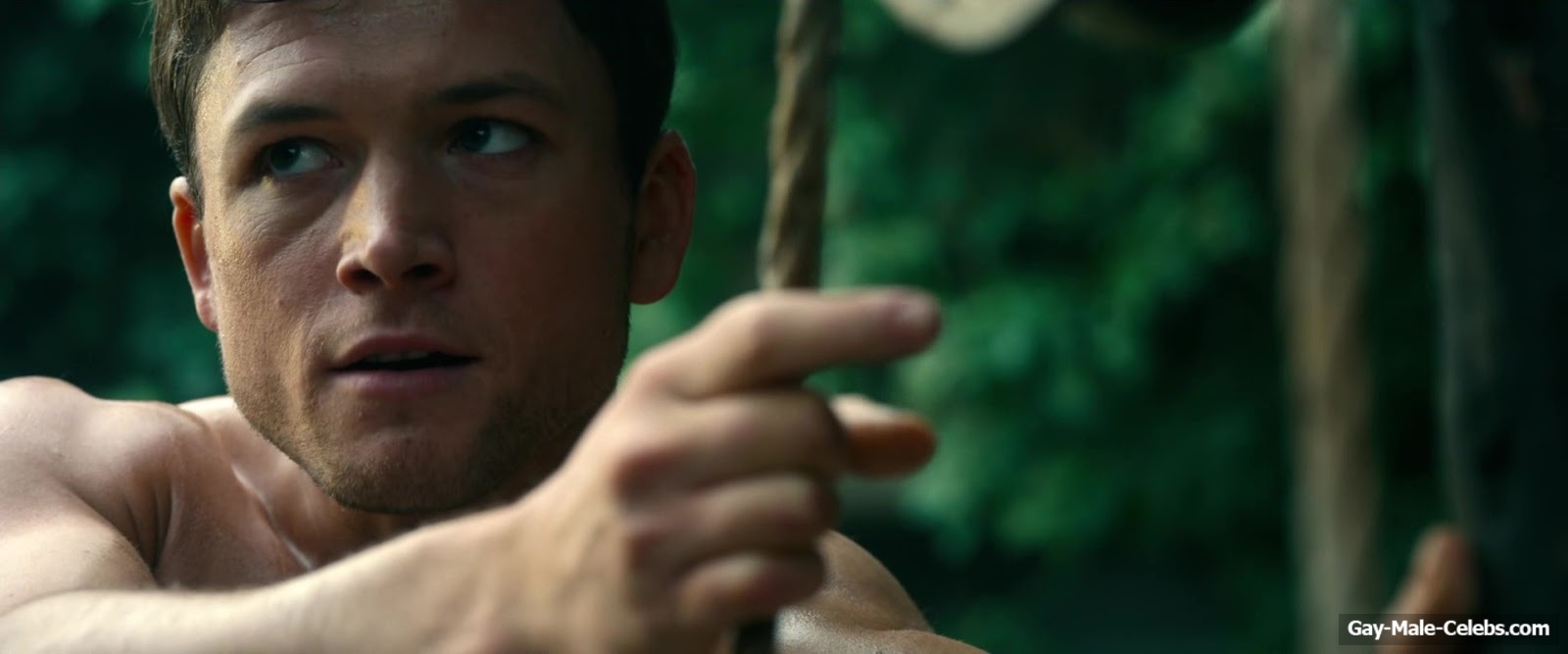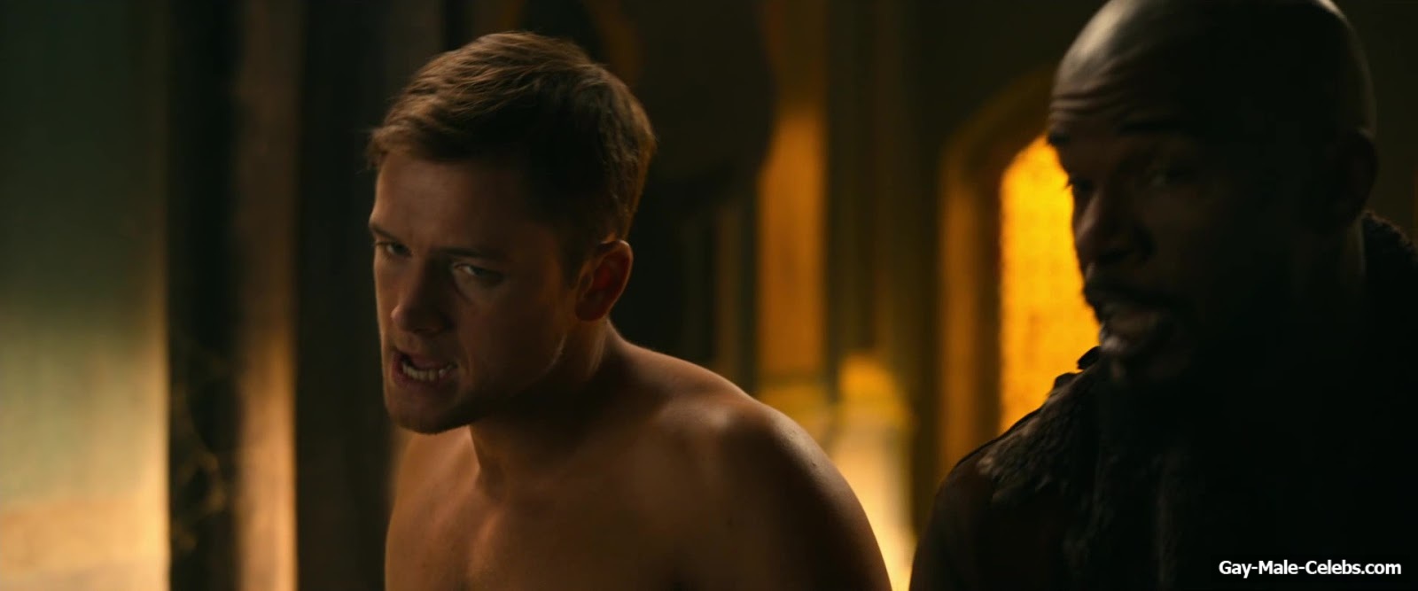 Taron Egerton revealed his naked torso in “Robin Hood”. Taron sat wounded, wearing only white pants, giving us a beautiful view of his bare upper body. It’s a shame he didn’t take off his pants, because we’re sure that Taron Egerton’s butt is a sight to behold.