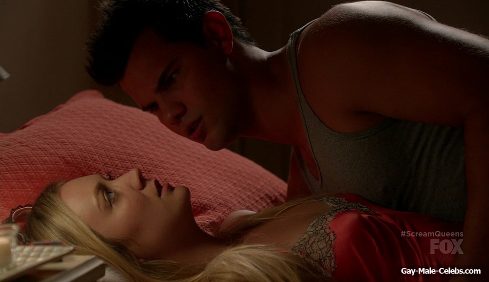 Taylor Lautner is trying to have a sexy moment with a hot blonde babe but this girl manages somehow to always avoid Taylor and his sexy lips. If we were on that girls position no R&B or any song would distract us from his hot brown eyes and his cute hair. Take a look at his muscular shoulders and his sexy back and how can you possibly say no?