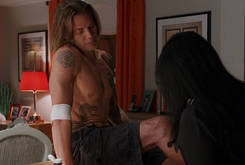 You definitely can’t miss such beauty! Shirtless Timothy Olyphant gave us the opportunity to be captivated by his muscular body in “The Mindy Project”. While the girl was treating this handsome guy’s leg, all we could focus on was his toned celebrity torso. You have to agree that these tattoos only add sexiness.