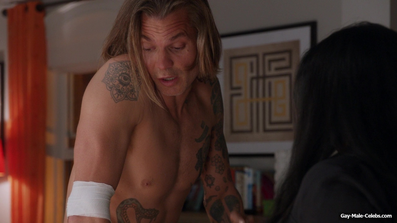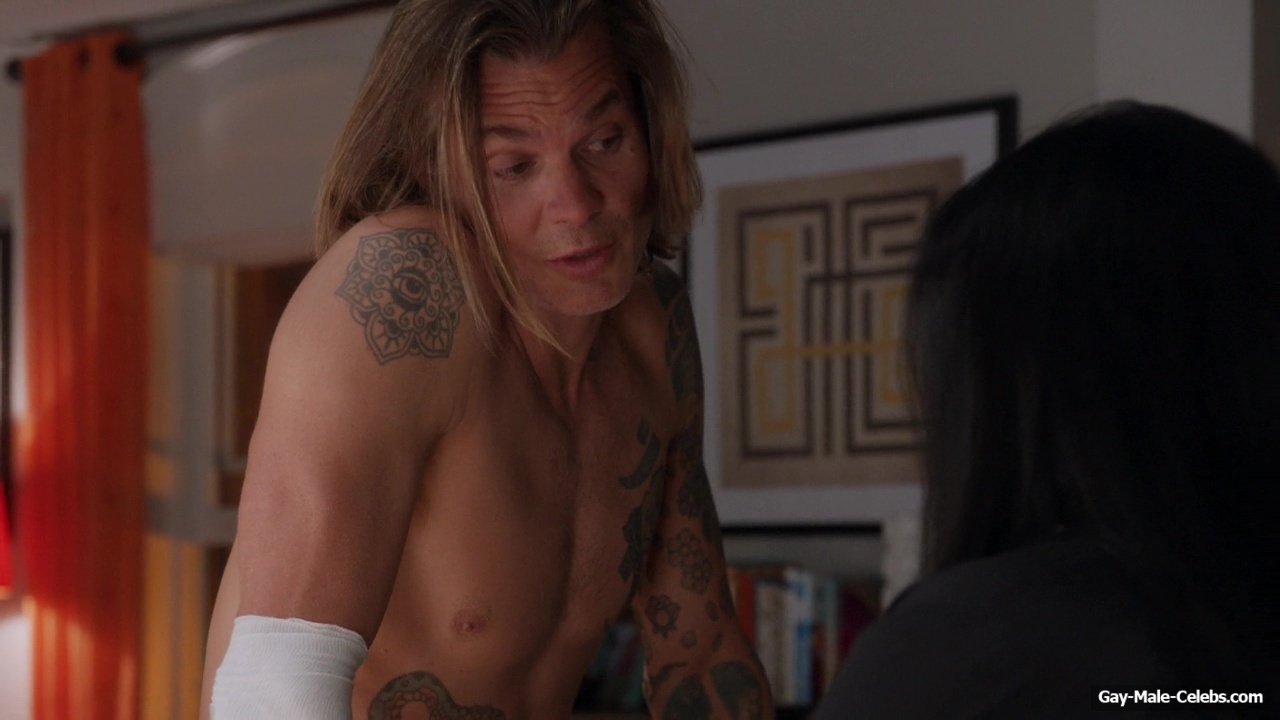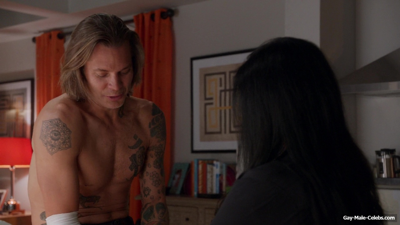 You definitely can’t miss such beauty! Shirtless Timothy Olyphant gave us the opportunity to be captivated by his muscular body in “The Mindy Project”. While the girl was treating this handsome guy’s leg, all we could focus on was his toned celebrity torso. You have to agree that these tattoos only add sexiness.