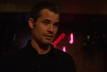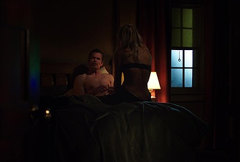 Timothy Olyphant shows off his nude celeb torso in “Justified”. Timothy lies on the bed with a girl. The dim lighting only adds to the sexiness of this scene. The girl probably wanted to feel Timothy Olyphant’s cock inside her, but unfortunately he refused her, and we can’t enjoy their passionate sex.