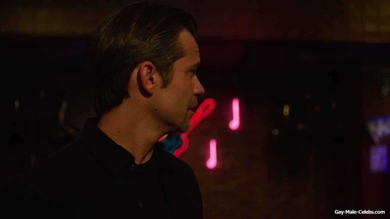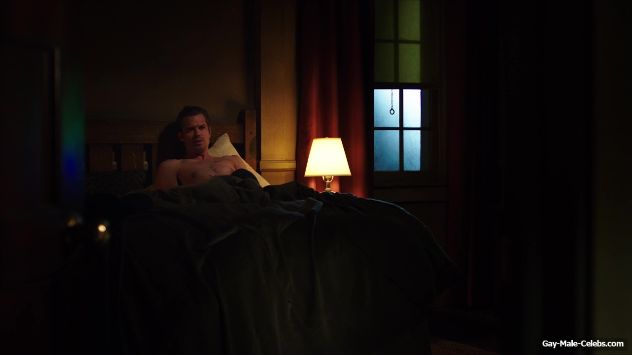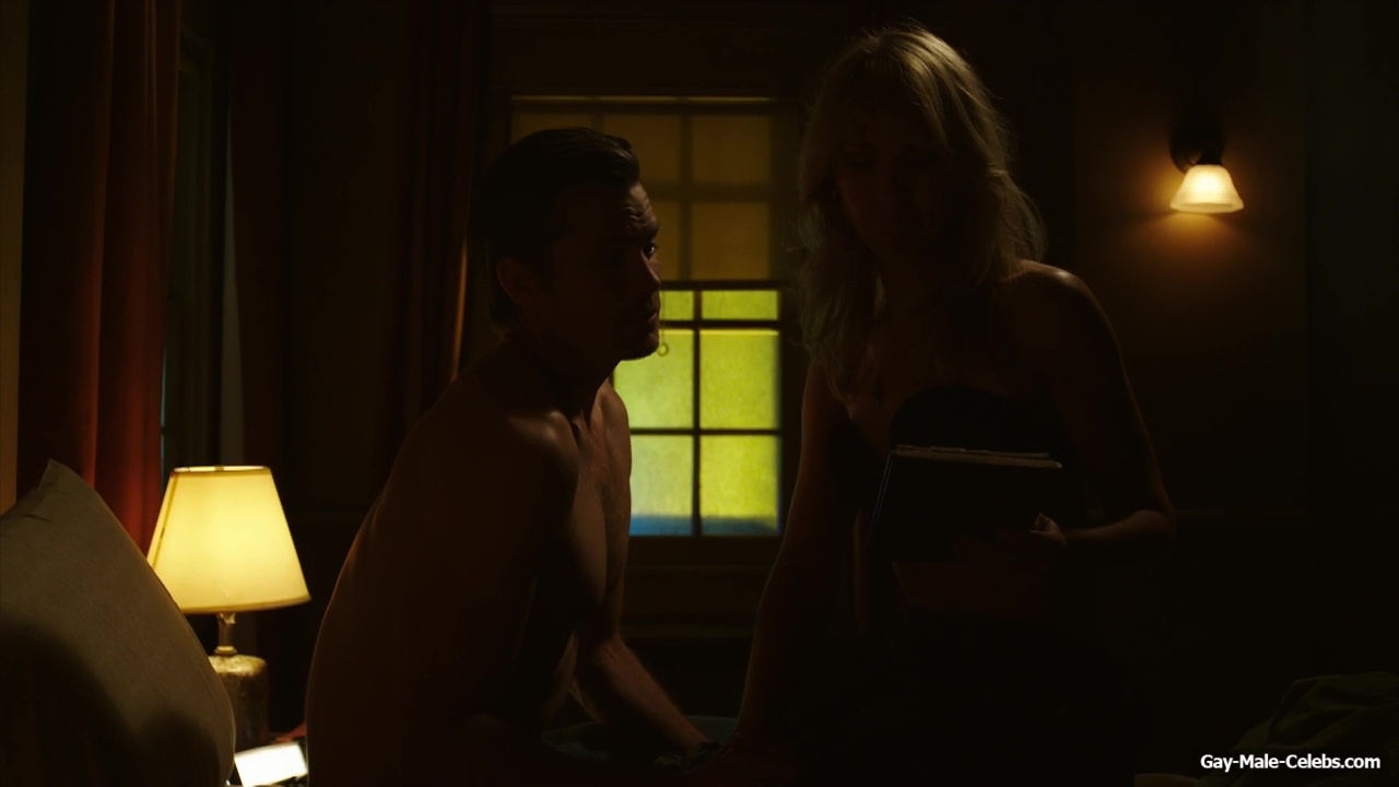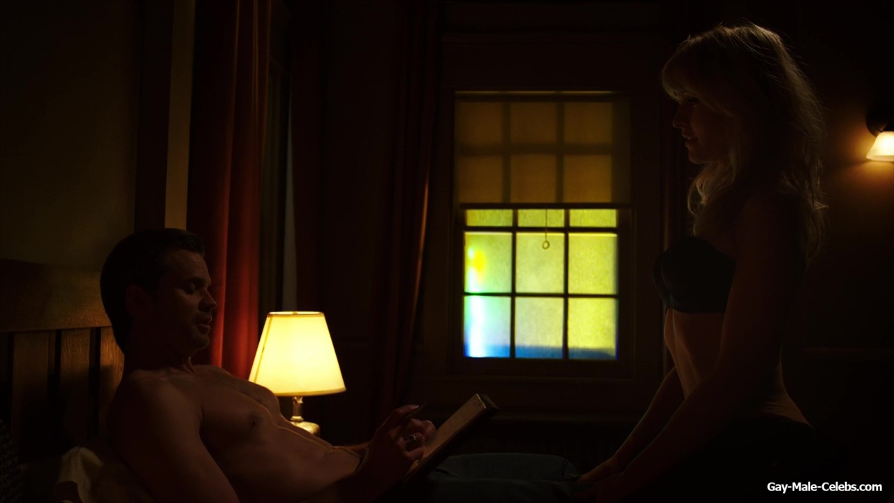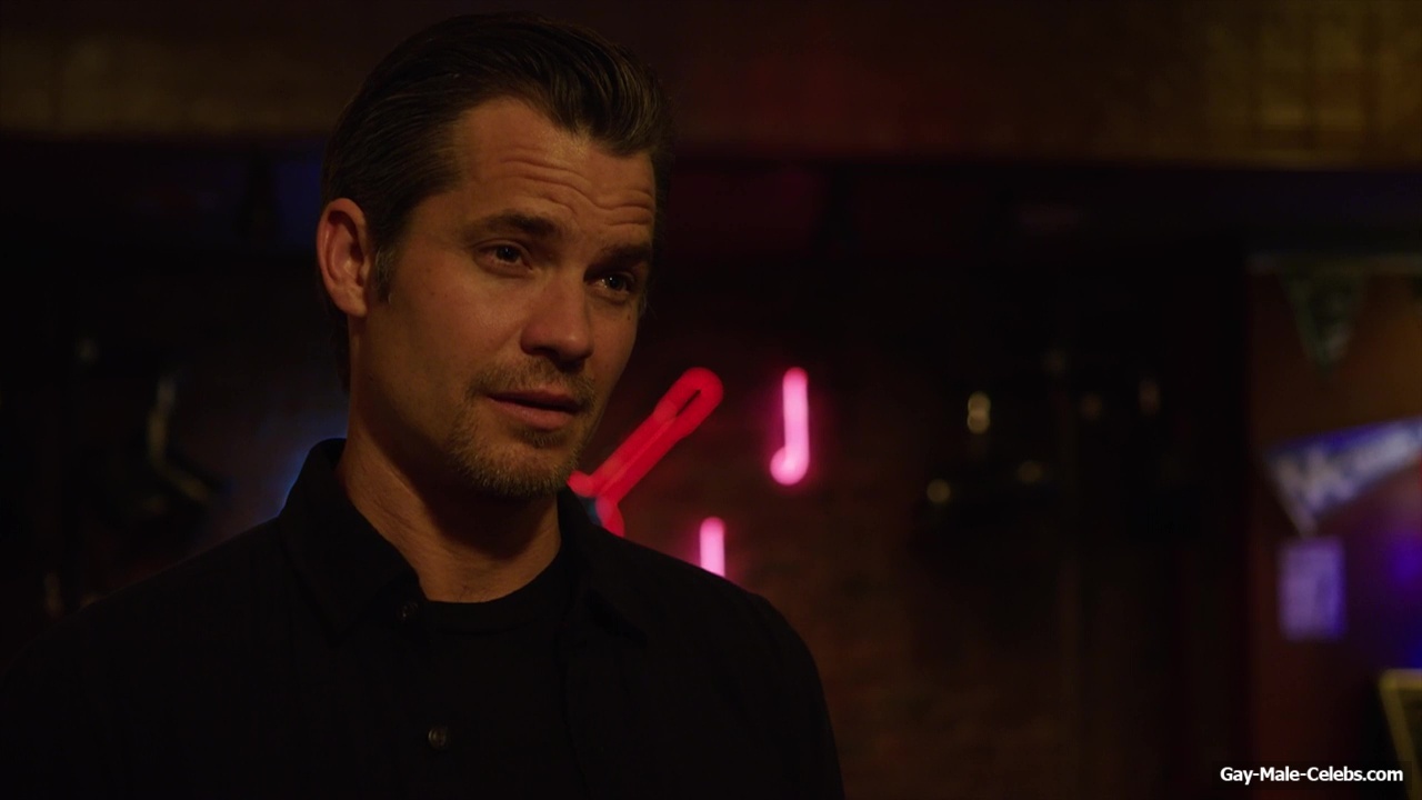 Timothy Olyphant shows off his nude celeb torso in “Justified”. Timothy lies on the bed with a girl. The dim lighting only adds to the sexiness of this scene. The girl probably wanted to feel Timothy Olyphant’s cock inside her, but unfortunately he refused her, and we can’t enjoy their passionate sex.