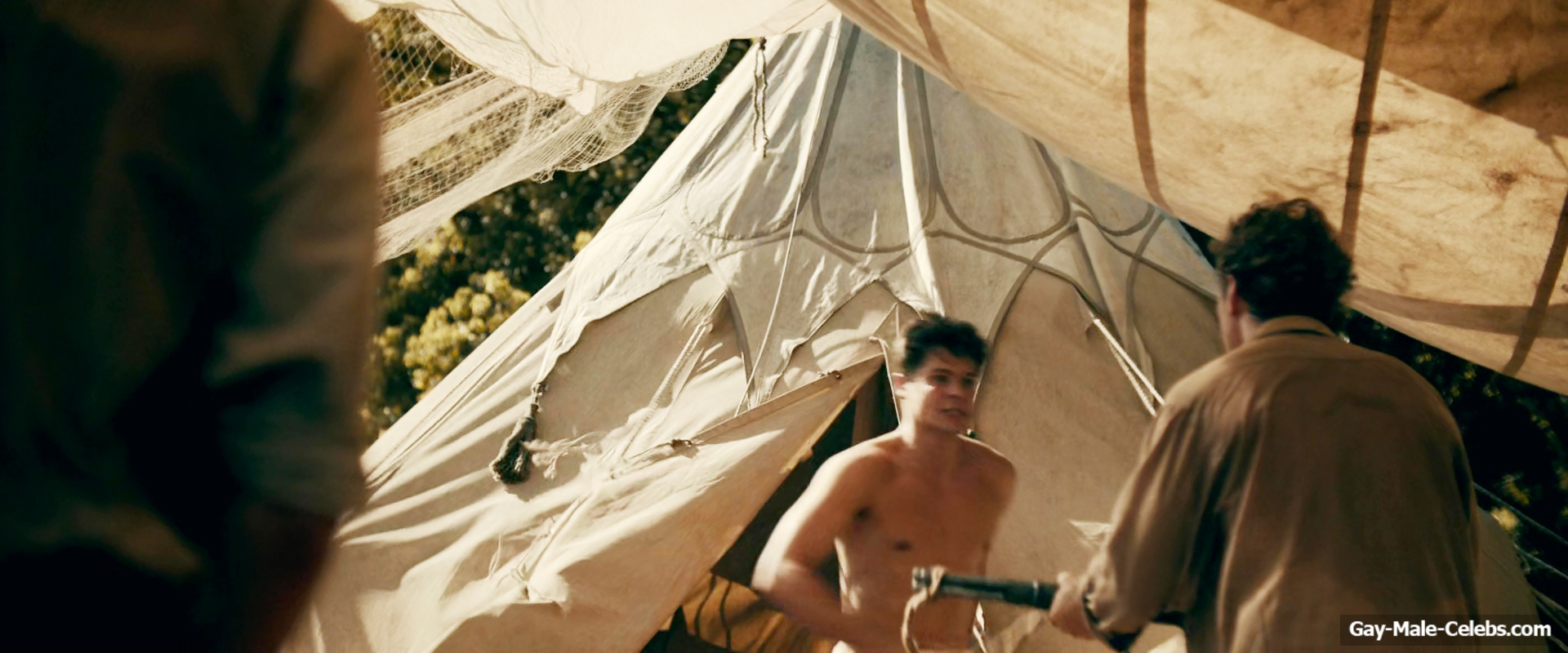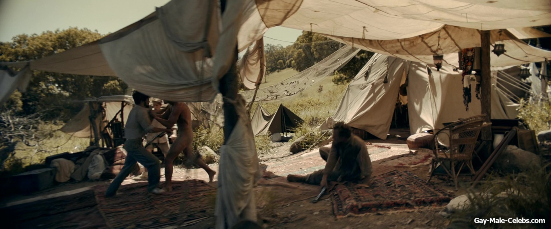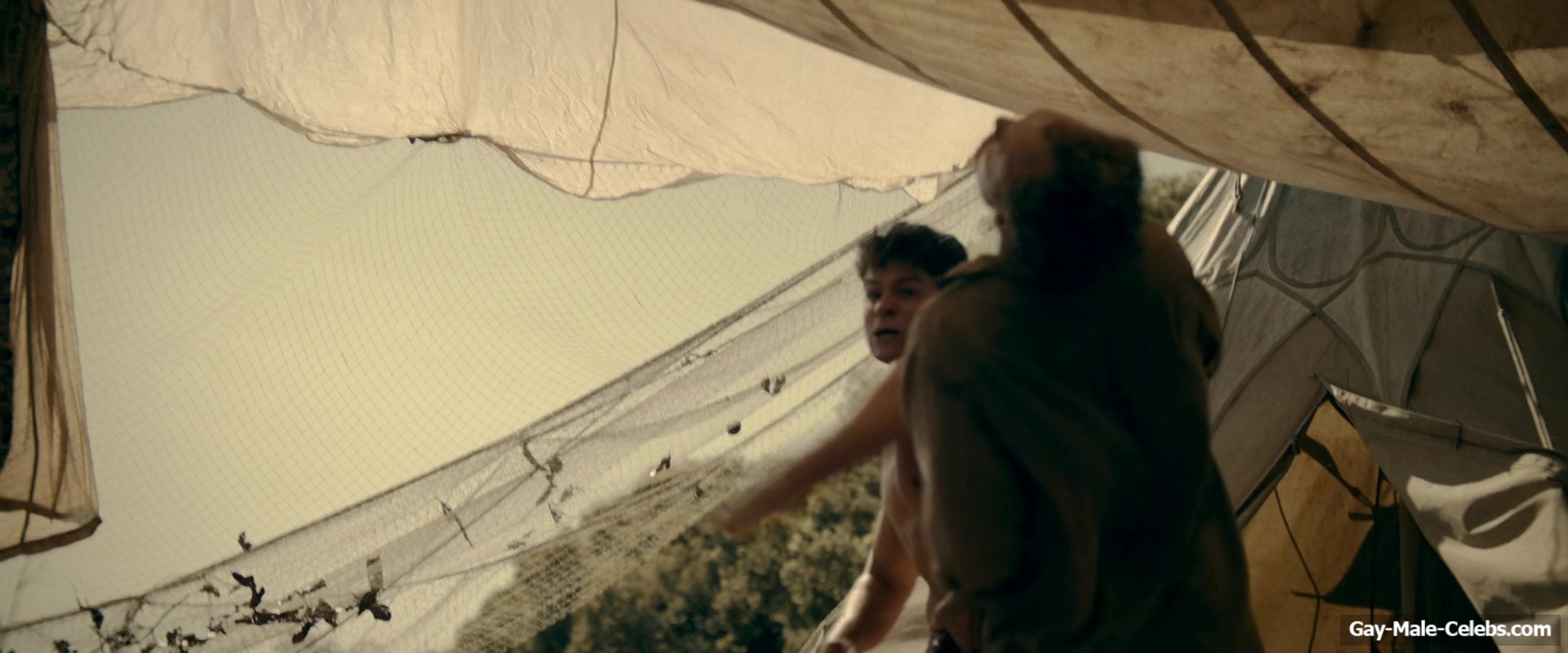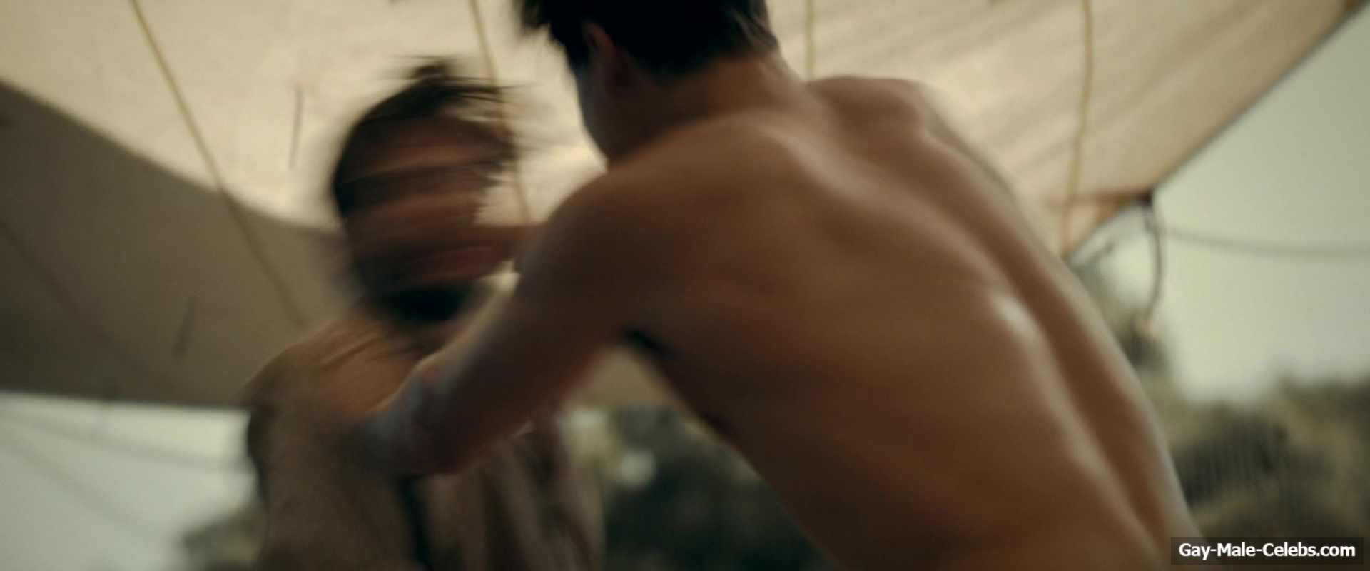 Naked Toby Wallace shows off his sexy body in “Eden”. As soon as Toby came out of the tent, some men immediately attacked him. He had no choice, so he started fighting with them. Everything would be fine if it weren’t for the fact that Toby came out of the tent completely nude. But the men were so carried away by the fight that they didn’t even notice it. But we noticed it and are ready to stare at Toby’s massive penis for eternity.