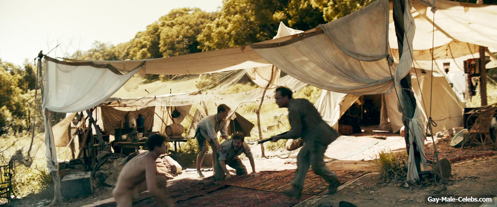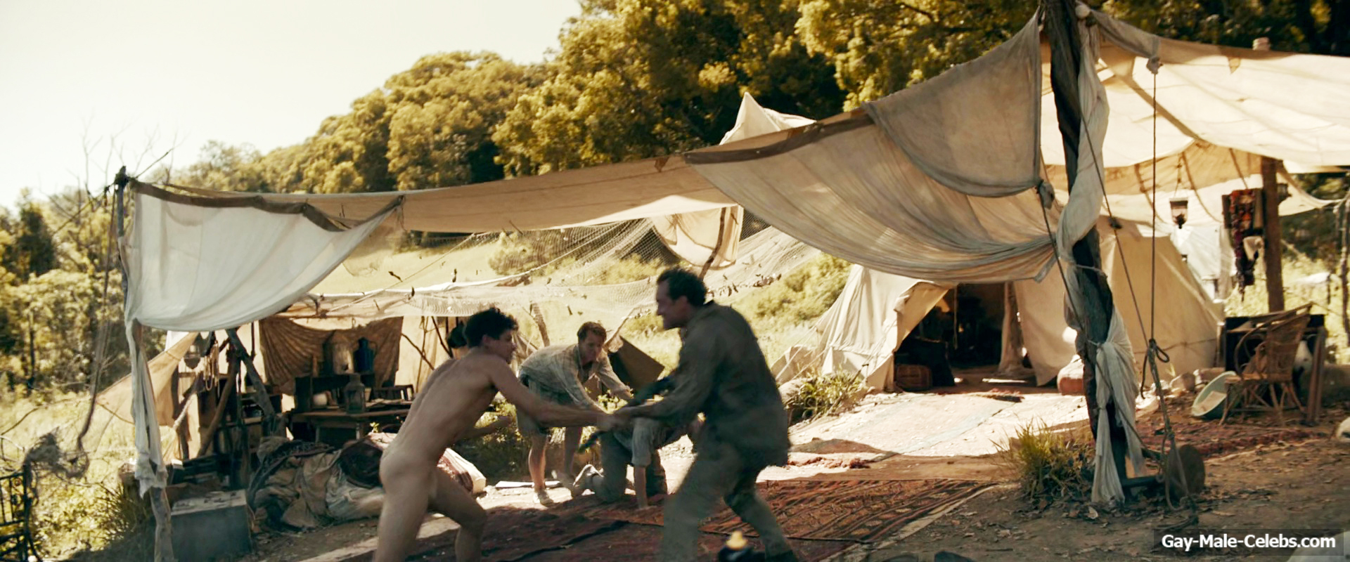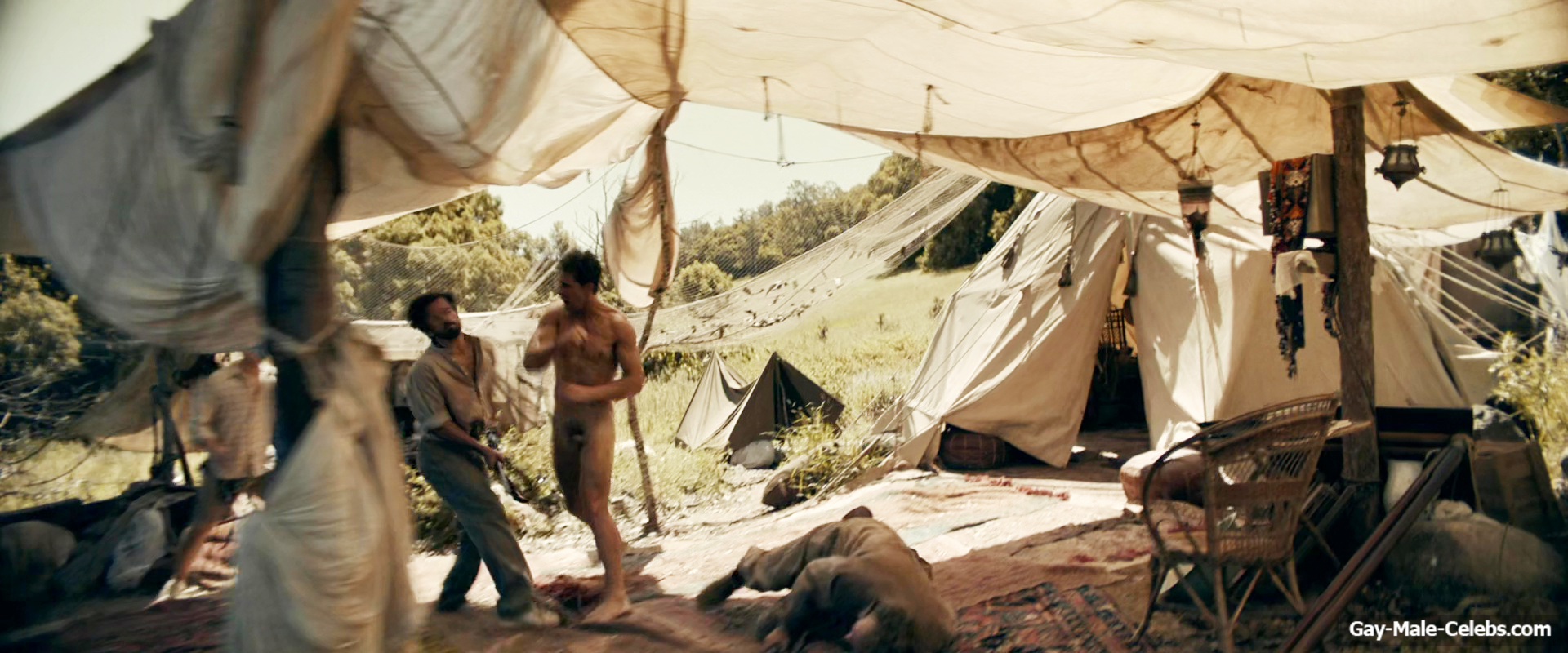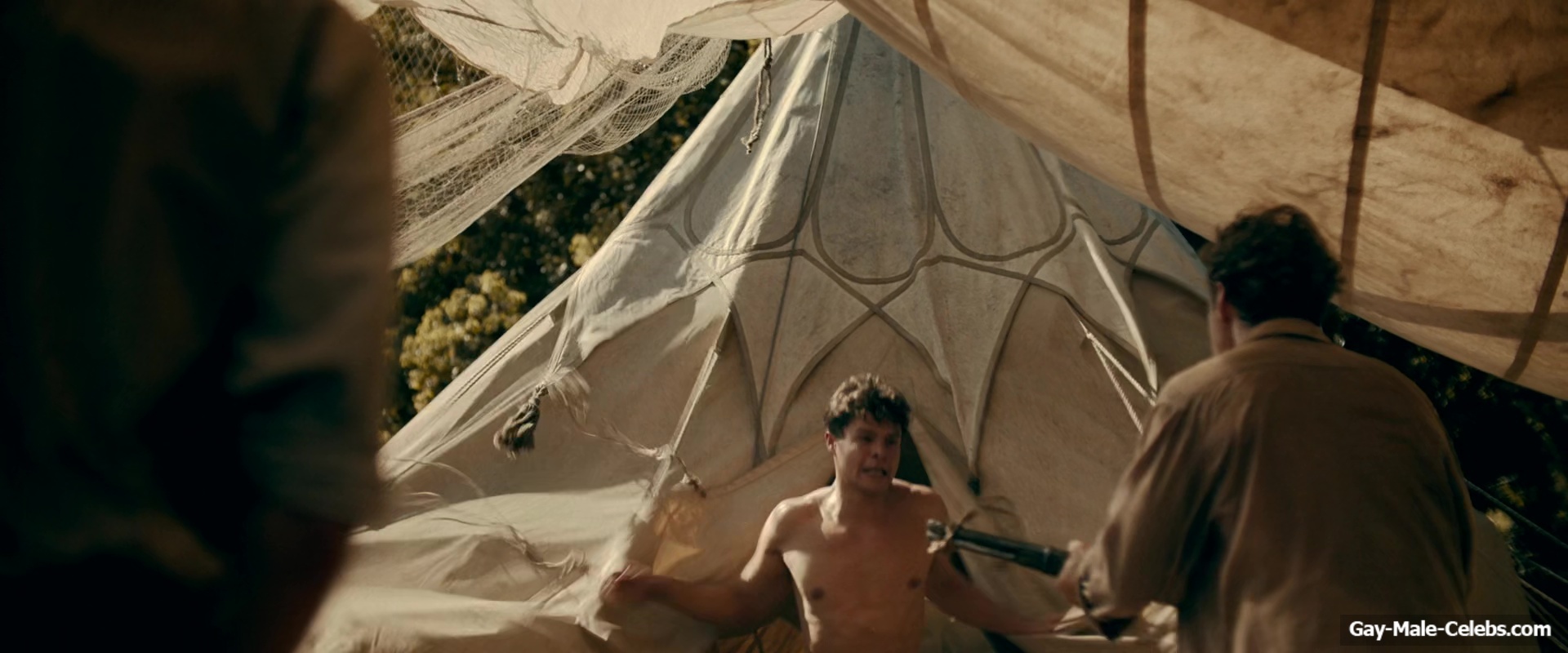 Naked Toby Wallace shows off his sexy body in “Eden”. As soon as Toby came out of the tent, some men immediately attacked him. He had no choice, so he started fighting with them. Everything would be fine if it weren’t for the fact that Toby came out of the tent completely nude. But the men were so carried away by the fight that they didn’t even notice it. But we noticed it and are ready to stare at Toby’s massive penis for eternity.