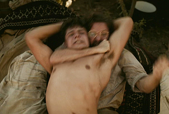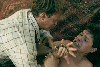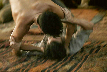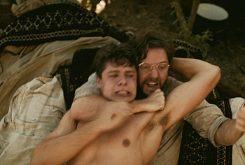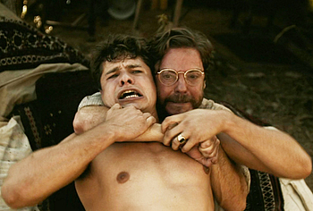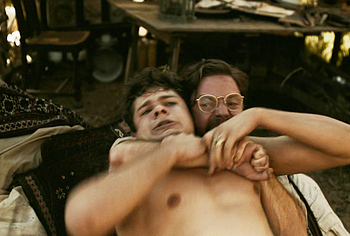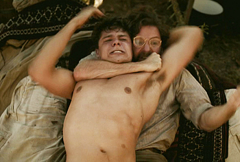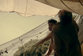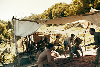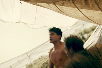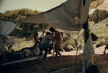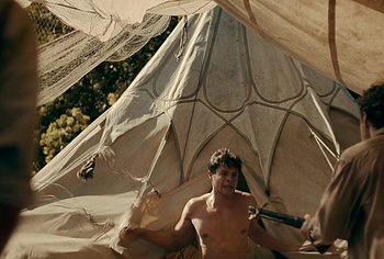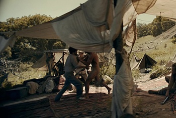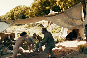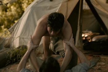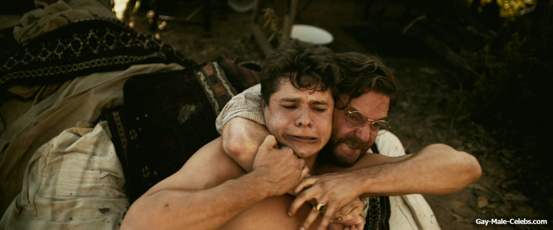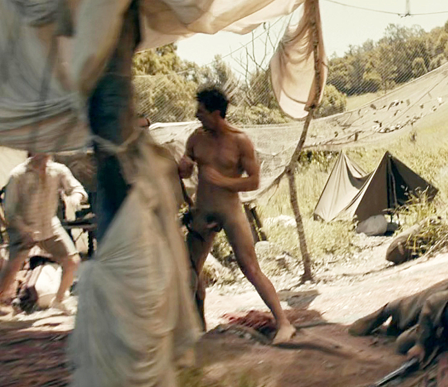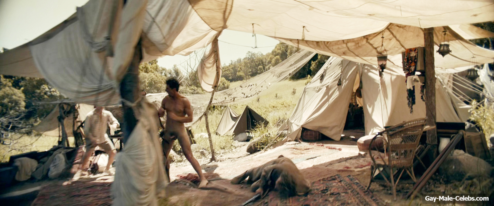 Naked Toby Wallace shows off his sexy body in “Eden”. As soon as Toby came out of the tent, some men immediately attacked him. He had no choice, so he started fighting with them. Everything would be fine if it weren’t for the fact that Toby came out of the tent completely nude. But the men were so carried away by the fight that they didn’t even notice it. But we noticed it and are ready to stare at Toby’s massive penis for eternity.