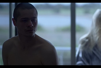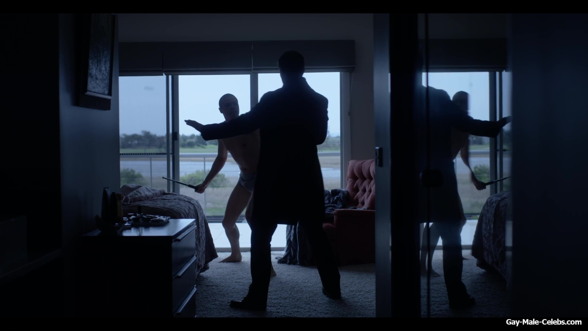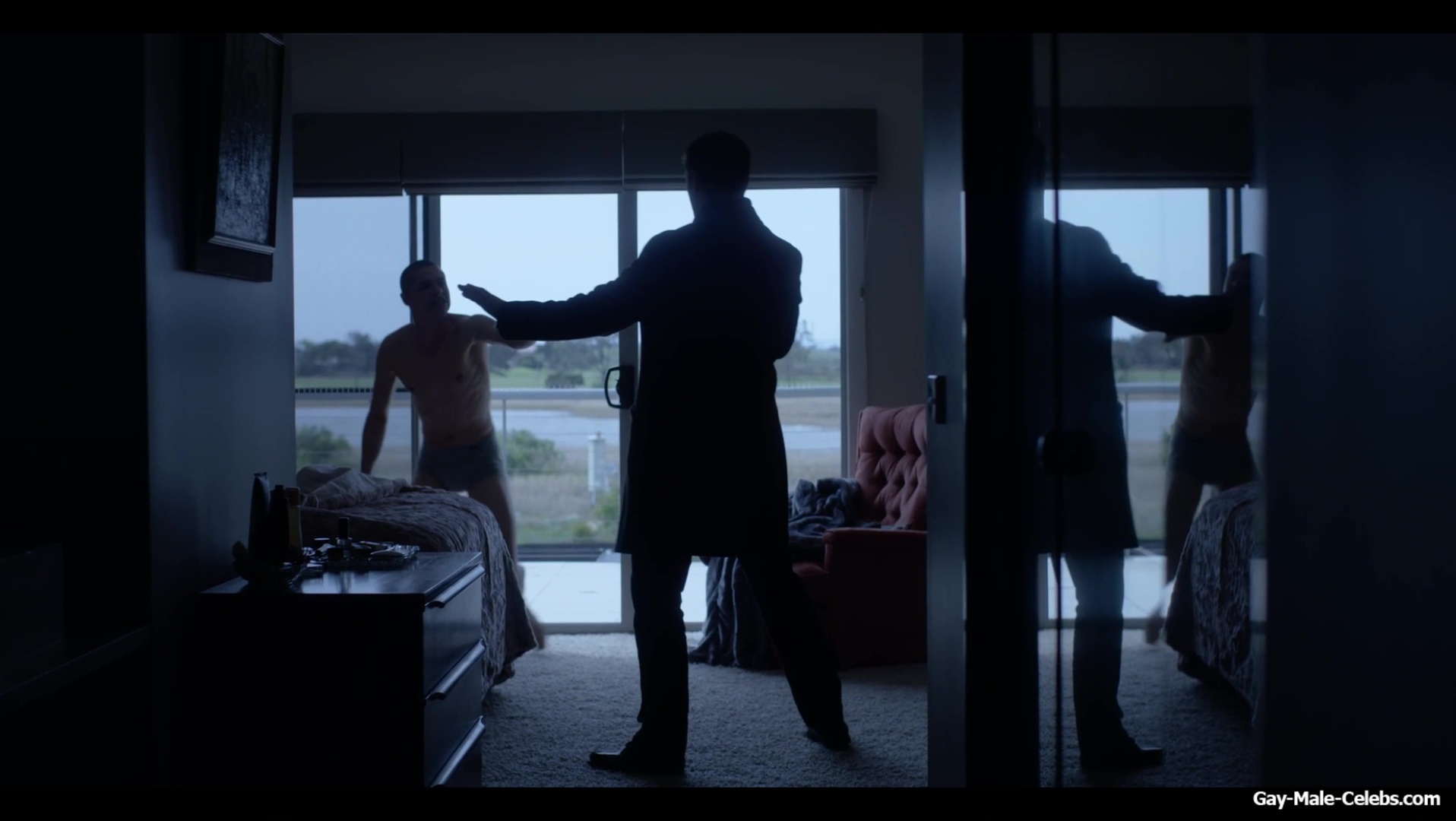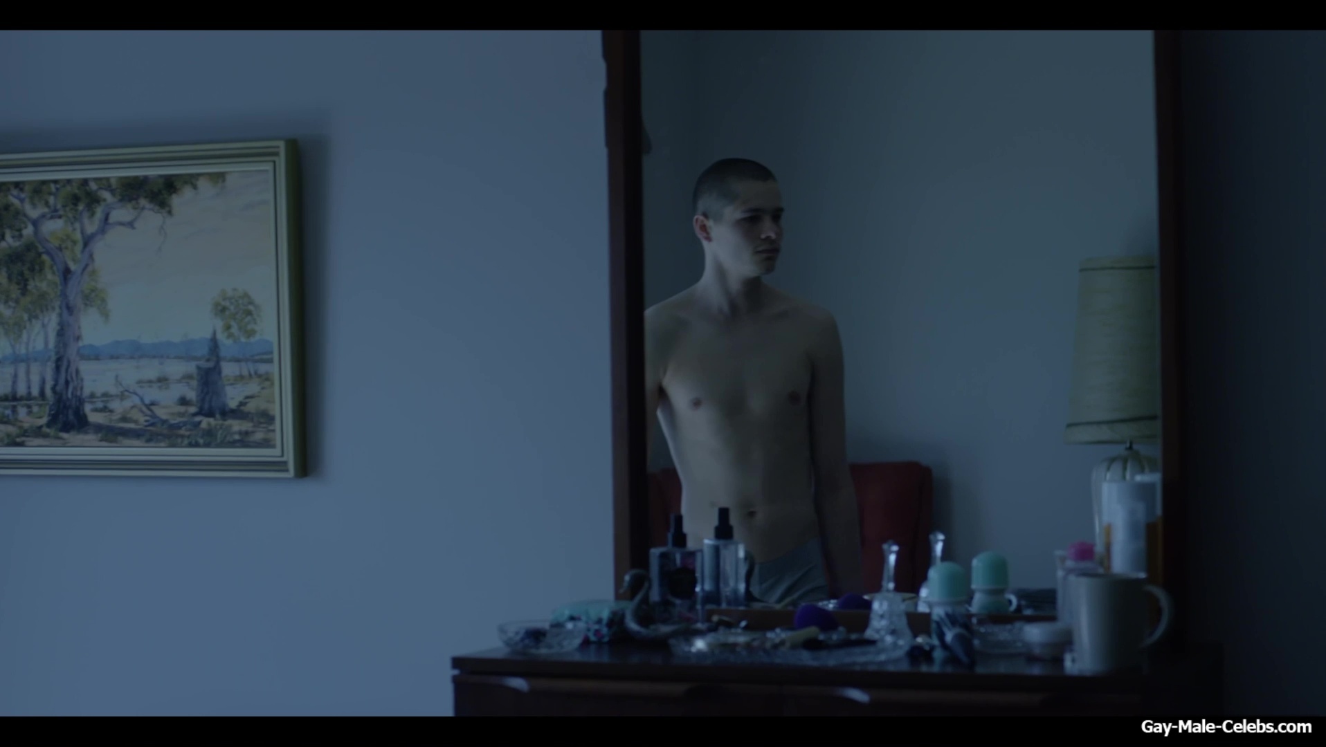 Toby Wallace revealed his naked torso in the movie “Romper Stomper”. Toby was sleeping peacefully with his girlfriend when some stranger broke into their apartment. Of course, he didn’t expect this and jumped out of bed in his underwear. And at that moment, we can enjoy the view of his sexy body.