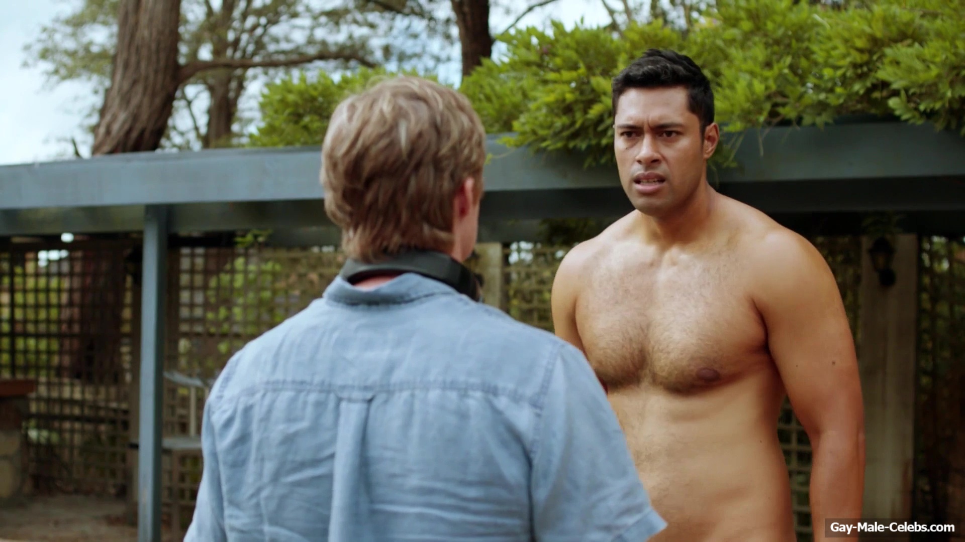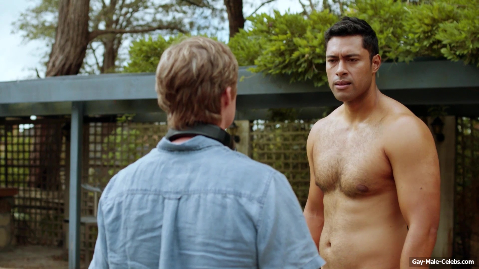 Naked Uli Latukefu raises the pressure with his body in “Sando”. This hunk just decided to go for a swim in the pool, but he wanted to do it without any clothes on. Thanks to this, we can feast pur eyes on Uli Latukefu nude butt to our heart’s content. It’s so juicy that you just want to spank it!