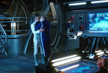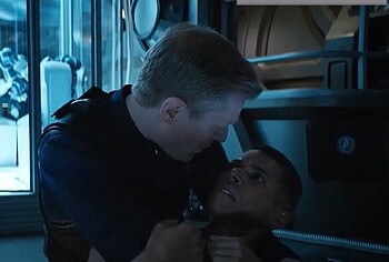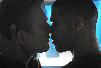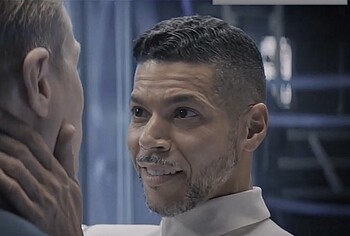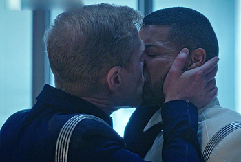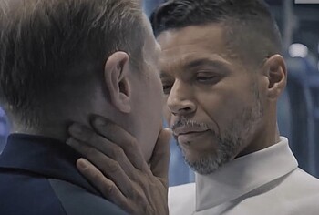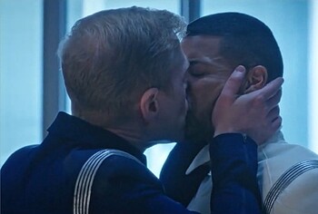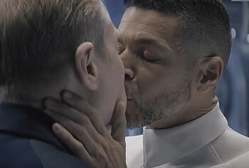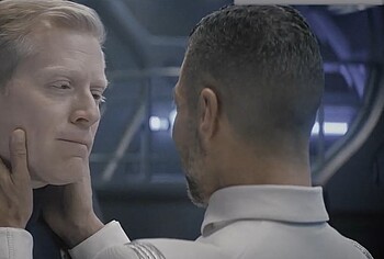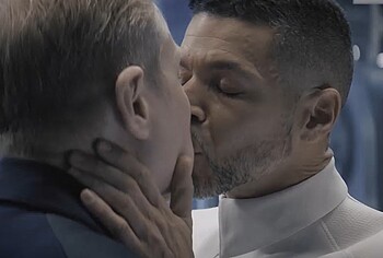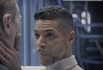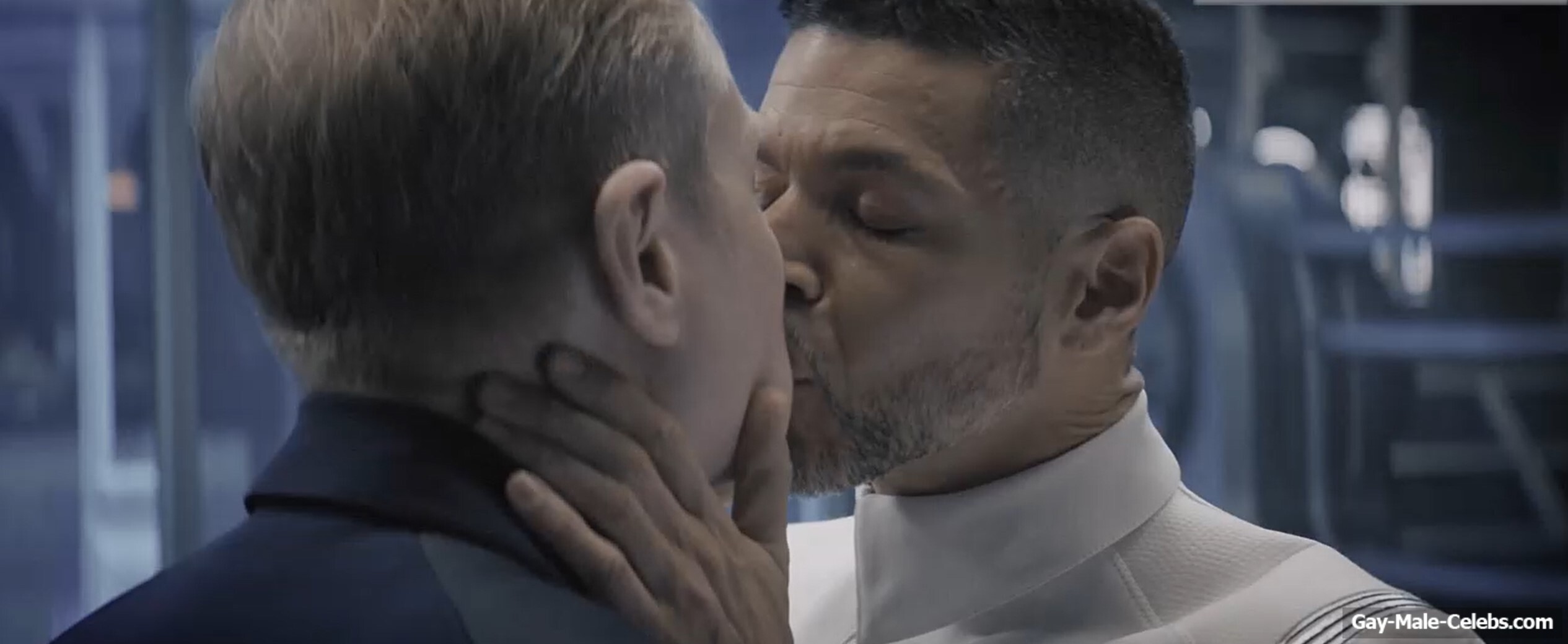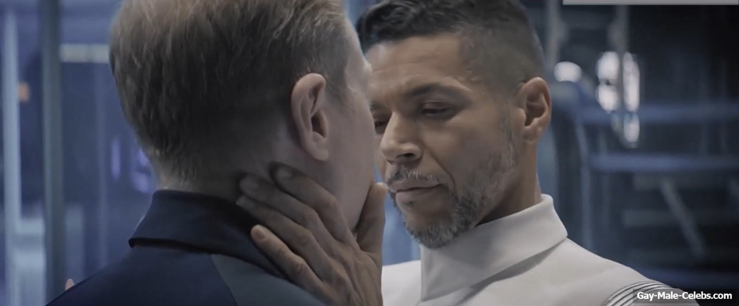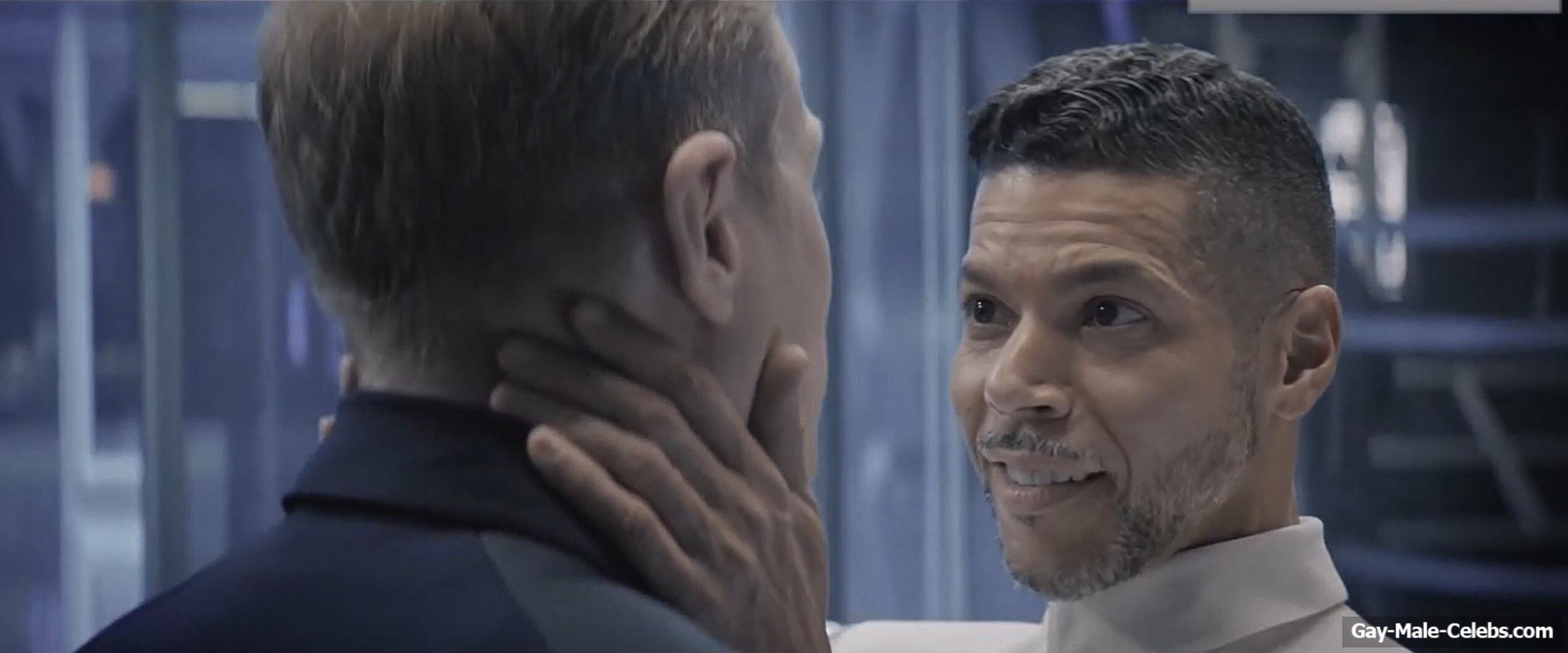 Now we can enjoy not only Wilson Cruz’s torso, but also other parts of his sexy body. He exposes in “Star Trek Discovery”. First Wilson passionately kisses the blond guy. And when the transformation takes place, we can admire the naked ass of this hunk. His boyfriend was obviously worried about him, so he tightly hugged him.